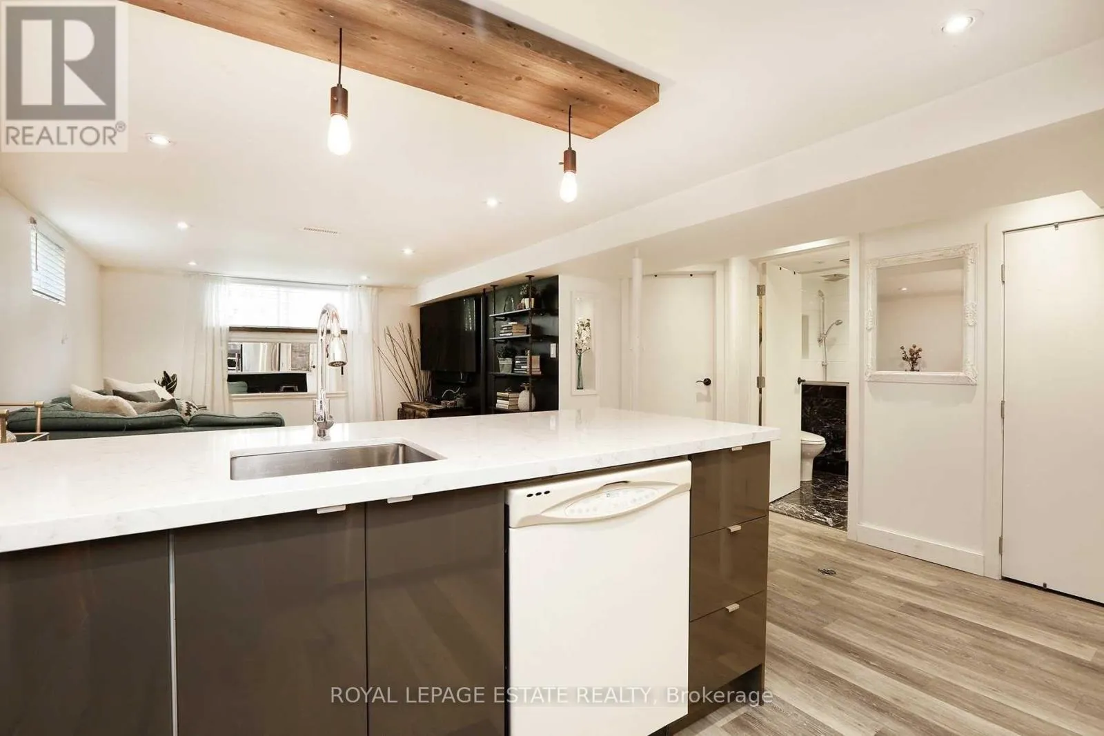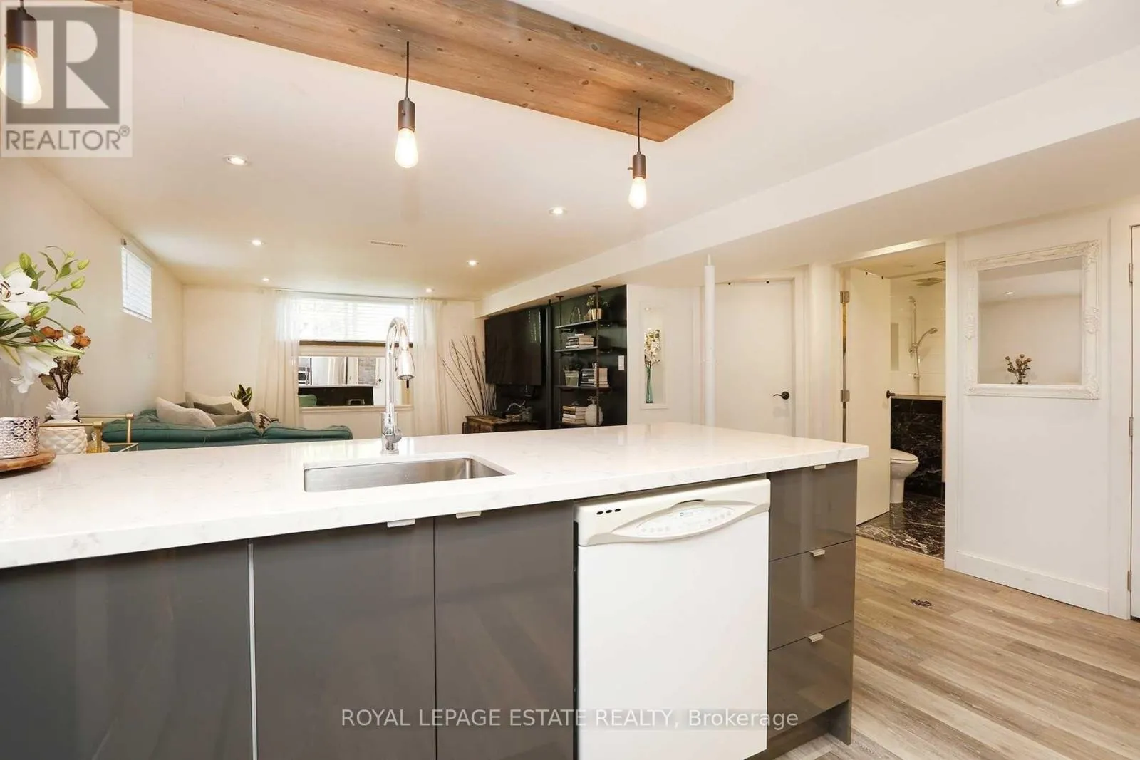 Cross Streets: Bellamy and Kingston. ** Directions: North on Bellamy RD South from Kingston RD. Beautifully renovated two-bedroom basement apartment located on a quiet residential street just north of Kingston Road. This well-finished space offers modern upgrades, clean design, and practical living in a convenient Scarborough location.The apartment features pot lights throughout, keeping the space bright and comfortable. The kitchen has been updated with new cabinetry, quartz countertops, and a custom light fixture that adds character without feeling overdone. The bathroom is a standout, finished with heated marble floors, granite countertops, double sinks, and a glass walk-in shower.Everyday amenities including shops, cafés, restaurants, grocery stores, and services are close by along Kingston Road. Nearby parks and green spaces provide options for walking, jogging, or cycling, with Scarborough Bluffs parks and waterfront trails easily accessible by bike or short drive.Transit is convenient with TTC bus routes along Kingston Road, offering straightforward connections to subway stations and the rest of the city. The area is established and residential, with access to schools, community centres, and recreational facilities. Shared laundry facilities included. Kitchen equipped with refrigerator, stove, microwave, and dishwasher. Utilities are included; tenant is responsible for internet, phone, and cable services if desired. Unit features built-in shelving, all existing electric light fixtures, heated marble bathroom floors, and granite bathroom countertops. Tenant has use of the backyard and BBQ. Separate entrance provided. Short-term rentals, including Airbnb, are strictly prohibited.Photos are from when the unit was previously occupied. (id:27476)