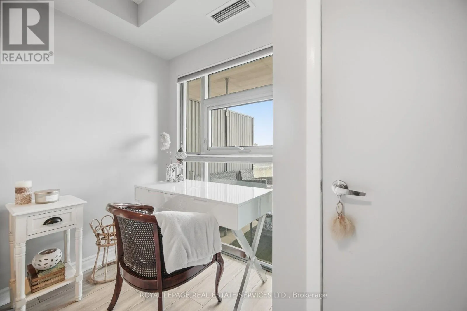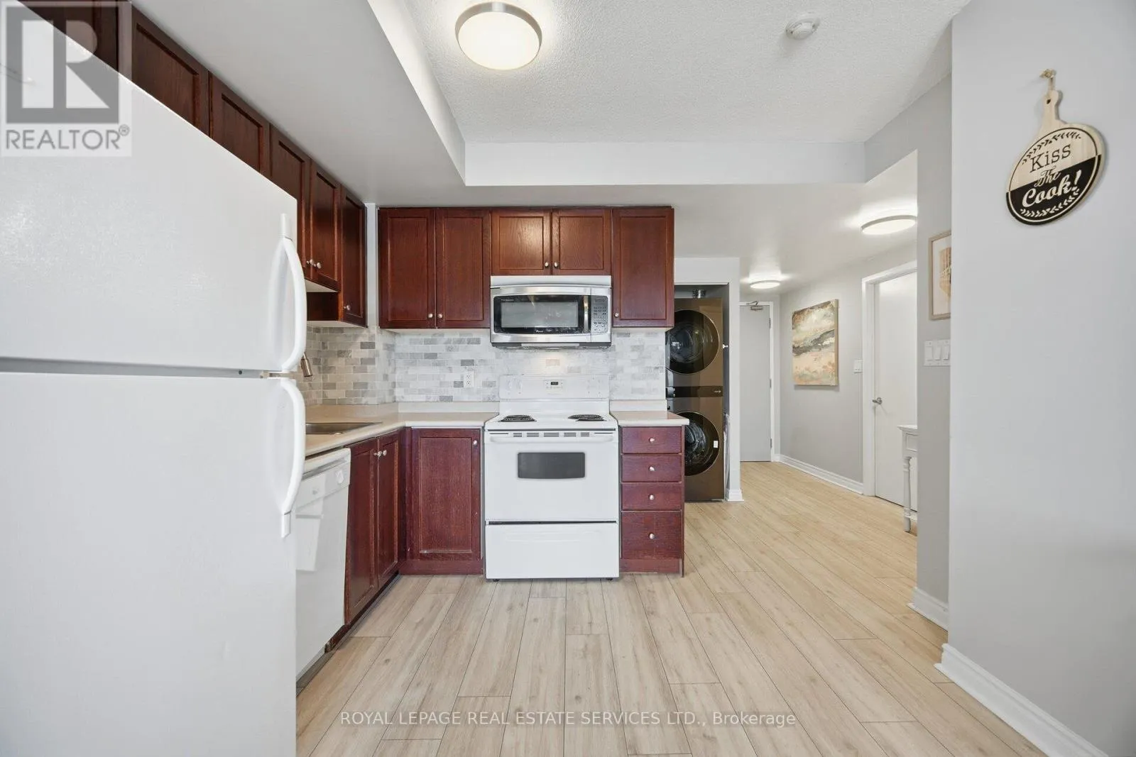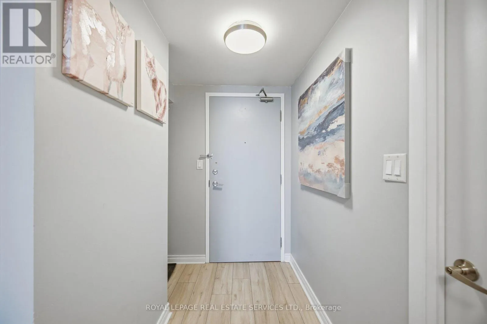 Weston/401 Experience the best views in the building with spectacular, unobstructed west vistas of the Humber River, Lush recreational trails, and the prestigious Weston Golf & Country Club. This 1+1 unit features an extra-large balcony, wide plank laminate floors, a newer marble backsplash, and a renovated washroom. The massive primary bedroom includes a walk-in closet, while the versatile den is large enough to serve as a functional second bedroom. Perfectly positioned just 1 minute from the 401 and GO Transit, with a full-amenity plaza right across the street. (id:27476)