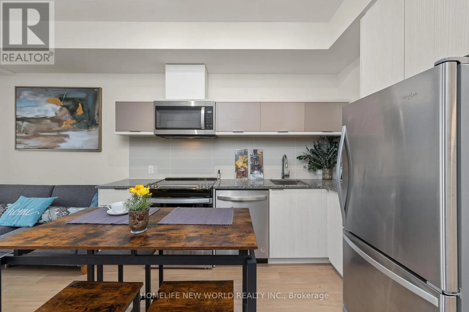 Cross Streets: York Mills/DVP. ** Directions: close to York Mills , nice greenery around it. 1 year old Condo With Luxurious Finishings 594 sq feet +100 sq feet luxury balcony. Conveniently Located At York Mills/DVP And TTC At Doorstep. Spacious One Bedroom Plus Den That Can Be Used As A Second Bedroom , or Office. Spacious Living/Dining Area With Great View. Modern Washroom. South Exposure. Minutes To Dvp, Fairview Mall, Grocery Stores.Ravine Living at Its Finest!Discover the perfect blend of nature, style, and urban convenience in this beautifully upgraded 1+1 bedroom condo with parking, nestled in the prestigious Ravine community. Condo features rare 10-ft ceilings for a spacious and airy feel.The open-concept kitchen is fully upgraded with quartz countertops, an enhanced stovetop, modern cabinetry, stainless steel appliances, and in-suite laundry. Stylish laminate flooring runs throughout the unit, complemented by a custom-built oak island, integrated closets, cabinets, shelving, and wardrobe for smart storage.Unmatched location with the TTC stop at your door, and quick access to Hwy 401, DVP, and major shopping centres like Shops at Don Mills and Fairview Mall. Step outside to enjoy nearby Brookbanks Park and Deerlick Court Ravine, offering serene trails and green space.Luxury amenities include: 24-Hour Concierge Fitness Centre & Yoga Area Party Room & Games Room Rooftop Sundeck with Lounge Outdoor Terrace with BBQ & Dining Area Dog Spa & Kids Playroom Visitor ParkingPhase II of The Ravine will feature a residents-only clubhouse and indoor pool, adding even more value and lifestyle appeal.A rare opportunity to live in a well-designed, functional, and stylish space surrounded by natural beauty and city convenience. (id:27476)