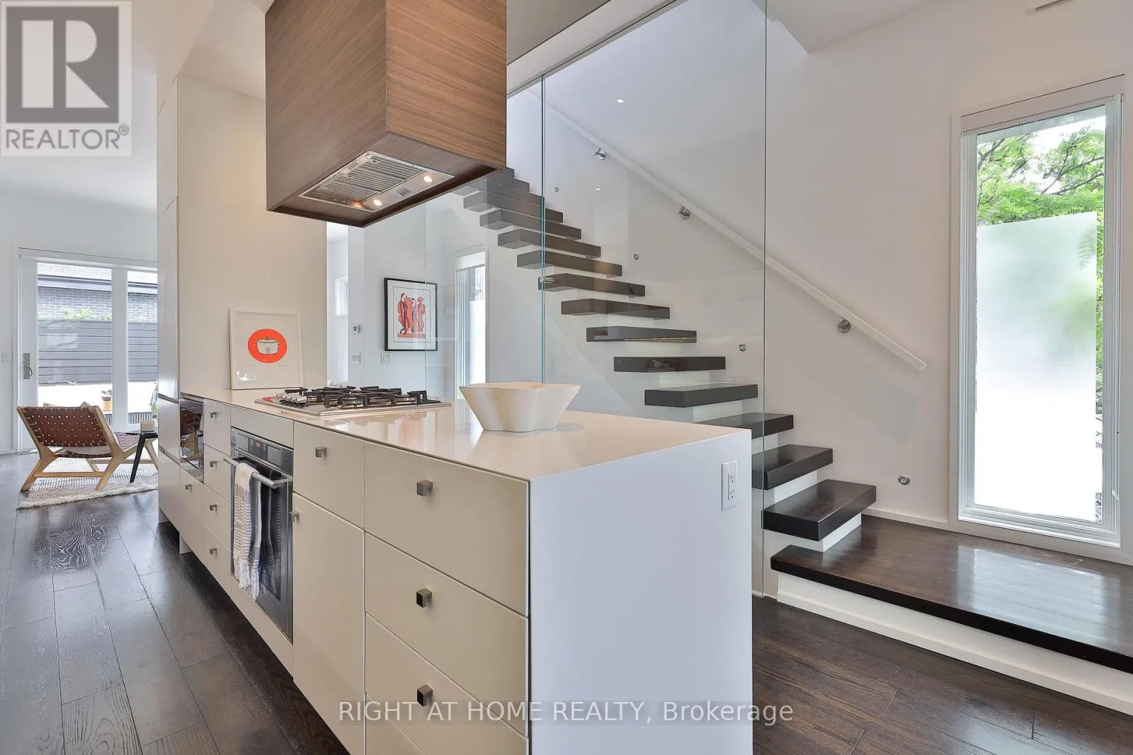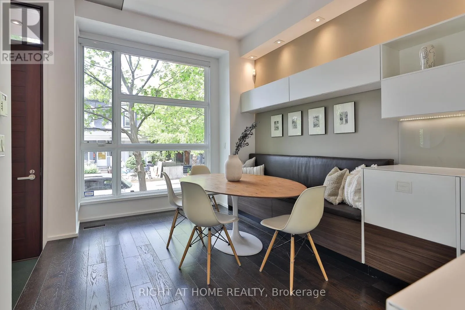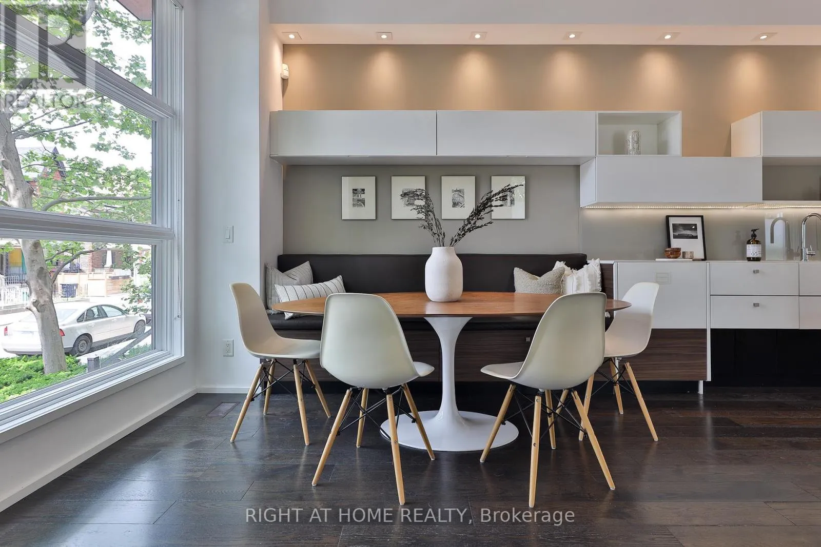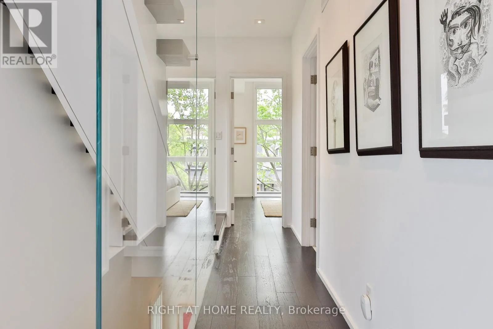 Cross Streets: Dundas and Claremont. ** Directions: Claremont north from Dundas. Welcome to this bright and spacious home at Trinity Bellwoods Townhomes, ideal for anyone craving modern living in an outstanding neighbourhood. This freehold townhome is defined by a great floorplan, leafy views, a clean modern interior, and a seamless layout ideal for both daily living and superb entertaining. Ten-foot ceilings on the main level frame an expansive chefs kitchen with a generous dining room and a refined living space with custom gas fireplace, built-ins, and walkout to a private urban garden with gas and water connections. Upstairs, you'll find three bedrooms including a remarkable full-floor primary suite with walk-in closet, spa-like ensuite with soaker tub, and a private terrace with quiet views over Trinity Bellwoods. 2nd floor laundry for added convenience. The lower level offers a flexible family room / den / home office, powder room, and direct access to a secure and oversized underground garage. A rare end home in a thoughtfully designed community, just moments to College, Dundas West, Queen West and the park. (id:27476)