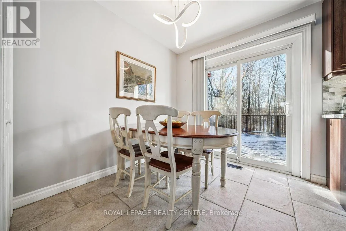 ISLINGTON / ELMHURST Beautiful pie-shaped ravine lot, widening to 80 feet across the back and offering unmatched privacy and tranquility. Located on a quiet cul-de-sac, this home features excellent curb appeal, a double driveway that comfortably parks four cars, and a heated 1.5-car garage. Inside, you will find a 4-level home with an open-concept living/dining area and kitchen. The kitchen boasts a center island with bar seating, granite countertops, stainless steel appliances-including a gas stove-an eat-in breakfast area, and a walk-out to an oversized deck overlooking the ravine. Additionally, enjoy a separate cozy family room with a fireplace and walk-out access to the yard. 3 spacious bedrooms. California shutters throughout. The lower level offers a separate side entrance to a finished basement complete with a full-sized kitchen and additional living space-ideal for an in-law suite or rental potential. It can also serve as valuable extra space for family gatherings or a perfect hangout area for the kids. The perfect family home in an unbeatable location. Just minutes to shopping , highways and all conveniences- come see this exceptional property today! (id:27476)
