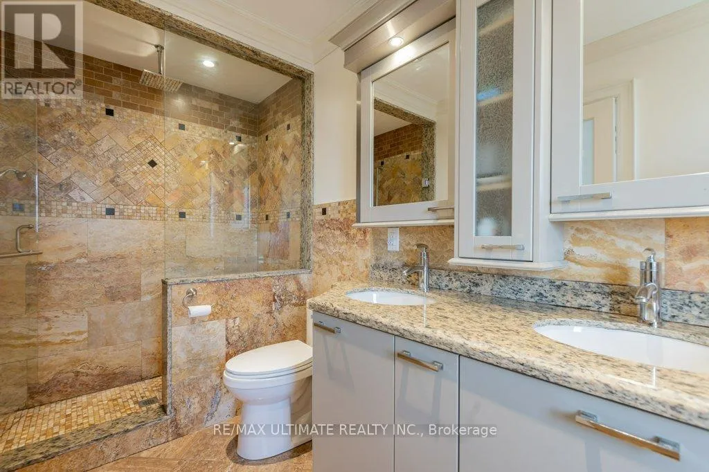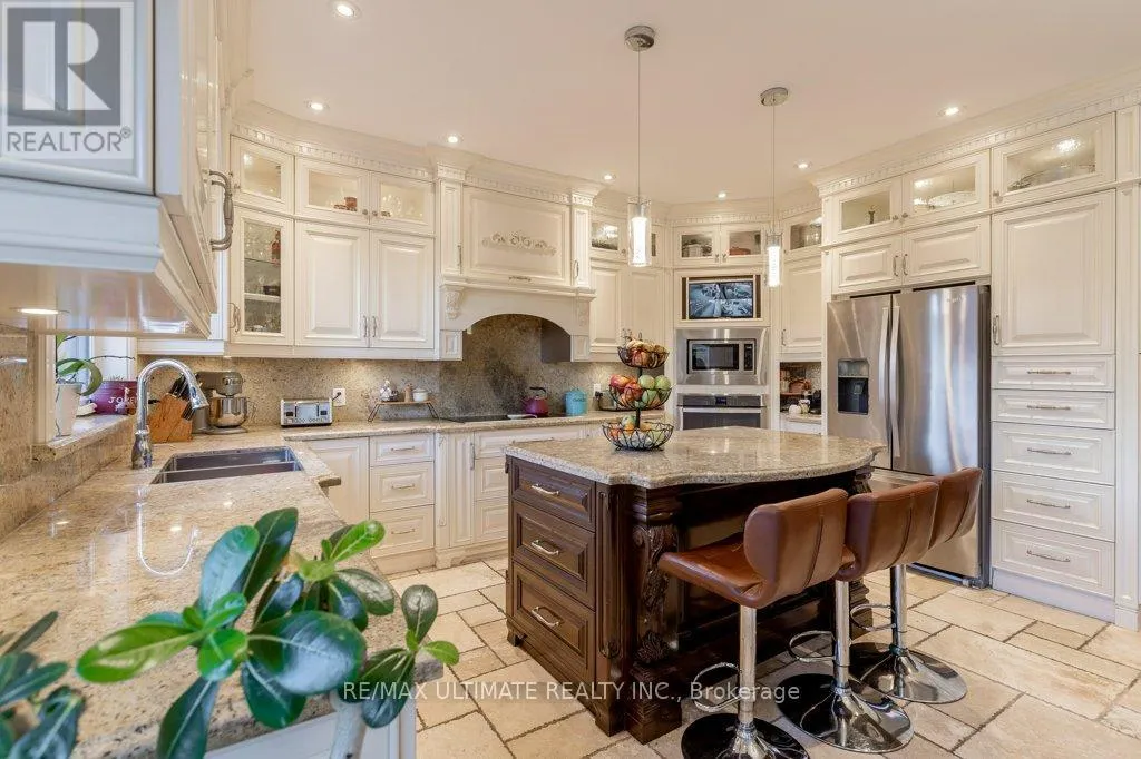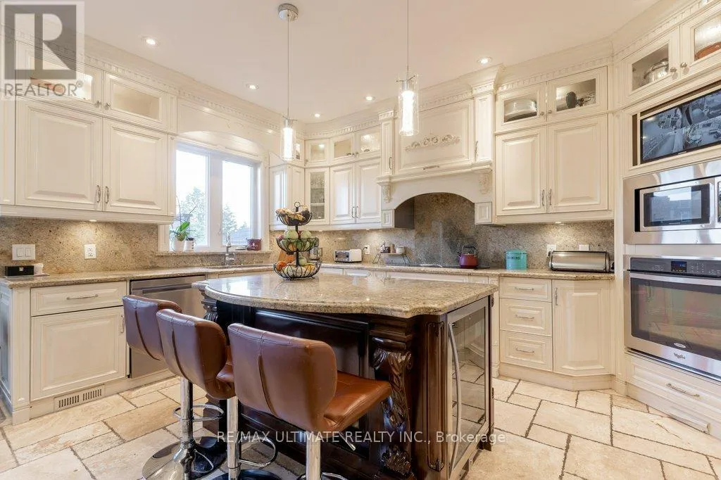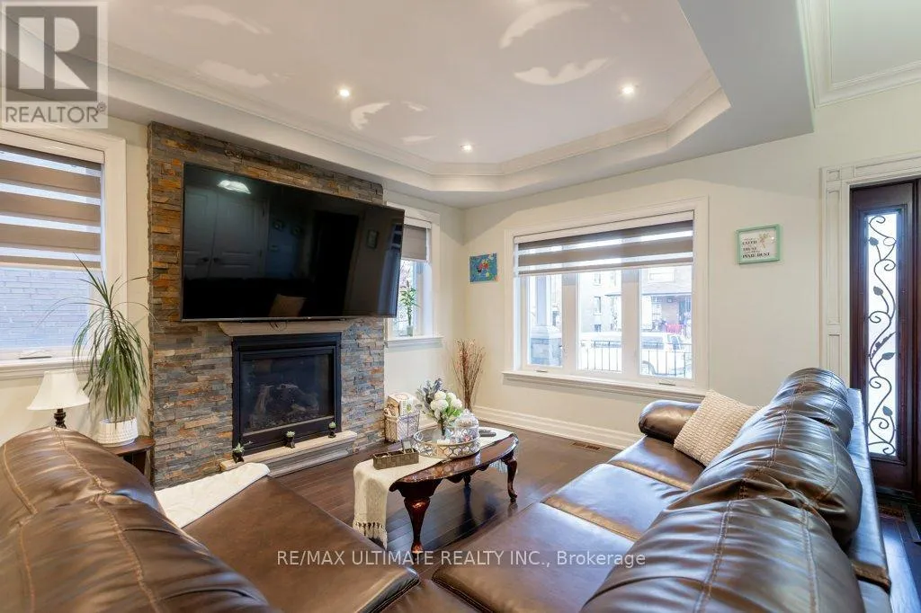 Cross Streets: Dufferin St And Eglinton Ave. ** Directions: South of Eglinton Ave and West of Dufferin St. This fabulous custom home was rebuilt in 2017 and boasts over 3,000 square feet of quality living space. The entrance features custom stamped concrete stairs and a front veranda with a main door that includes glass side panels. The open-concept main floor has 9-foot coffered ceilings and crown molding in the living and dining areas, complete with a gas fireplace. The oversized modern kitchen features cabinets that extend to the ceiling, granite countertops, a granite backsplash, and a large center island, which overlooks the breakfast area. There is a walk-out through wide glass sliding doors to a spacious custom vinyl deck. An oak floating staircase with wrought iron railing leads to the upper level, where you'll find a large primary bedroom that includes a 5-piece ensuite with a separate glass shower, a deep soaker tub, and a large walk-in closet with crown molding. In addition, there are three more spacious bedrooms, each with closets and crown molding. The professionally finished basement offers a large one-bedroom apartment featuring a modern kitchen with granite countertops, an open-concept living room, and a large bedroom with a double closet and ensuite laundry. There is also a separate area that includes an extra bedroom, additional laundry facilities, and a large cantina. The property includes a private driveway leading to a double heated garage with running water and a separate electrical panel. Other features include a built-in brick BBQ, front sprinklers, and a rough-in for a heated driveway that is ready to finish. (id:27476)