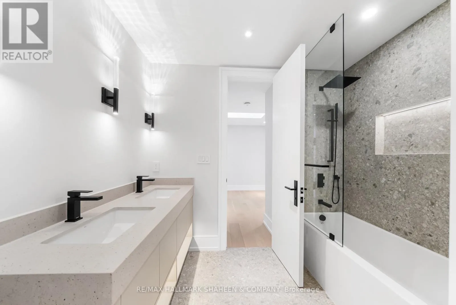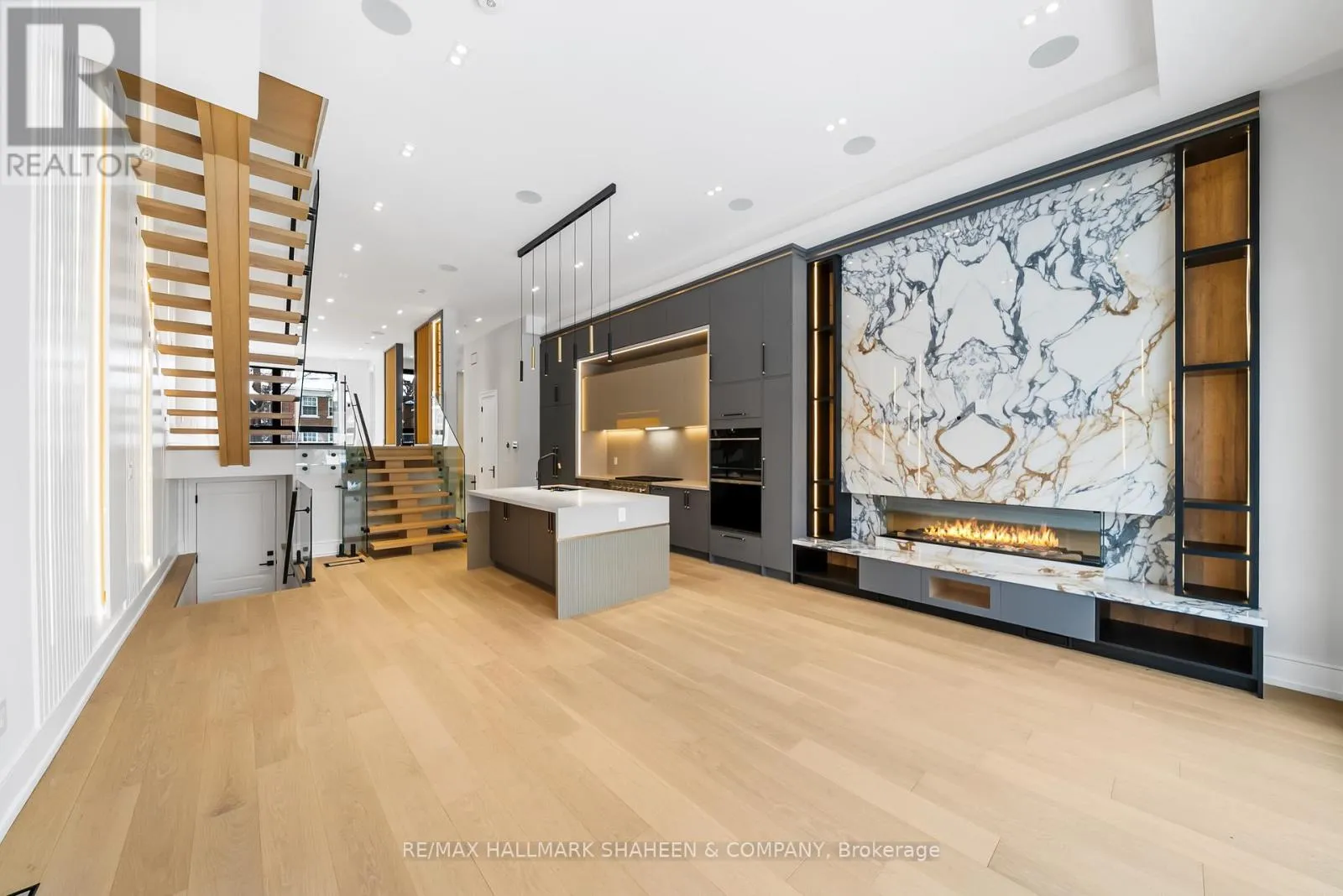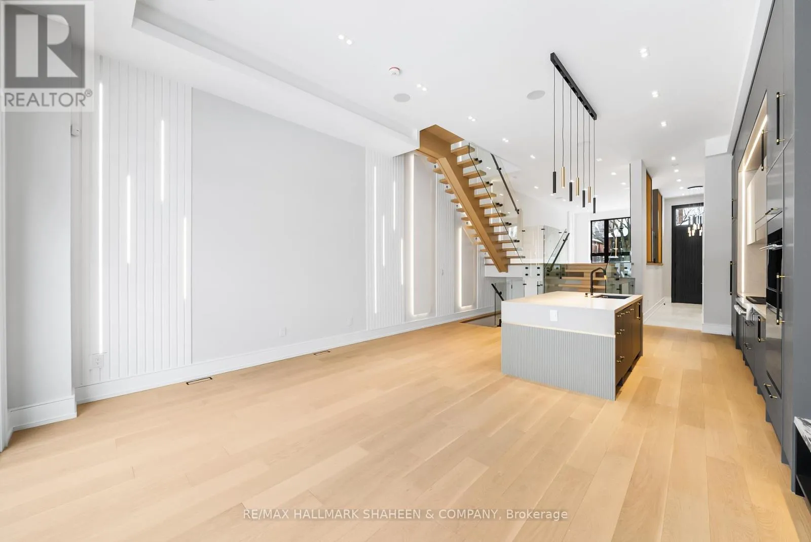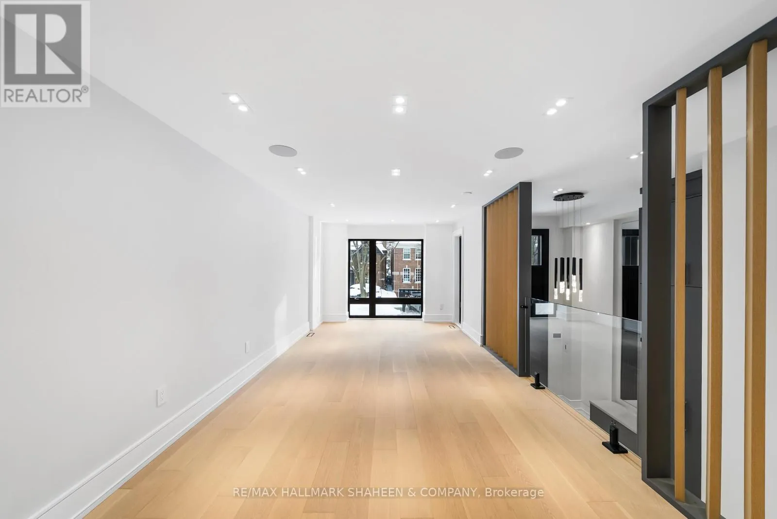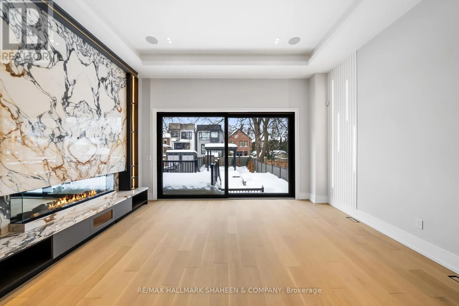 Cross Streets: Yonge St & Eglinton Ave W. ** Directions: East of Aveune Rd, West of Duplex Ave. The experience begins on arrival with a heated driveway, followed by 12+ foot ceilings, skylights, and a raised, light-filled living space that set the tone for scale and warmth. The chef's kitchen is anchored by a large island wrapped in a fluted finish, a design motif echoed throughout the home in Vogt faucets, solid brass hardware, and refined architectural accents. Custom millwork is paired with a premium appliance suite including a Sub-Zero fridge/freezer, Wolf six-burner gas cooktop, wall oven, and Bosch dishwasher. The family room is elegant yet inviting, featuring fluted oak veneer panels, custom built-ins, and a porcelain fireplace, with floor-to-ceiling glass opening to a beautifully landscaped backyard. Enjoy a composite deck, interlocking surfaces, gas lines for a BBQ and firepit, gazebo, and full landscape illumination-ideal for quiet evenings at home. Upstairs, the primary suite offers a serene retreat with custom cabinetry, dual sinks, wall-mounted vanity, linear drain, floor bench, and a seamless full-slab stone shower. One additional bedroom includes its own ensuite, while two others share a bath. A convenient upper-level laundry completes the floor, with rough-ins in place for a future second laundry in the basement. The finished lower level features heated floors, a spacious rec room with walkout, wet bar, wine display, and flexible living space with direct access to the garage. Engineered for comfort and longevity, the home includes radiant in-floor heating for all stone surfaces, a high-efficiency furnace with heat pump cooling, tankless hot water, sump pump, integrated drainage system, an interlock driveway with snow-melt on stairs, and epoxy garage floors with LED lighting. Smart home features include Control4, an Ecobee thermostat, built-in speakers, a Wi-Fi booster, and security cameras. Set between Avenue Road and Yonge Street, within the coveted Allenby Junior PS and North Toronto CI catchments. (id:27476)