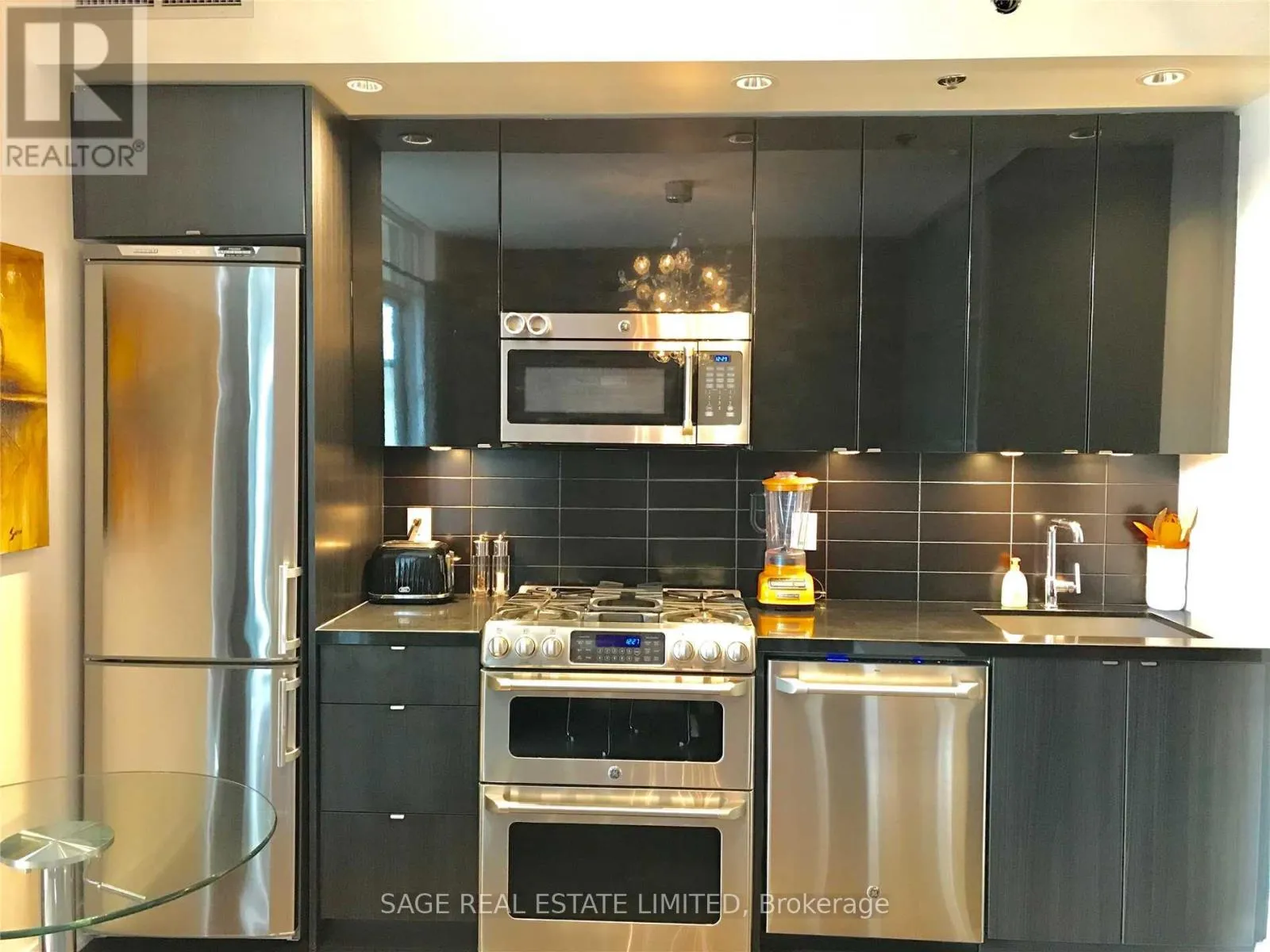 Queen St E x Carlaw x Dundas E This sophisticated 1-bedroom loft at the coveted Showcase Lofts showcases a refined blend of timeless character and modern luxury. A dramatic reclaimed brick feature wall makes an unforgettable first impression, setting the tone for a thoughtfully designed living space. The beautifully appointed kitchen features quartz countertops, a 5-burner gas range, and an oversized sink-ideal for both elevated everyday living and effortless entertaining. Soaring 9-foot ceilings, rich hardwood floors throughout, and a spacious bedroom enhance the sense of openness and light, while the functional layout maximizes every square foot. Perfectly positioned in the heart of Leslieville, enjoy immediate access to the 24-hour Queen streetcar, curated boutiques, cafés, and acclaimed restaurants, with downtown just minutes away. Photos from previous listing. (id:27476)