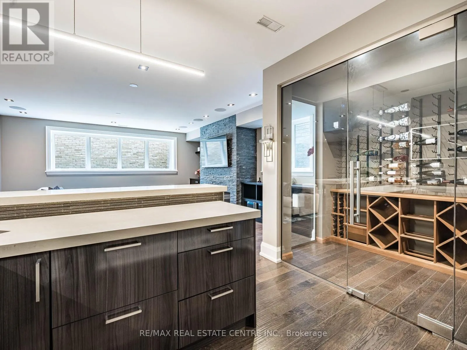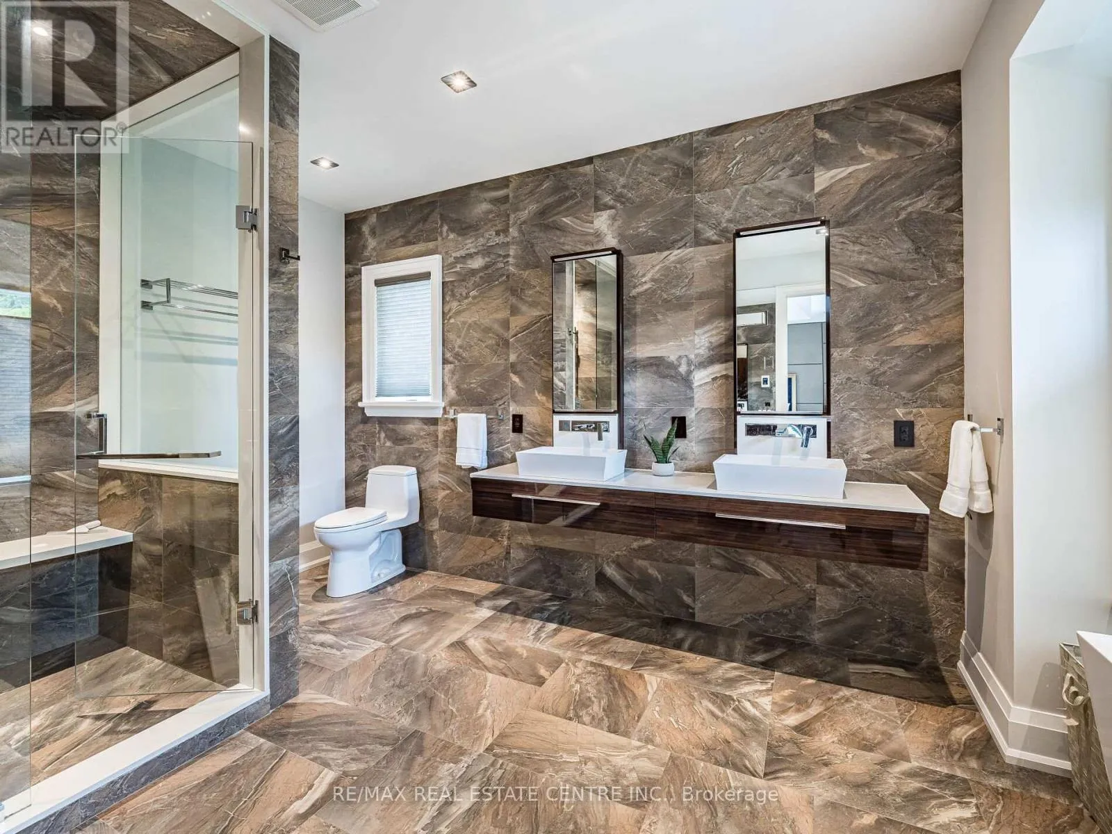 Kingsway/Islington Modern masterpiece in prestigious Humber Valley!! Welcome to 122 Wimbleton Road, an architecturally stunning custom residence nestled in the heart of Toronto's exclusive Humber Valley. Designed by renowned architect David Small, this bespoke 4+1 bedroom, 5-bathroom home offers over 6,000 square feet of exceptional living space, masterfully blending modern West Coast elegance with seamless indoor-outdoor living. Located within a top-tier school catchment, this home is just a short walk to some of Toronto's most sought-after public, private and Montessori schools, making it ideal for families seeking elite education in a prime location. Custom Sapele Mahogany front door leading to dramatic foyer with soaring 20ft. ceiling and radiant natural light. 10ft ceilings on the main level and 9ft on the upper and lower levels. Quarter-sawn white oak flooring on the main and upper levels with hand-scraped hardwood in the lower level. Gourmet kitchen by Marcon featuring Wolf, Sub-Zero and Miele appliances. Walls of glass open to a Serene backyard oasis with a 16x32x8ft saltwater pool w/waterfall, outdoor gas fireplace and TV. Spa-inspired primary ensuite with 1" water line, Aqua brass fixtures and heated floors. Radiant heated lower level with glass-enclosed gym and custom wine cellar by Rosehill. ELAN smart home automation: whole-house A/V, lighting, security and intercom. Designer lighting and Hunter Douglas blinds throughout. Crafted with integrity and artistry - reclaimed brick from a historic church, Golden Brand wood windows and meticulous wood sheathing - this residence is both a work of architecture and a home of enduring warmth (id:27476)