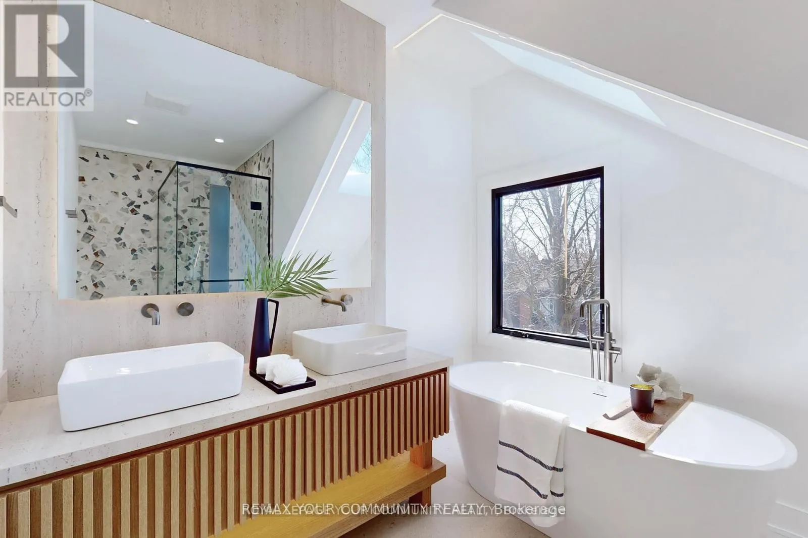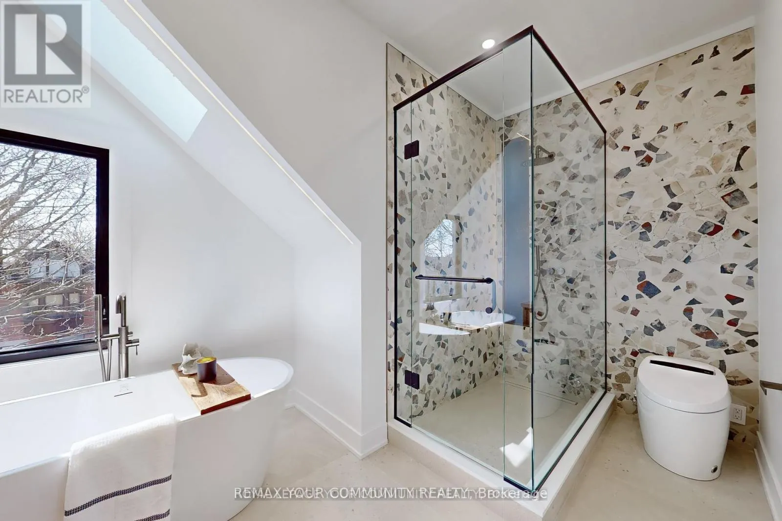 Gerrard str and Jones In the heart of Leslieville, discover the future of modern living in this newly built three-story home filled with character, Charm and thoughtful design. The main floor features a stylish open-concept layout with living, dining, and kitchen areas seamlessly connected-ideal for both everyday living and entertaining.Floating stairs lead to the second floor, which features a modern 3 piece bathroom and three bedrooms. One opens to its own private balcony overlooking the backyard, the second can serve as a cozy bedroom or home office, and the third faces the front of the house and includes a Juliet balcony, ideal for enjoying morning light and fresh air. A dedicated laundry is also conveniently located on this level.The entire third floor is a private primary suite, thoughtfully separated from the rest of the home. It features high ceilings, a spacious bedroom, two walk-in closets, a large balcony, and a luxurious 5-piece modern ensuite with a skylight that creates a spa-like experience. A second skylight above the staircase brings in even more natural light as you ascend to this stunning retreat.The walkout basement includes a separate entrance, one bedroom, a full kitchen, its own laundry, and is ideal for rental income, Airbnb, in-law, or teen suite.Step out to a cozy backyard with a deck, laneway access, EV charging plug, and a gas line-perfect for outdoor gatherings. The front porch, finished with sleek glass railings, offers a great spot to relax and enjoy the neighbourhood. (id:27476)