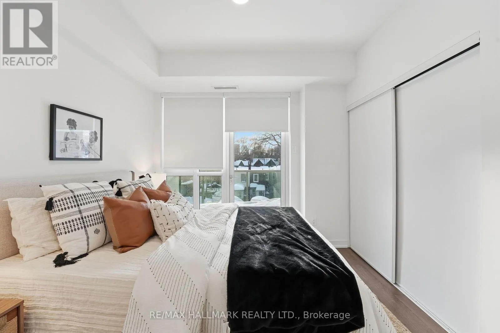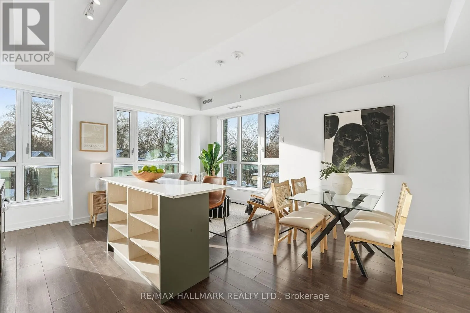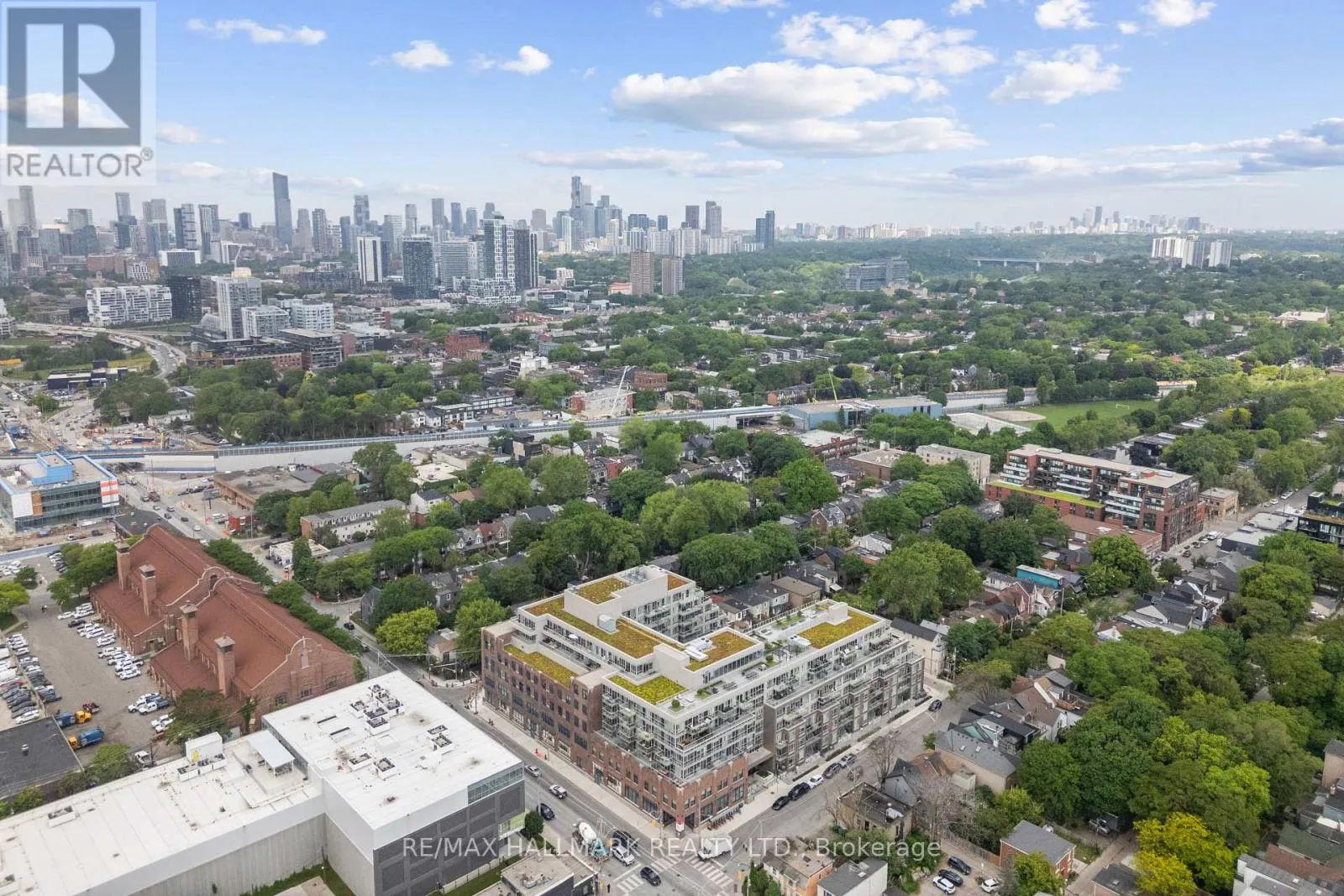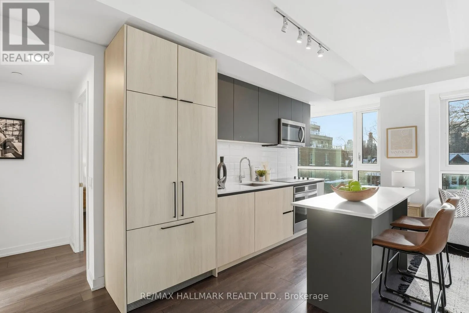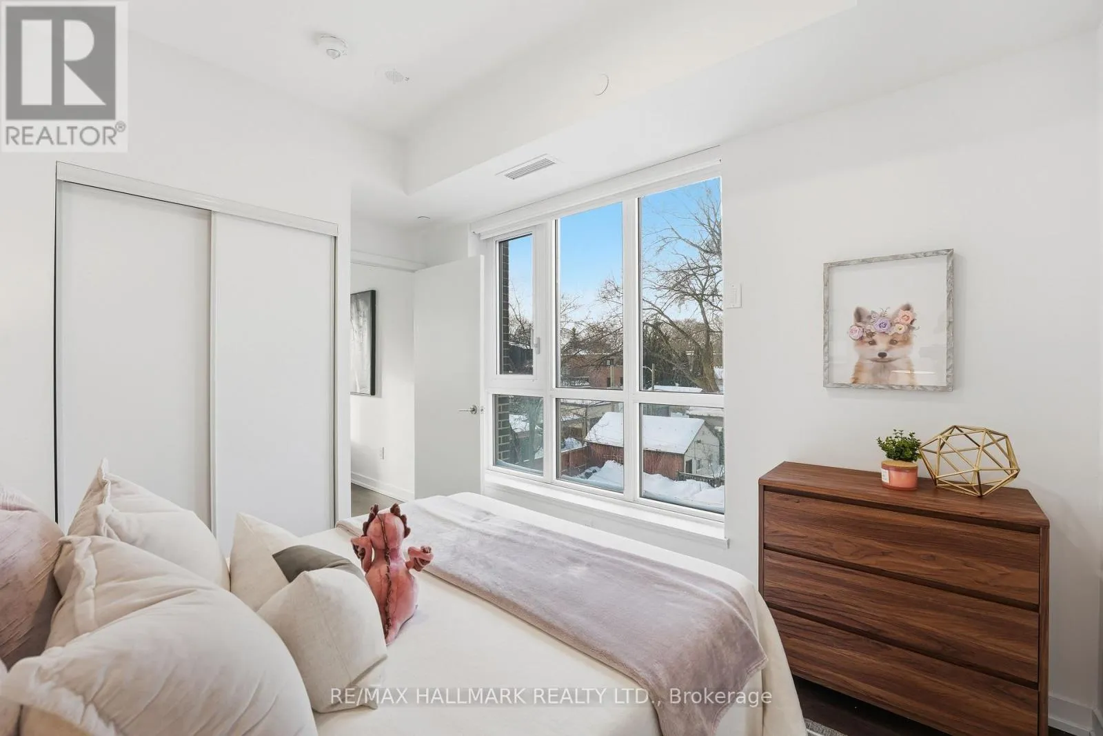 Cross Streets: Logan Ave/Eastern Ave. ** Directions: https://share.google/N1h65a1EIcVkHL38Z. Stylish & quiet 3-bedroom, 2-bathroom corner suite with underground parking & locker in Leslieville's iconic Wonder lofts, formerly the historic Weston Bakery. Highly functional layout with 9 ft smooth ceilings, abundant natural light, and west-facing exposure with north and south exposures. Contemporary two-tone chef's kitchen features integrated stainless steel appliances, white quartz countertops, under-cabinet lighting, undermounted sink, and a generous island that doubles as a breakfast bar . Flint Oak wide plank laminate flooring throughout. Primary bedroom includes a 4-piece ensuite. Second bathroom is a 4-piece with a deep soaker tub. The second bedroom works beautifully as a spacious home office with glass sliding doors and great natural light. The third bedroom features north-facing windows with sunlight throughout the day and motorized blackout roller blinds. Remote-controlled day shade blinds are also installed in the living area, and blackout in primary bedroom. Enjoy world-class amenities including a rooftop deck with unobstructed views and BBQs, fire pit, gym, concierge, co-working space with WiFi, indoor family and children's playroom, pet wash, and bike storage. Unbeatable location just steps to the best stretch of Queen Street East, with top-tier restaurants, independent boutiques, lively patios, transit, and excellent schools nearby. Ideal for a work-from-home couple or a growing family. A rare blend of style, comfort, and urban convenience in one of Toronto's most dynamic neighborhoods. A must see! (id:27476)