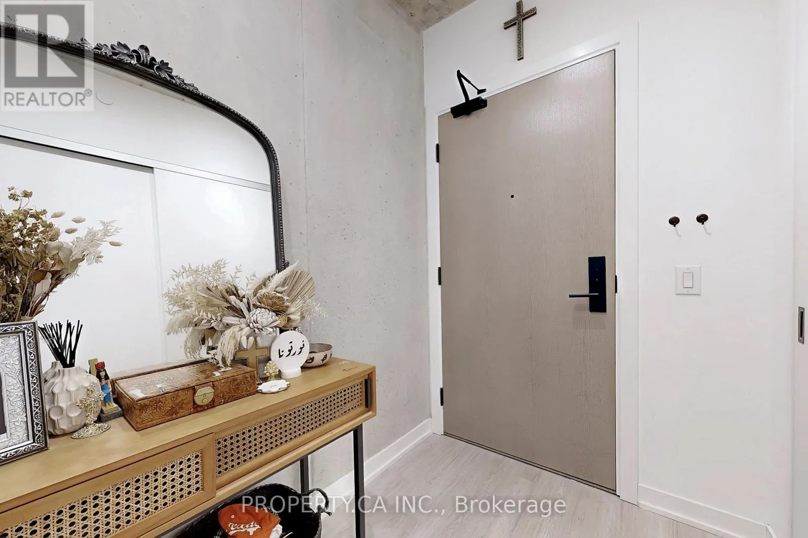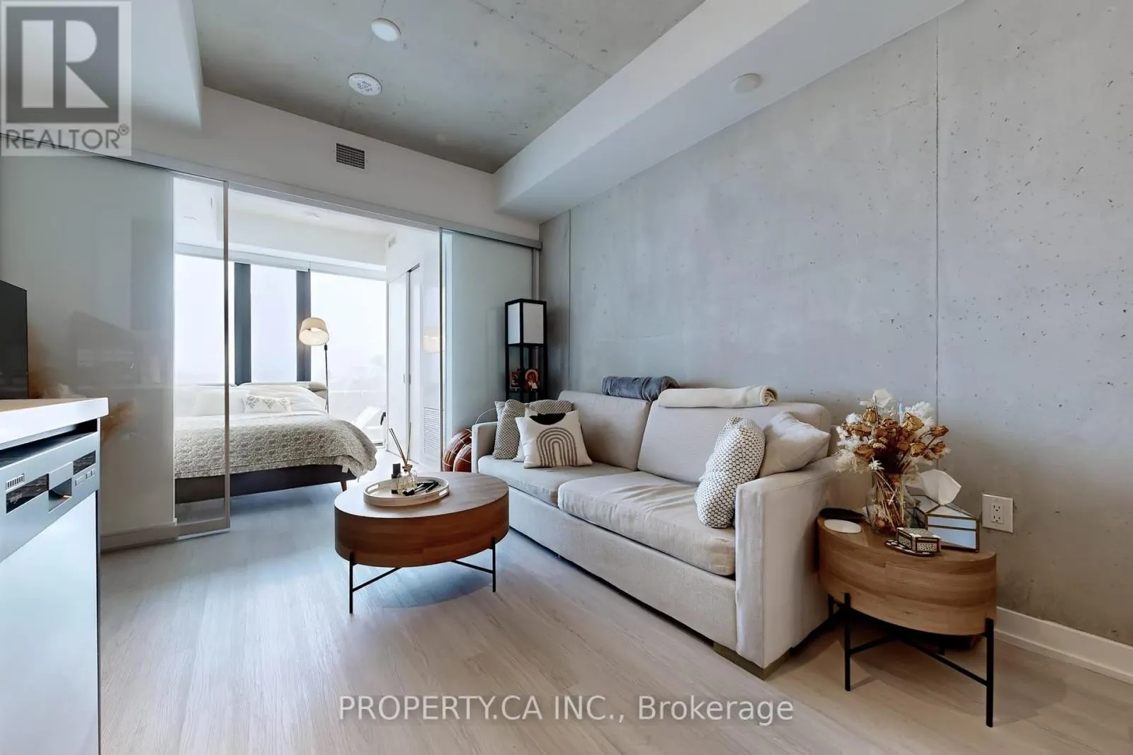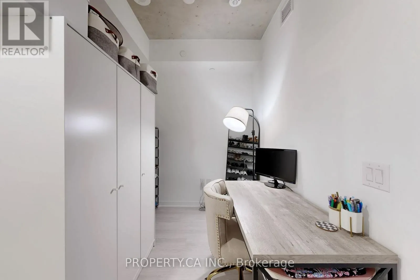 DUNDAS/UNIVERSITY Stylish 1 bedroom + den loft at The Bread Company Condos in the heart of downtown Toronto. Functional 549 sq ft layout featuring an open-concept living and dining area, modern kitchen with integrated appliances, and a versatile den ideal for a home office or guest space. Bright bedroom with sliding doors and excellent natural light. Enjoy exposed concrete details, 9 ft ceilings and contemporary finishes throughout. Unbeatable location steps to OCAD, U of T, hospitals, TTC, Queen Street shops, dining and entertainment. Perfect for professionals seeking a prime downtown residence with exceptional walkability and transit access. (id:27476)