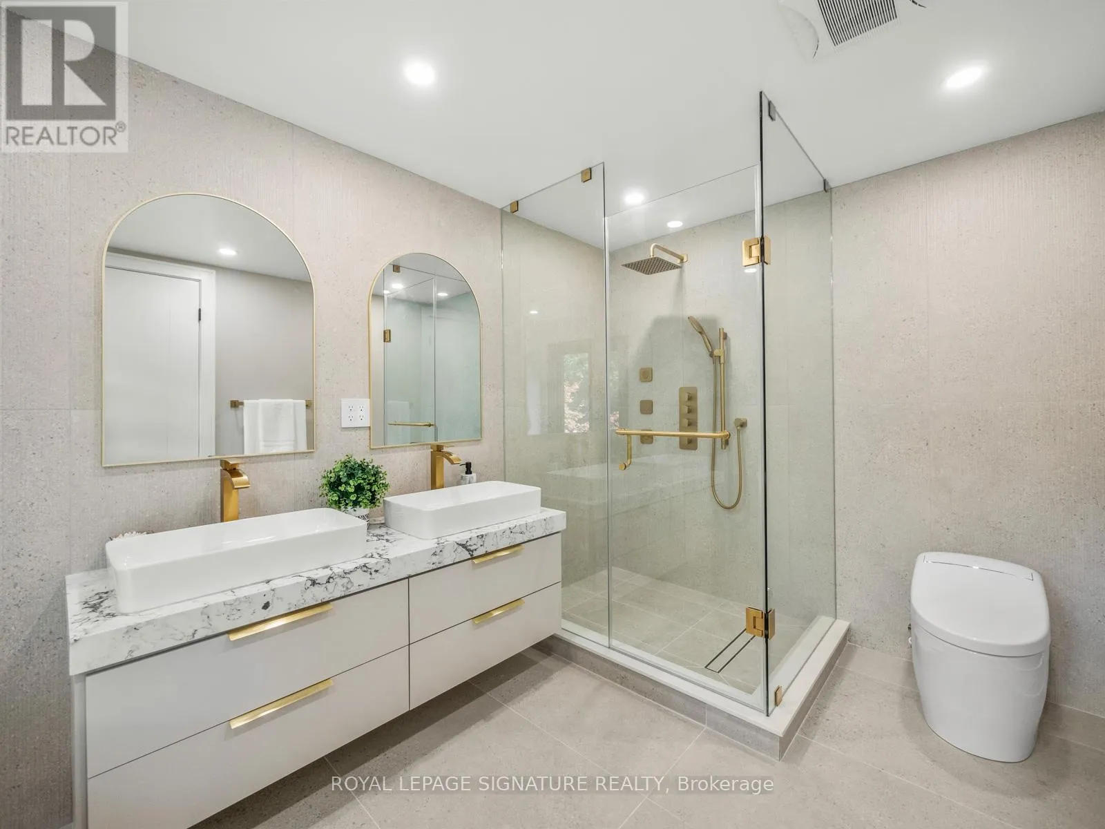 Lawrence Ave E and Bayview Ave Fully renovated, luxurious residence in the heart of Lawrence Park, one of Torontos most prestigious and sought-after neighbourhoods! The charming exterior showcases brand-new interlocking for a 3-car driveway, while the backyard is a private retreat complete with a large deck and an interlocked patio with gazebo. Inside, every detail has been thoughtfully designed! The stunning living room with a custom feature wall and electric fireplace, overlooks both the front yard and back yard! The elegant dining room with oversized windows features a custom glass wine wall, perfect for displaying your collection! At the heart of the home is a chefs dream kitchen, outfitted with a full suite of built-in Miele appliances, striking quartz countertops and backsplash and an expansive centre island providing seating, prep space, and hidden storage. The family room is a showstopper in its own right with an expansive, light-filled space framed by oversized black windows overlooking the backyard. Its seamless integration with the kitchen and walk-out to the backyard creates a natural flow between indoor and outdoor living. Upstairs, the primary suite impresses with a vaulted ceiling, a custom walk-in closet with organizers, and a fully tiled, spa-inspired 7-piece ensuite complete with glass shower, floating double vanity, free-standing soaker tub, smart toilet and designer finishes. The second bedroom offers its own 4-piece ensuite, while the third and fourth bedrooms include walk-in closets. A stacked laundry adds convenience on this level. The fully finished basement is designed with flexibility and lifestyle in mind. It features two massive recreation rooms that can be tailored to any need whether a home theatre, gym, games area, or playroom. High-quality finishes and above grade windows make the space bright and inviting. Steps from the park and a short walk to the highly regarded Blythwood Junior School, as well as other top public and private schools, shops, and ravine trails. (id:27476)