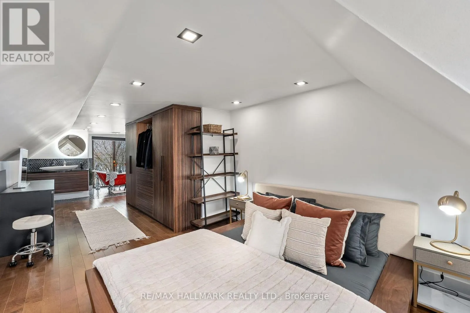 Cross Streets: Queen St / Eastern. ** Directions: https://share.google/NYkWihascTXbJLrZT. This stunning renovated 3-storey semi-detached home is a true gem. A luxurious suite on the second & third floor. Backs onto Johnathon Ashbridge park w/tennis courts, children's playground & more. 1 laneway parking spot. The 2nd & 3rd floors have been recently renovated w/expensive upgrades. 2nd floor includes an ultra-modern kitchen featuring newer high end appliances & sleek black stone countertops. Custom closets w/ interior lighting provide ample space for even the largest of wardrobes. 3-piece bath w/ glass shower enclosure & handheld shower wand. Gas fireplace w/ 3-sided view. A stunning floating staircase leads up to the primary retreat on 3rd floor. The luxurious suite on 3rd floor is a fashionista's dream. Large windows flood the room w/ natural light. Pot lights & custom railings. Ensuite bathroom is a stand out w/ clawfoot tub, giant rain shower head, & water closet that leave you in awe. Juliette balcony offers a perfect spot for relaxing & enjoying the warm summer breeze. Custom closets provide ample storage. Hardwood floors throughout. Easy access to downtown & the DVP. Steps away Queen St E & 24hr streetcar. A must see! (id:27476)