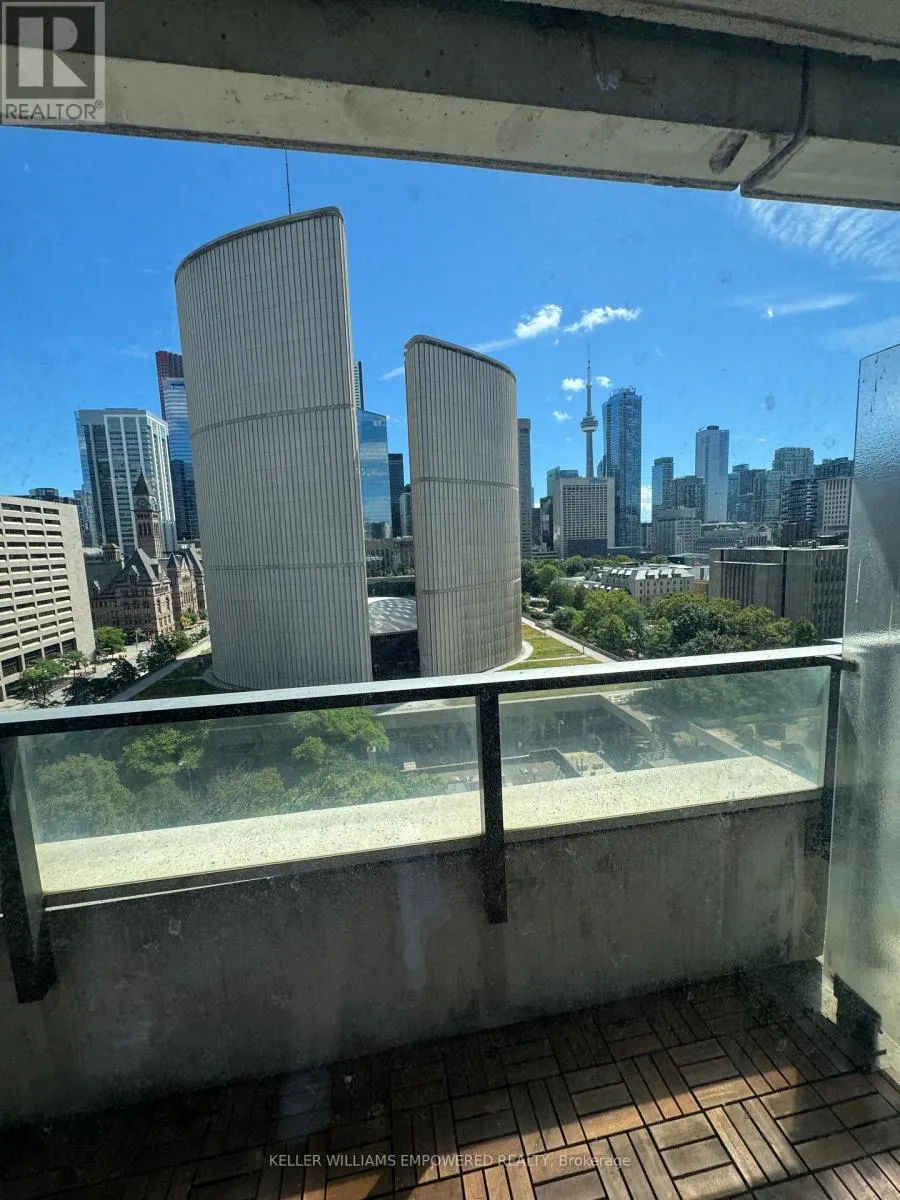 Cross Streets: Dundas & Bay. ** Directions: North on Bay, Left On Dundas, Left On Elizabeth. Experience urban sophistication at its finest in this newly renovated 2-bedroom, 2-bathroom condo in the heart of Downtown Toronto's coveted Bay Street Corridor. Thoughtfully updated to align with the building's modern aesthetic, this move-in-ready suite features brand new hardwood floors and a freshly painted interior, delivering a clean, contemporary feel throughout.The open-concept kitchen is designed for both everyday living and effortless entertaining, complete with stainless steel appliances, sleek cabinetry, and ample counter space. The spacious living and dining area extends seamlessly to a large private balcony with unobstructed CN Tower views-the perfect spot for morning coffee or unwinding after a long day in the city.The primary bedroom offers generous closet space and an updated ensuite, while the second bedroom provides flexibility for guests, a home office, or a roommate setup.Residents of One City Hall Condos enjoy premium, hotel-style amenities including a 24-hour concierge, indoor pool, fully equipped gym, rooftop deck, guest suites, and visitor parking, all within a secure and well-managed building.Step outside and be just moments from the Eaton Centre, Dundas Square, Toronto Metropolitan University, major hospitals, the Financial District, TTC subway, and some of the city's best dining and shopping. This is downtown living at its most convenient.Stylish, meticulously maintained, and exceptionally located, this suite is ideal for professionals seeking comfort, lifestyle, and unbeatable access to the core.Some photos are virtually staged. (id:27476)