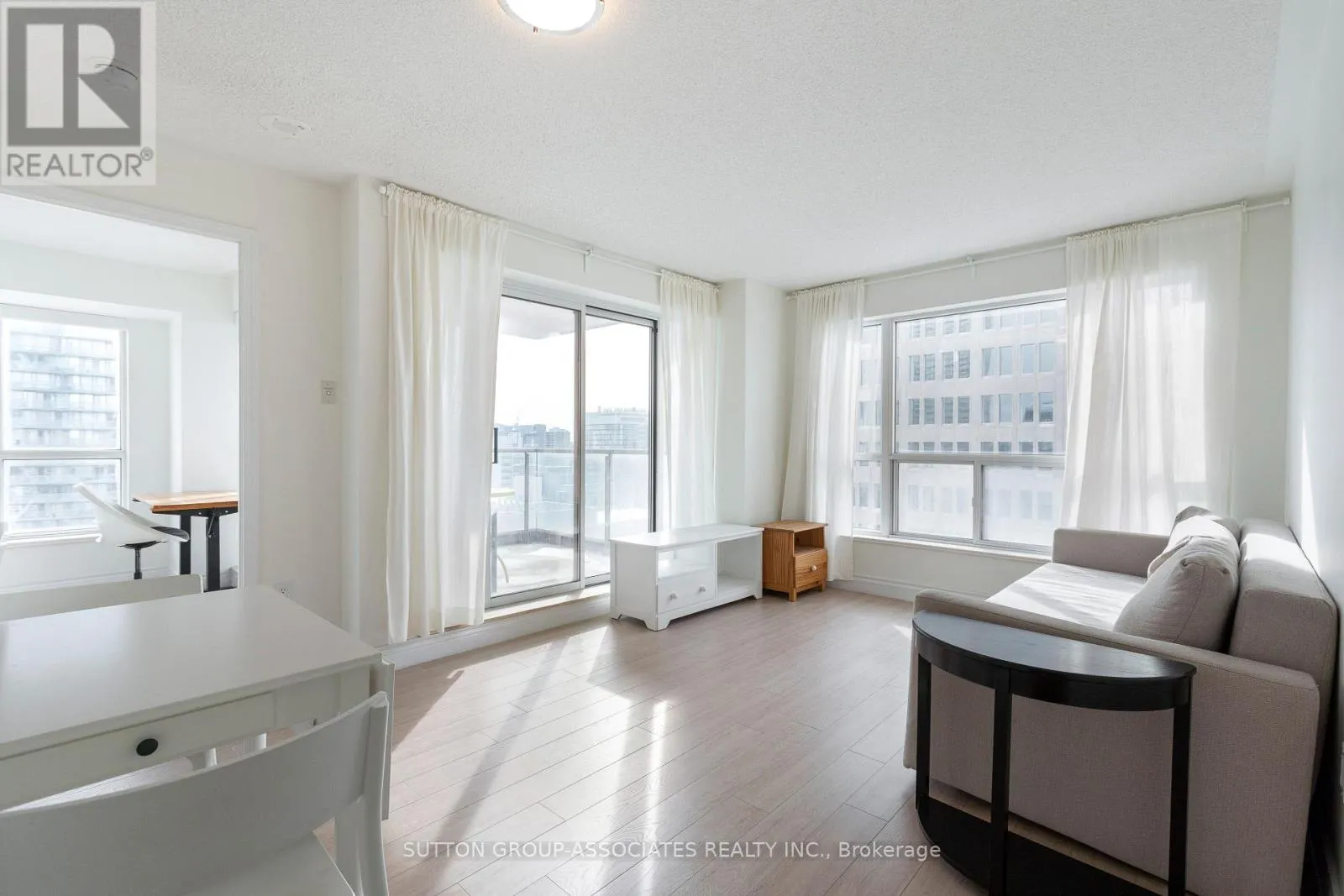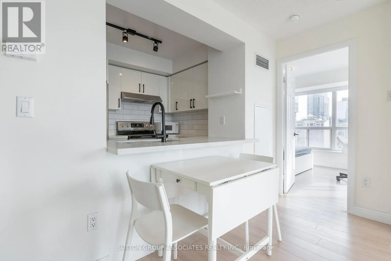 Bay/Wellesley Renovated and furnished corner unit, flooded with natural light! Open-concept living and dining featuring sliding glass doors leading to a deep, covered balcony. Chef's kitchen with ample storage and breakfast bar. Large bedroom with generous storage, space for a desk, and additional walkout to balcony. Renovated bathroom with a soaker tub. Ensuite laundry. Rental Includes use of one parking spot, heat, water, hydro and furniture (as shown). Exceptional 99 Walk Score - short walk to subway, U of T, Yorkville shops and restaurants, and major hospitals. AAA tenants only. No pets. Non-smokers (id:27476)