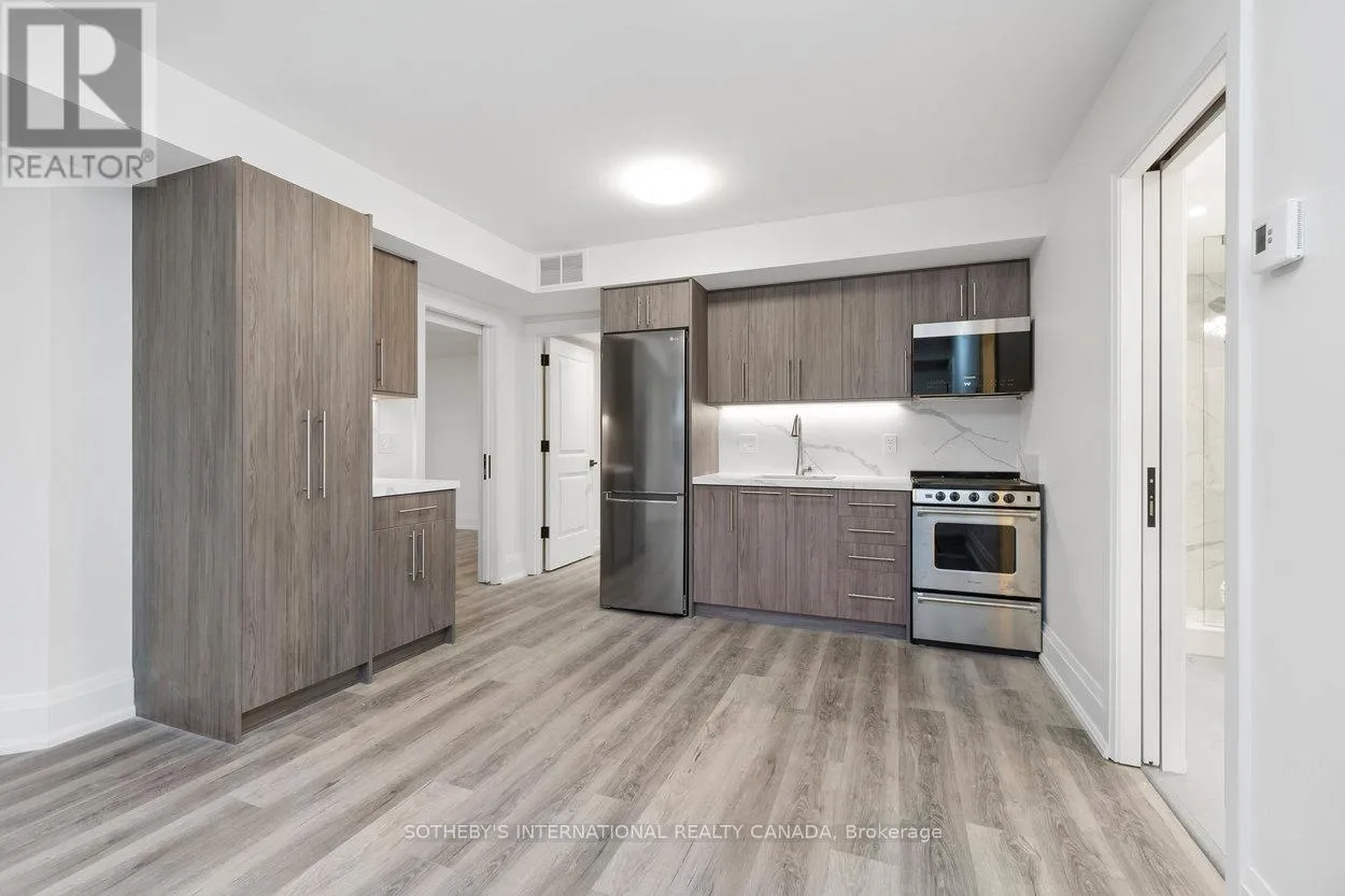 Cross Streets: Bloor & S. Kingsway. ** Directions: Larkin is a one way street. Bright and beautiful two bedroom apartment in a 5 plex. You haven't seen a prettier suite in the area. Huge living room window and a bay window on the side for sunshine all day with front and back entrances. Primary bedroom fits a king size bed and night tables and has built in his/ hers closets, 2nd bedroom has a walk out to parking and short cut to transit and subway meters away. Premium top notch builders own build - Each suite built with tenant comfort in mind. All suites independently acoustically insulated and fire retardant - there is no quieter apartment to be found in Bloor West. Built in appliances, window coverings and closets, high end cabinetry and finishes. Walk to Jane Subway, Bloor west village shops, restaurants, parks, trails and everything your heart desires. One Parking is available on premises (extra) and street permit parking through the city of Toronto. Each suite has its own individual climate control thermostat. Individual alarm & security system available for $30./month. Individual hydro meters for each apartment & tenant pays a portion of gas and water based on square footage of suite and hydro is metered separately. Grounds are maintained year round (lawn/ garden/ snow/ salt) for a proportionately shared cost by all tenants. (id:27476)