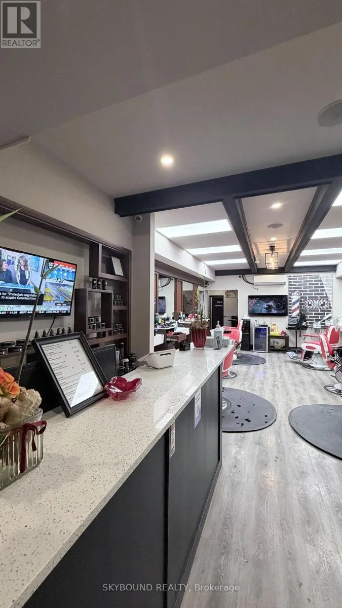 Cross Streets: College St and Euclid Ave. ** Directions: Going southbound from College St and Bathurst St turn right on College, go straight towards Euclid Ave. Turn-key barber shop located in a vibrant, high-traffic area, College and Bathurst, Toronto downtown area with many buildings and schools around. This fully equipped business is ready to operate from day one and comes with a loyal, established client base. Modern interiors, professional tools, and a welcoming atmosphere make it an ideal opportunity for anyone looking to step into a thriving business with immediate income potential, including a nail/waxing room for lease for extra income. Surrounded by a bustling neighbourhood with strong foot traffic, this shop is perfectly positioned for continued growth and success. (id:27476)
