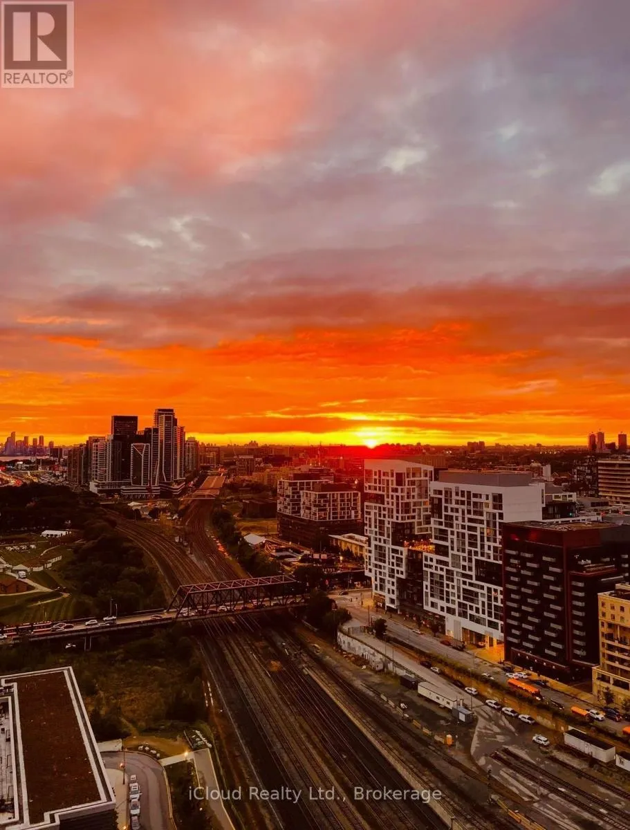 Front & Spadina Come Live in Parade 2 at City Place where the electric energy of the city meets waterfront calm. This bright and spacious 1 bed + den sits on a high floor with a gorgeous west-facing view, serving up glowing sunsets and skyline moments you'll never get tired of. The ideally laid out floor plan lends itself equally to relaxing or entertaining. You'll love the modern cabinetry, a statement light fixture and floor-to-ceiling windows. The custom kitchen island is perfect for entertaining & adds a cool downtown feel. The living area flows to the walk-out balcony, where west views and incredible sunsets steal the show. The big den is enclosed with custom sliding doors giving you flexibility for a guest bedroom or work from home office space - you choose! Wake up in your new bedroom with city views that remind you why downtown living just hits differently. This unit comes with most of the furniture making it an easy move-in option for someone ready to step into ownership without the stress. You also get one parking space and one large locker, which is a major win in City Place. As an added bonus you get full access to the Parade Club, one of the most impressive amenity collections in downtown Toronto. Enjoy a 24-hour concierge, indoor pool, fully equipped gym, yoga studio, squash courts, ping-pong & pool tables, theatre room, party room, rooftop terrace with BBQs, guest suites, kids play area and ample visitor parking. It's a true lifestyle building designed for people who want it all. Location-wise, it doesn't get better. You're steps to TTC, Sobeys, the Waterfront, Rogers Centre, CN Tower, Union Station, The PATH, and surrounded by some of downtown Toronto's best restaurants, cafes, and shops. Quick access to the Gardiner makes commuting simple, while the waterfront trails make weekend plans easy.This is the condo you want - Stylish, well laid out, move-in ready, and set in one of Toronto's most dynamic neighbourhoods. This is downtown living done right! (id:27476)