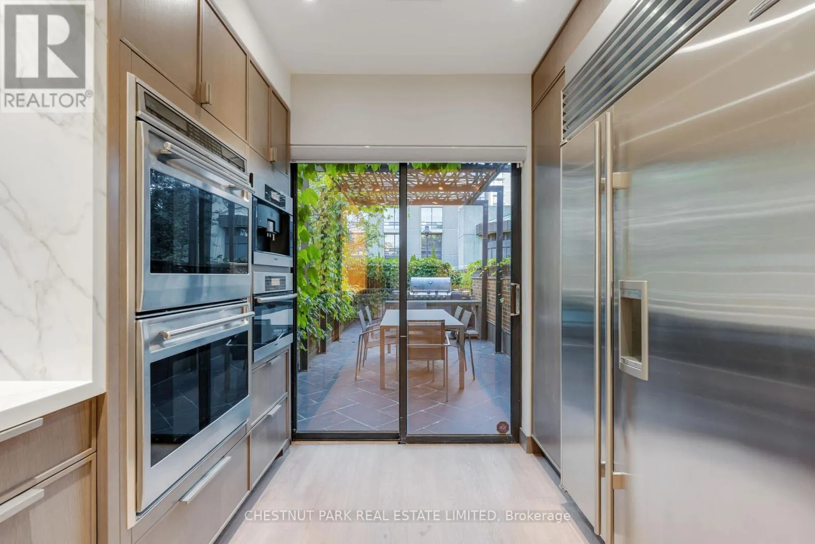 Cross Streets: Avenue & St Clair. ** Directions: Between Heath St & Avenue Rd on Oriole Rd. Experience elevated living in this fully reimagined 3-bedroom, 4-bathroom townhome, quietly tucked within a prestigious Forest Hill/Deer Park enclave. Rebuilt from the studs up, this exceptional residence spans over 6,400 total sq.ft. of sophisticated living space, seamlessly blending timeless elegance with modern luxury. A gracious foyer with porcelain tile flooring, bespoke built-ins, and a solid-core entry door leads to expansive living and dining areas adorned with oak hardwood floors (herringbone in the dining room), crown moulding, and custom drapery. The dramatic family room impresses with soaring ceilings, skylights, and gallery-style walls, creating an ideal backdrop for art and entertaining. At the heart of the home, the chef's kitchen is a true showpiece, featuring porcelain countertops, custom cabinetry, a Wolf gas range with dual ovens, Sub-Zero fridge/freezer, two dishwashers, and a built-in coffee system. French doors open to a private stone patio, perfect for outdoor dining and entertaining. The serene primary suite offers a custom walk-in closet and a spa-inspired 5-piece ensuite with floating vanity, TV mirror, soaker tub, and a glass-enclosed shower with offset controls. Two additional bedrooms - one easily adaptable as a home office - share a designer 3-piece bath and walk-in closet. The sun-filled lower level provides remarkable versatility, boasting a recreation room with gas fireplace and dual Murphy beds, a gym or second family room with walkout, a full galley kitchen, a 450-bottle wine cellar, private office, sleek wet bar, and a spa-like bathroom with steam shower - ideal for guests or extended family. A private two-car garage with direct mudroom entry adds everyday convenience. Residents enjoy concierge service and premium amenities including two fitness centres, an outdoor pool, party room, and more. Just steps to Forest Hill Village, Yonge & St. Clair, TTC, and some of Toronto's most sought-after schools. (id:27476)