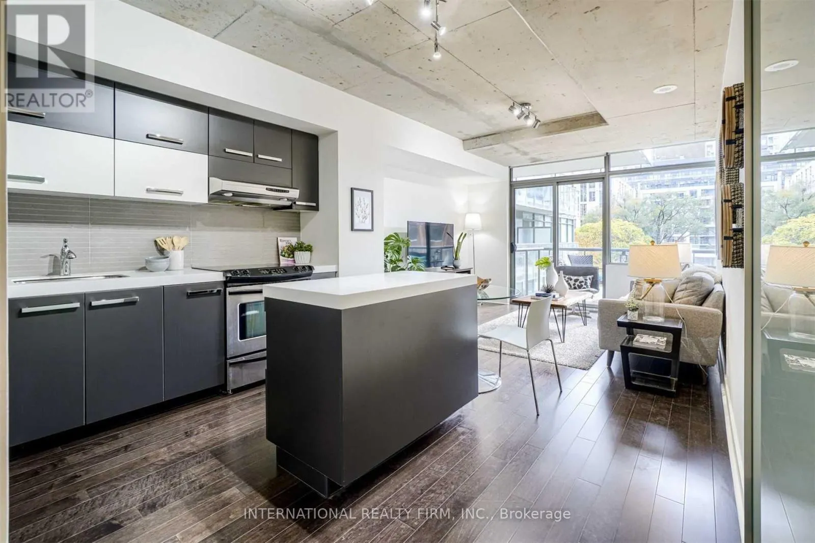 Cross Streets: King St W & Bathurst St. ** Directions: South. Welcome to the Prestigious Thompson Residences in the heart of Prime King West. Rarely offered and highly sought after, this super functional one bedroom layout offers an exceptional blend of space, light, and livability. Featuring sunny south facing windows, this suite is filled with natural light and enhanced by high ceilings, engineered hardwood flooring throughout, and heating and cooling year-round for complete comfort. The gorgeous oversized kitchen is ideal for both everyday living and entertaining, complete with Corian countertops, stainless steel appliances, a sizeable island, and ample cabinetry and prep space. The large bedroom features a spacious closet with a full custom closet organizer including built in drawers, offering excellent storage and functionality. Enjoy a large private balcony, perfect for morning coffee or evening relaxation. Residents of the Thompson Residences enjoy full access to 1 Hotel's luxury amenities, including a state of the art fitness centre, steam room, showers, and a spectacular rooftop pool with panoramic skyline views of Toronto and the CN Tower. Located in one of Toronto's most vibrant neighbourhoods, you are steps to world class restaurants, cafés, nightlife, transit, and everyday conveniences offering an unmatched urban lifestyle in the centre of it all. (id:27476)