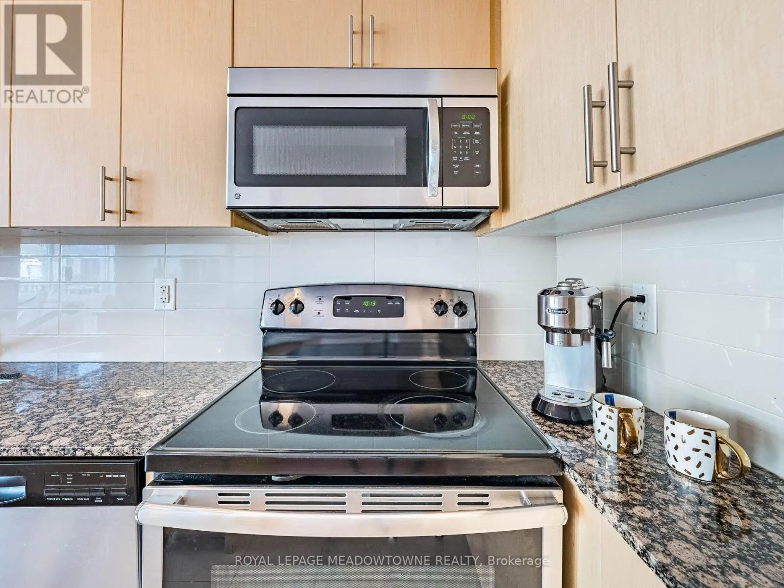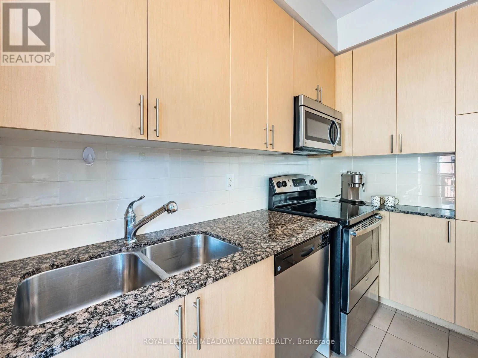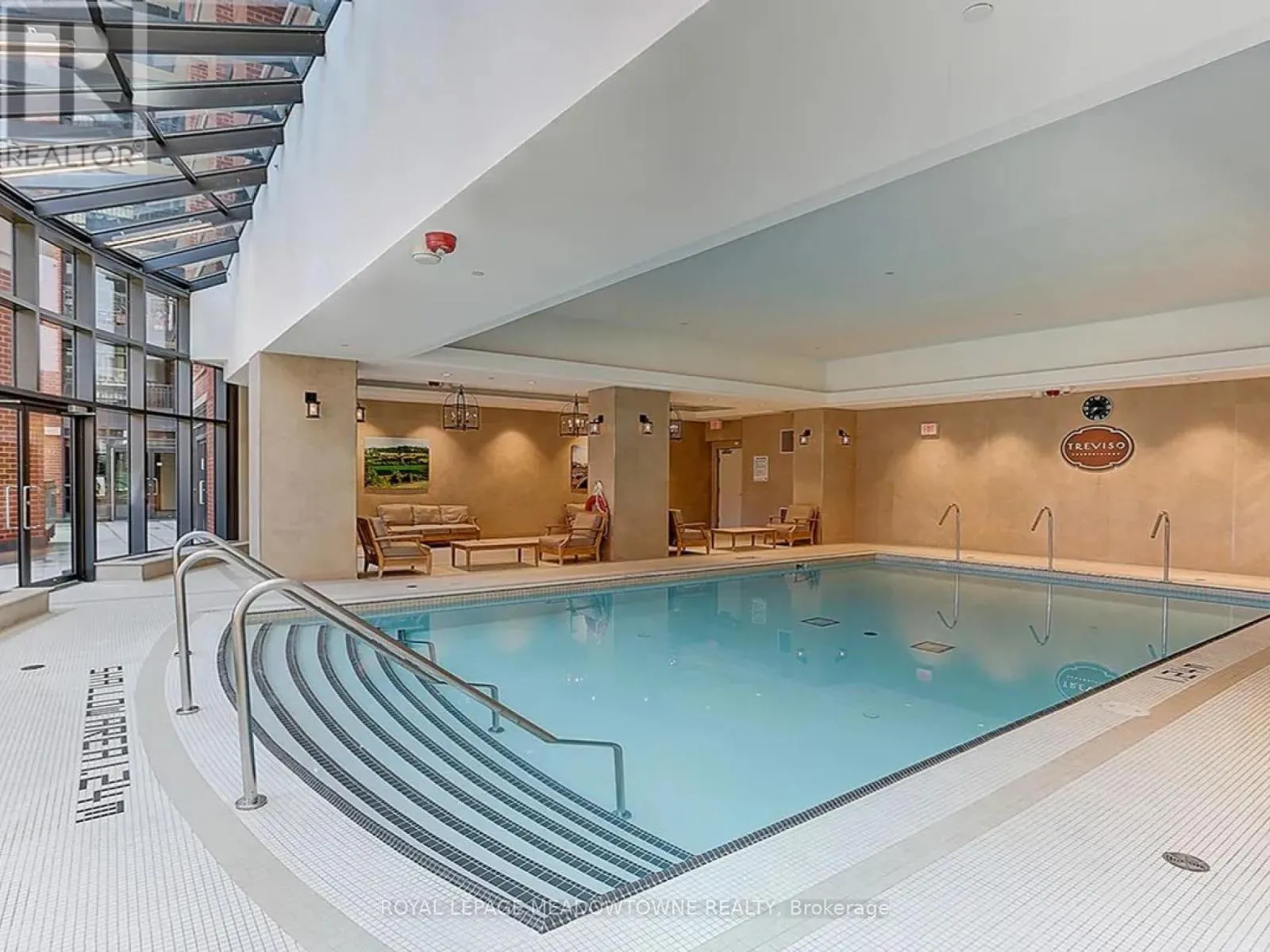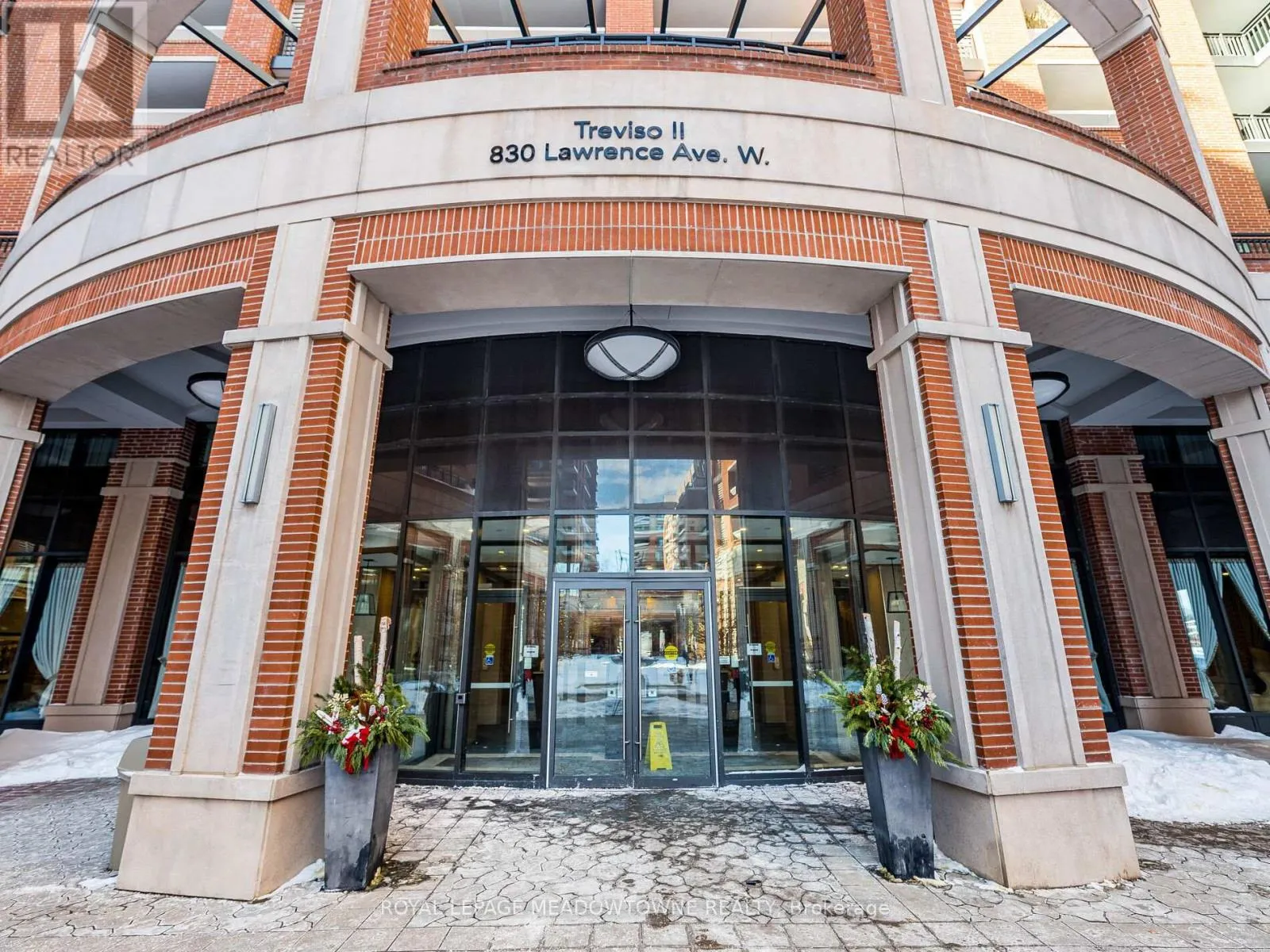 Dufferin/Lawrence Experience Italian-inspired luxury in this bright and spacious 853-square foot suite at the centrally located Treviso 2. This thoughtfully designed residence features two bedrooms plus a versatile den that can easily serve as a third bedroom, complemented by two full bathrooms and a private balcony. The interior boosts soaring nine-foot ceilings and sleek laminate flooring throughout, while the gourmet kitchen is finished with elegant granite countertops and premium stainless steel appliances. Residents benefit from the ultimate convenience of included parking and a storage locker, alongside 24-hour concierge security and five-star building amenities, including a professional gym, indoor pool, sauna and a sophisticated party room. Perfectly positioned for an effortless urban lifestyle, this home is just a short walk from Lawrence West Subway Station and minutes from Yorkdale Mall, reputable schools, and a diverse array of local shops and restaurants. (id:27476)
