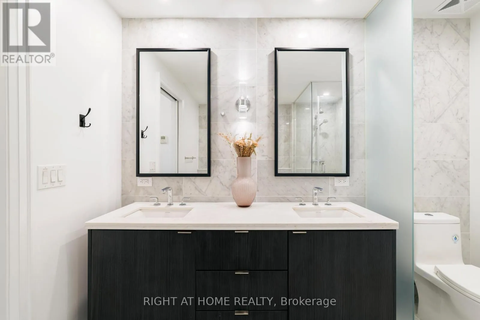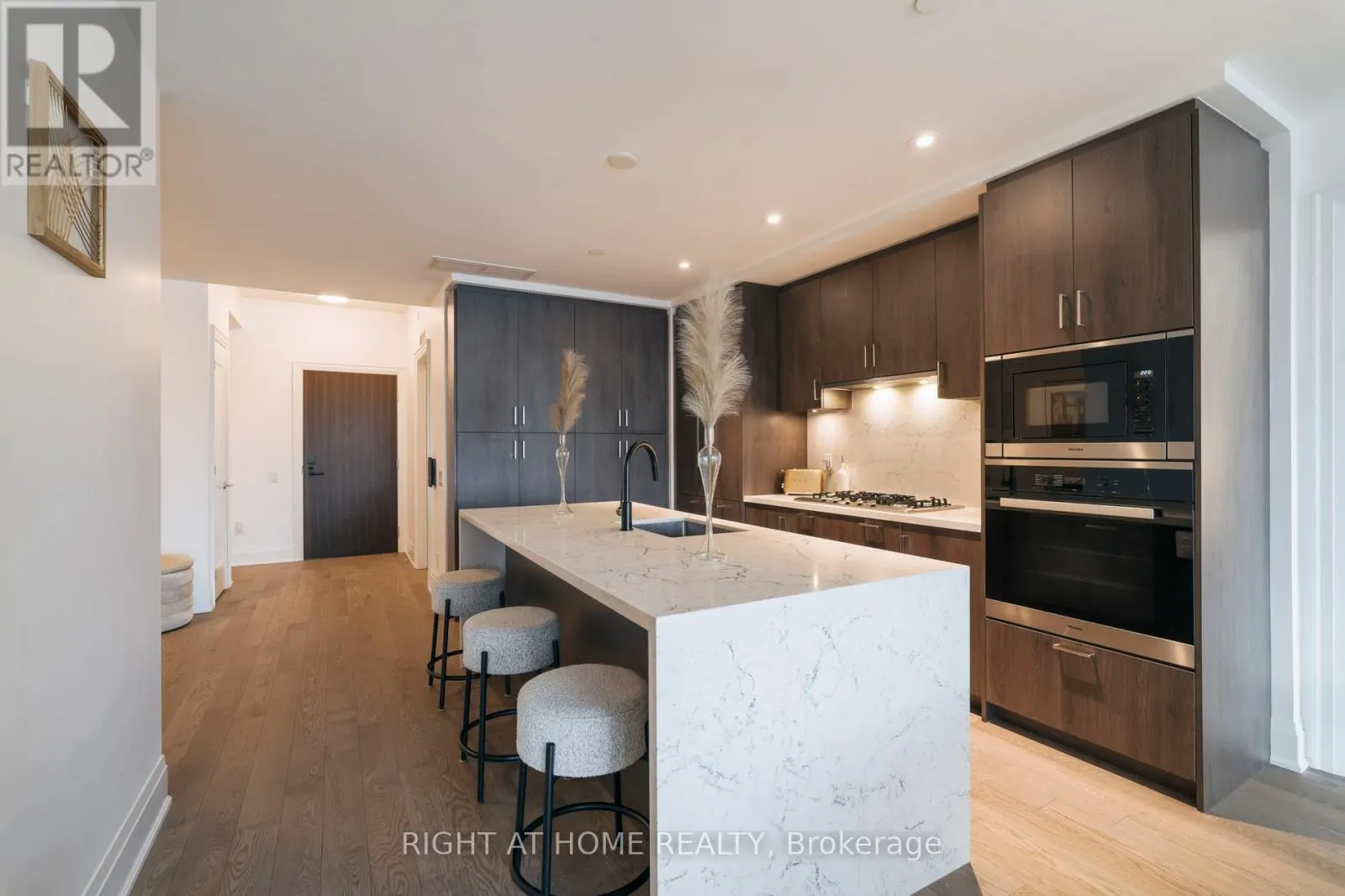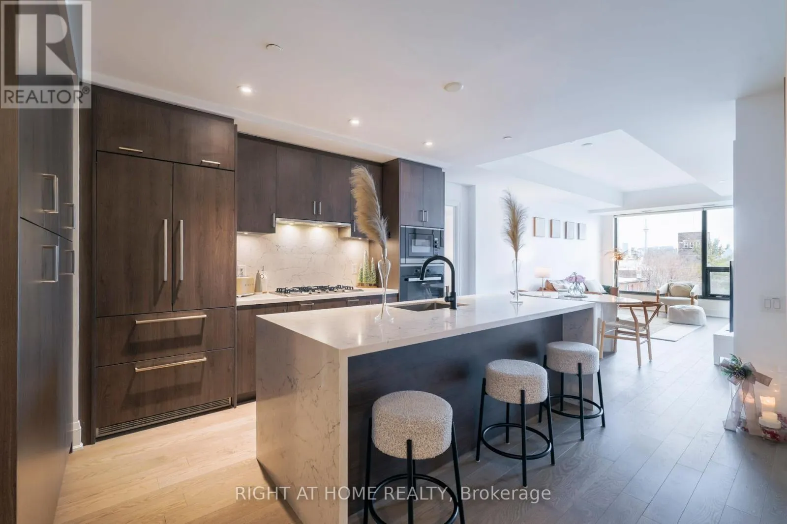 Cross Streets: DUPONT ST/HOWLAND AVE. ** Directions: DUPONTST/BATHURST ST. Welcome to Tridel's Bianca residences Suite 410 as part of premium Annex Collection, this bright spacious over 1300 sq ft south facing suite boosts unobstructed view of CN tower, Designer kitchen cabinetry with contemporary full height flat panel doors complete with integrated Miele appliances. Quartz kitchen countertop and matching backsplash with polished double square edge and deep undermount sink, Distinctive multitask island with waterfall edge countertop. Miele 36" integrated refrigerator with matching panel door, Miele30" built-in stainless steel convection wall oven, Miele 36" built-in gas cooktop, Miele 24" integrated dishwasher, Miele built-in, stainless steel microwave, Wiring done for motorized window blinds. Includes one parking at P1 Level and one locker. (id:27476)