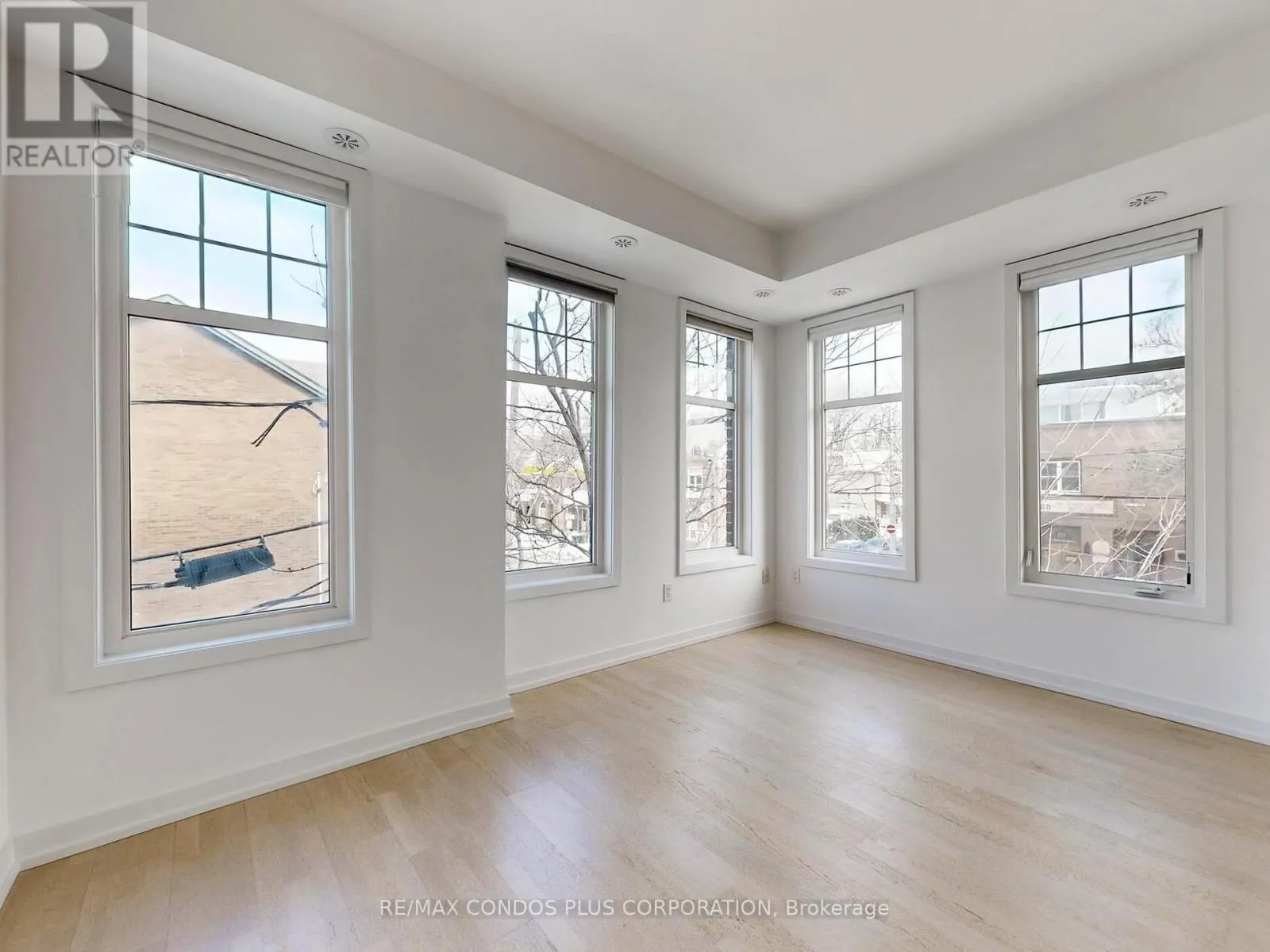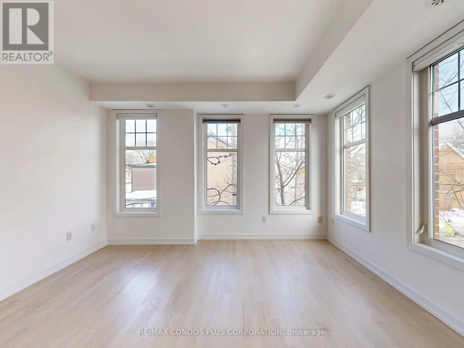 Queen St. E and Broadview Ave. Bright & spacious 3-level corner town located in Toronto's desirable Riverside neighbourhood. Features 910 sf of interior living space, contemporary open concept design, abundance of natural light, 9' smooth finish ceilings, hardwood floors throughout, and modern kitchen with breakfast bar, quartz counters, & SS appliances. Versatile & functional floor plan with generously sized primary bedroom, & den that can easily serve as a 2nd bedroom or home office. Huge 155 sf private roof top terrace with open views & BBQ gas line perfect for entertaining. Includes 1 parking space. Minutes from the Waterfront, Corktown Commons, & Jimmy Simpson Park. Steps to public transit, restaurants, cafes, and shopping along Queen St. E. Easy access to Gardiner Expwy, Lake Shore Blvd., and DVP. (id:27476)