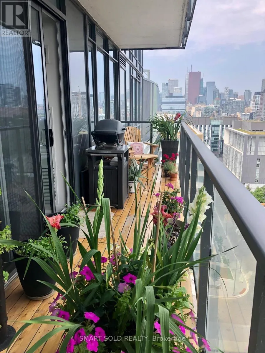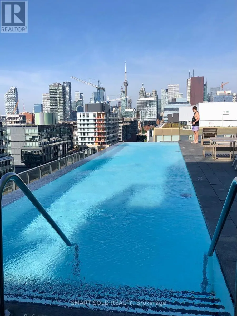 Cross Streets: Bayview & Front Street. ** Directions: on Bayview. Large Locker & Building Internet is included!! LEED winning Building!! 636 sqft Interior + 150 sqft Balcony!! One bdrm + den with Window (sliding door provides 2nd bdrm)!! Lots of natural light, with 9-foot ceilings. Large, open-plan Kitchen/Living/Dining Area. Full length balcony with panoramic downtown views & some of the best sunsets in the city. Located steps from Corktown Common, the Distillery District, George Brown College, and the YMCA, with parks, trails, and transit right at your doorstep. First-class building amenities; Rooftop Infinity Pool with exceptional views of the lake & CN Tower. Rooftop BBQ area, yoga studio, & well laid out gym. *. Built-In Liebherr fridge/freezer, Porter & Charles Oven & Dishwasher, B/I microwave, stacked washer/dryer. (id:27476)