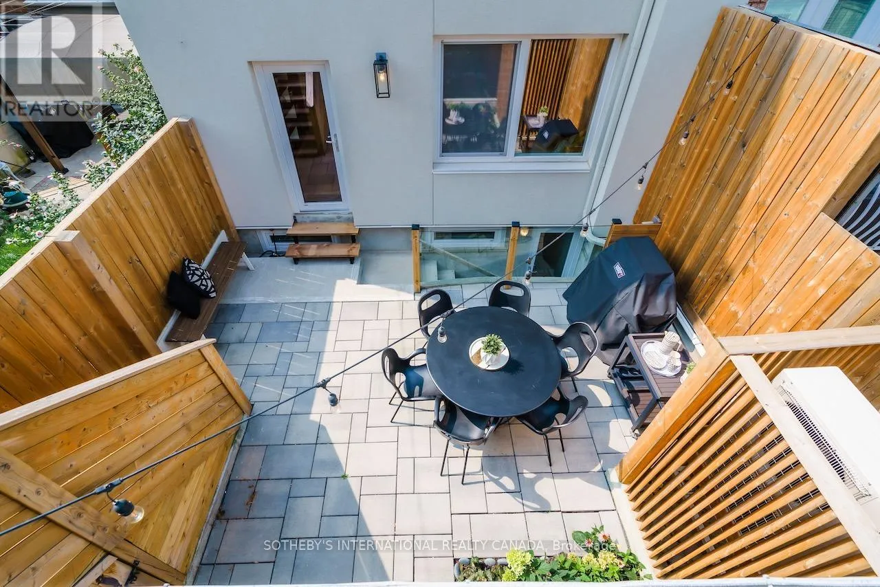 Queen St W & Gladstone A rare Certified Passive Home in Queen West, this modern masterpiece is designed for both style and sustainability. Purpose-built to meet rigorous energy-efficiency standards, this ultra-low-cost home offers over 3,000 sq ft of above-ground living space, where sleek finishes and thoughtful details define an elevated urban lifestyle. The main floor welcomes you to a bright, open-concept layout featuring wide-plank hardwood floors, a statement staircase with glass railings, custom oak cabinetry, and designer LED lighting throughout. The chef's kitchen is a true showstopper complete with integrated high-end appliances, stone countertops, dramatic backsplash, and an oversized island with seating. The adjoining family room offers a seamless indoor-outdoor connection with a walkout to the private back patio. Upstairs, soaring 9ft ceilings enhance the sense of space and light. The serene primary suite features a walk-through closet with built-ins, a spa-like 4-pc ensuite, and large windows overlooking a private terrace. This level also includes a second bedroom with its own ensuite and a full laundry room. The third floor offers a stunning secondary primary retreat with a luxurious 5-pc ensuite featuring a soaker tub, extensive closet space, and direct access to a private rooftop deck. An additional large bedroom with generous storage completes this level. Bathrooms throughout are finished with premium fixtures by Gessi, Toto, and Nobili, complemented by floating vanities and wall-hung toilets. The lower level, with separate entrance, offers a spacious living and dining area, a 4-piece bath, and a generous bedroom-ideal for an in-law, guest, or nanny suite. A detached two-car garage wired for an EV charger and a rooftop terrace further enhance the outdoor lifestyle. Steps to the shops, cafés, and restaurants of Queen West and Ossington, and minutes to the future King-Liberty GO Station, this exceptional home delivers a rare blend of luxury, and urban convenience. (id:27476)