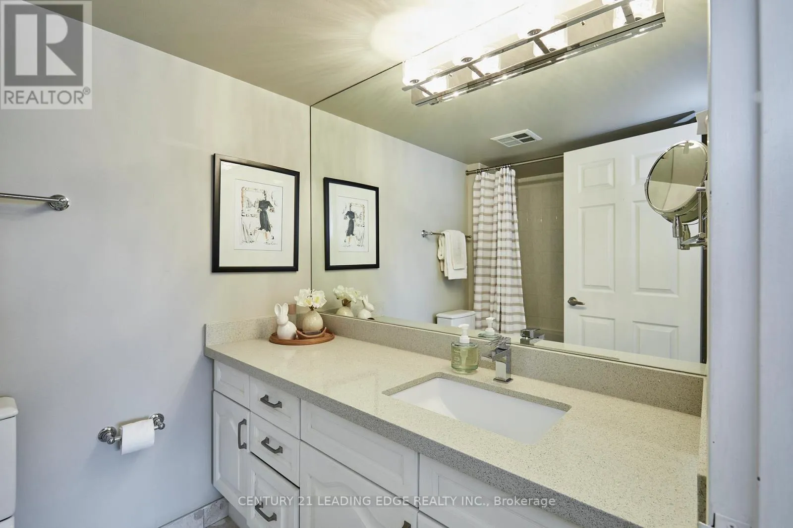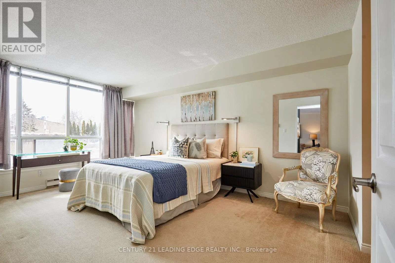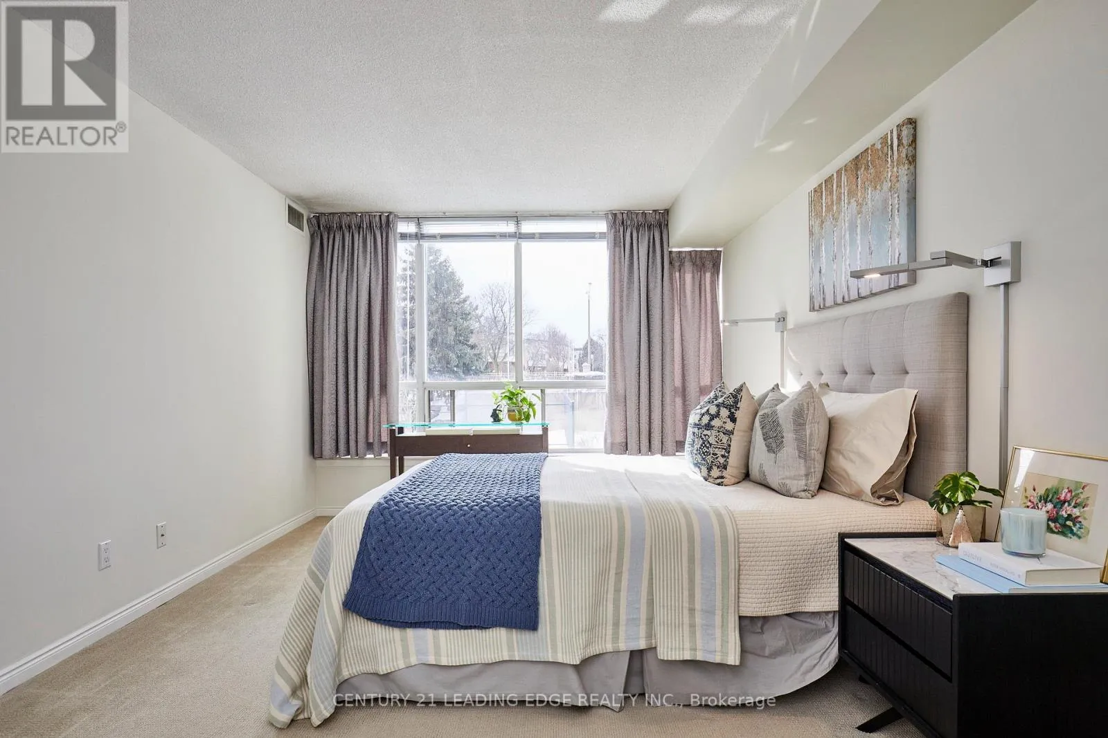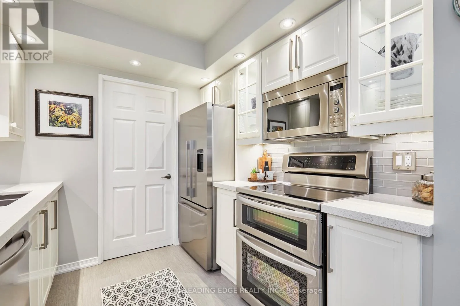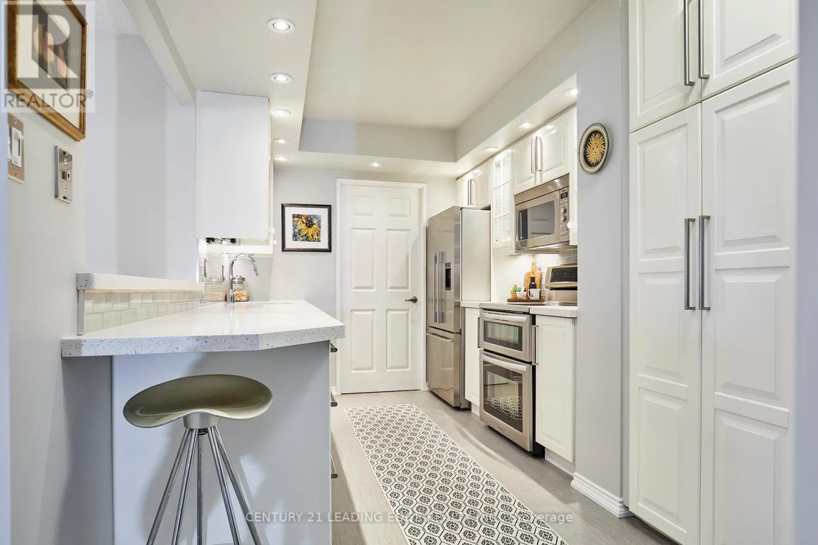 Kingston Rd. & Guildwood Parkway Welcome home to the highly sought-after Gates of Guildwood. This exceptional Dearham suite truly stands apart. This desirable 2nd-floor Dearham suite offers 1,185 sq. ft. of beautifully updated, move-in-ready living space with stunning unobstructed southwest garden views. The ideal layout features 2 bedrooms + open den with walk-out to balcony, 2 bathrooms, and a stunning kitchen. Custom upgrades elevate this suite: a showstopper dining room light fixture, custom blinds & curtains, marble window sills, marble baseboards in the 3pc bathroom, open concept den & a designer kitchen that steals the show! Kitchen highlights include stainless steel appliances, quartz countertops, pot lights, tile flooring, two floor-to-ceiling side-by-side custom built-ins, illuminated glass cabinets, custom shelf over the sink & glass tile backsplash. Freshly painted & professionally cleaned broadloom, new sliding doors & furnace, this suite is truly turnkey. Additional conveniences include a main-level locker steps from the door, easy access to your parking spot and a convenient exterior side entrance--perfect for daily walks and effortless coming and going. Nestled atop picturesque Guildwood Village, this prestigious enclave boasts 10 acres of award-winning gardens, mature trees, walking paths, and a gazebo. Experience resort-like, active lifestyle amenities right at home with a substantial BBQ area, tennis/pickleball courts, putting green, indoor swimming pool, hot tub, sauna, fitness room with workout equipment, squash, table tennis, billiards, library, media room, and a large party space. Walk to shops, parks, GO Train & TTC. 24-hour Gatehouse Security ensures peace of mind. Maintenance fees cover heat, hydro, water, A/C, Rogers Ignite internet & TV, bike storage & even a car wash! Visitor parking, and reservable guest suites make hosting easy. Gates of Guildwood offers everything for a hassle-free lifestyle in one of Scarborough's most desirable communities! (id:27476)