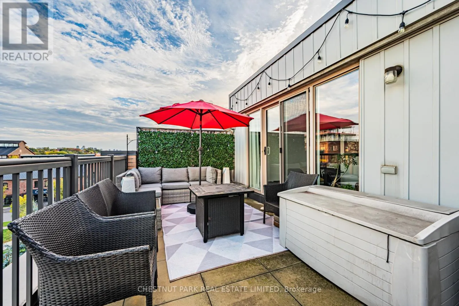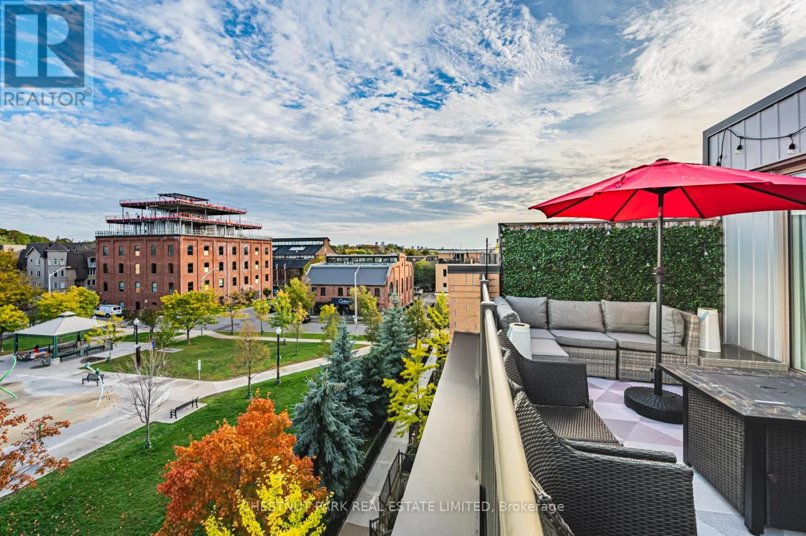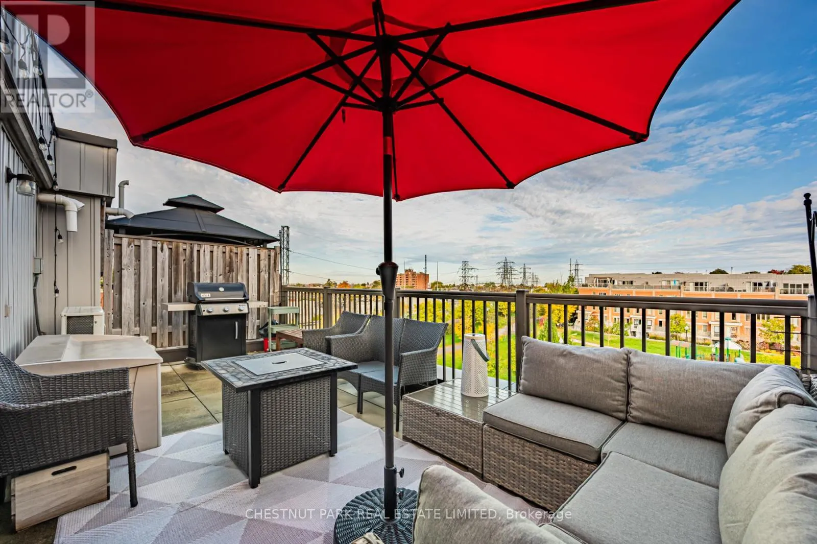 Cross Streets: Davenport Rd & Lansdowne Ave. ** Directions: West of Foundry Ave. Wake up to postcard-worthy, unobstructed views over Davenport Village Park - your own manicured green "front yard," with a playground and splash pad, and none of the upkeep. A serene, show-stopping outlook that makes everyday living feel like a treat. This beautifully renovated upper unit, three-storey 2+1 bed, 2-bath townhome offers 1,195 sq ft of polished living space plus an expansive almost 200 sq ft rooftop terrace ideal for BBQing & sunset entertaining. The open-concept main level is anchored by a renovated eat-in kitchen overlooking the living and dining areas, framed by sweeping park views. Extensive seller improvements include a complete kitchen revitalization with a new custom island, quartz countertops, backsplash and flooring, plus a new oven and dishwasher - along with updates to both bathrooms with new tile and a second-floor bath with a custom vanity and new toilet. Upstairs, the primary features a walk-in closet and private balcony with park views, plus a generous second bedroom with a closet and a versatile third-floor ideal for a home office or hang out space. Newly replaced flooring on the second and third levels adds a fresh, finished feel, and you'll enjoy 1 parking spot plus rare TWO lockers. Perfectly positioned between Davenport & Dupont and moments to the beloved Wallace-Emerson, Junction, Dovercourt Village and Weston-Pelham Park neighbourhoods. Steps to Balzac's, TTC, UP Express and GO, and minutes to Earlscourt Park's tennis courts, track, baseball diamond and off-leash dog park. Parkfront serenity meets city convenience. (id:27476)
