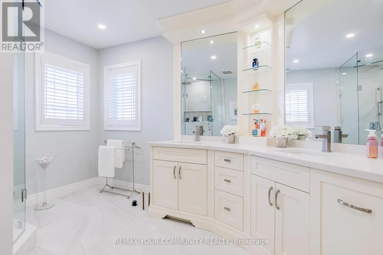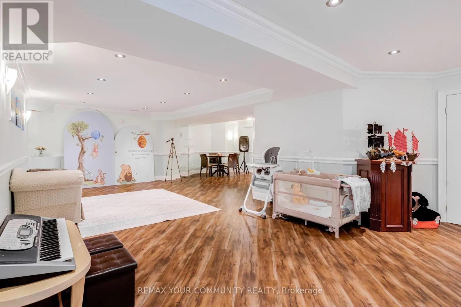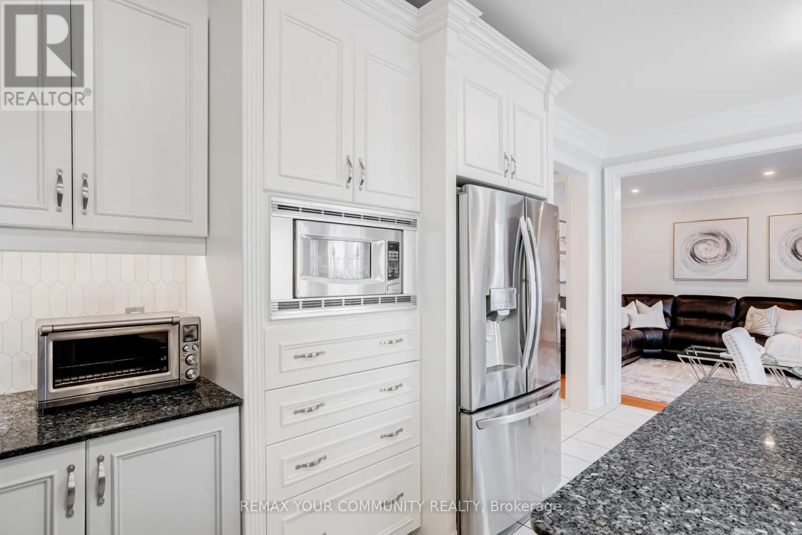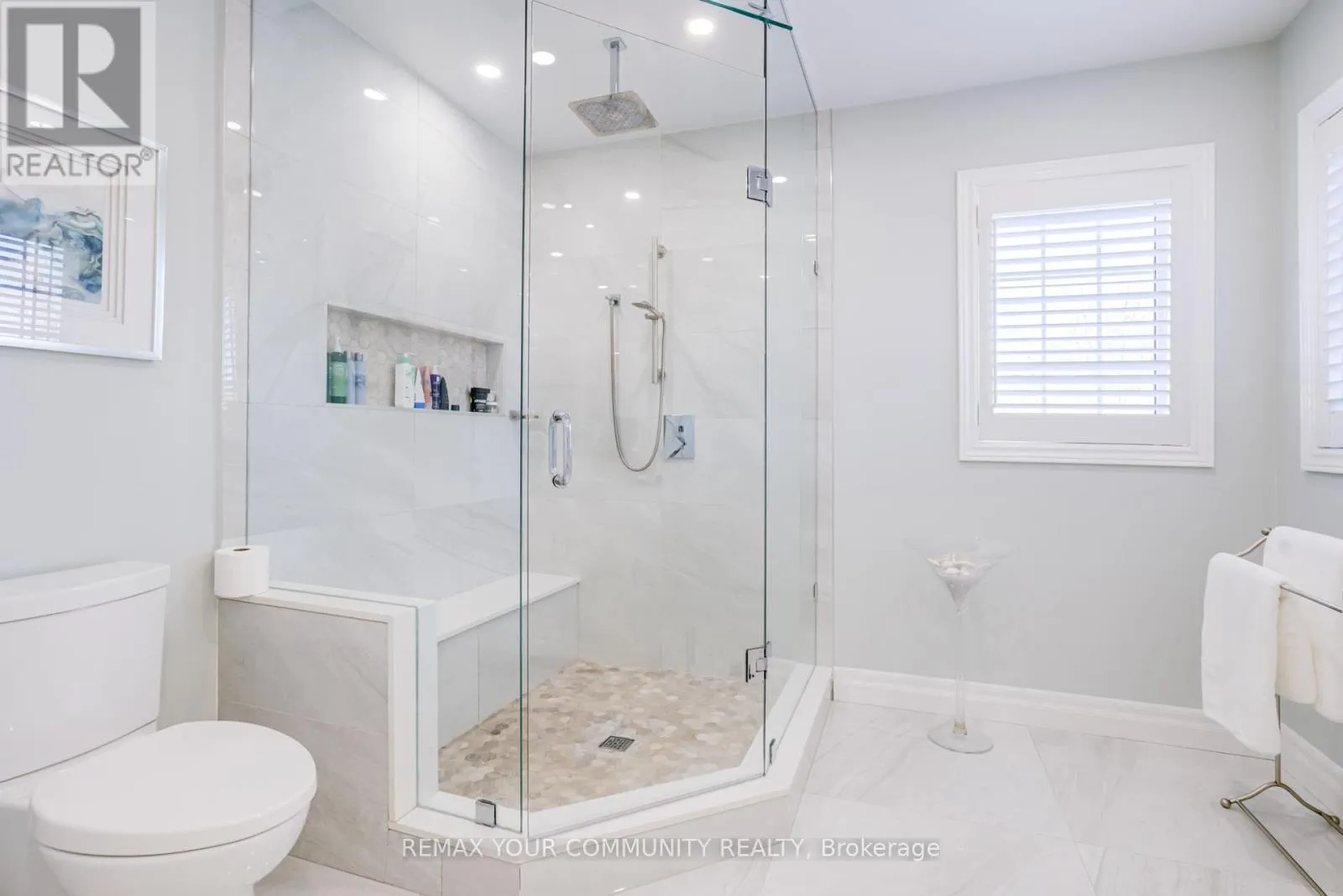 Staines & Steeles 'Golfside Elegance'. Spectacular 4-Bed, 5-Bath family home on a premium corner lot next to golf and green space! Welcome to 406 Staines Rd, a beautifully updated and meticulously maintained residence by the original owners, showcasing exceptional designer finishes and thoughtful upgrades throughout. Enjoy 9-ft ceilings on the main level, elegant crown moulding and trims, hardwood floors on the main and second levels, upgraded light fixtures, a carpet-free interior, and bright, flowing living spaces ideal for everyday living and entertaining. The heart of the home features a gourmet kitchen with quartz countertops, custom cabinetry with glass showcase cabinets, stainless steel appliances, centre island, and an eat-in area open to the family room, highlighted by a gas fireplace with custom millwork feature wall. Separate formal living and dining rooms, each with bay windows, offer timeless elegance and abundant natural light. Upstairs, 4 generous bedrooms and 3 fully upgraded bathrooms await, including a luxurious custom dressing room(converted from the original 5th bedroom) with built-in cabinetry. The finished basement is perfect for entertaining, offering an open-concept recreation area, additional living space, wet bar, and a 3-pc bathroom. Perfectly situated on a sidewalk-free, landscaped corner lot with a 2-car garage, large deck, enclosed porch, garden shed, water softener. Numerous premium upgrades include a newer roof, upgraded security system, doors, lighting, and more. Steps to Cedar Brae Golf Club, with easy access to nearby parks, transit, shopping, schools, and community amenities. A rare opportunity combining style, space, and an unbeatable location-an impressive home in a vibrant community. (id:27476)