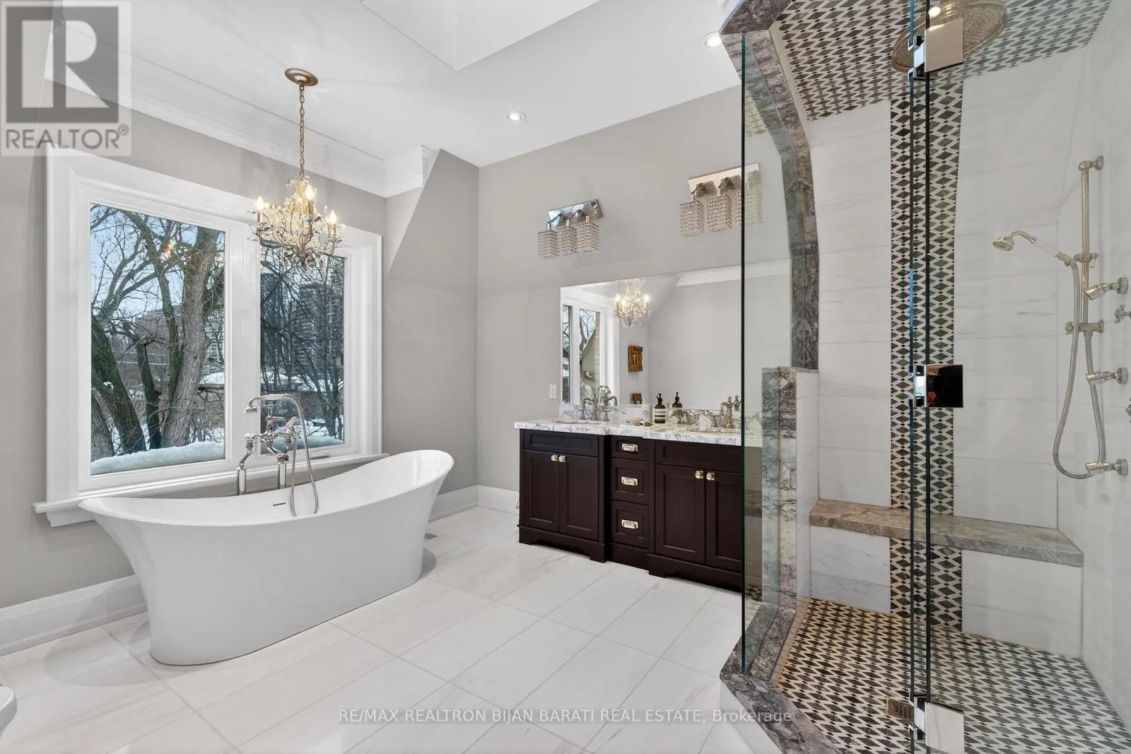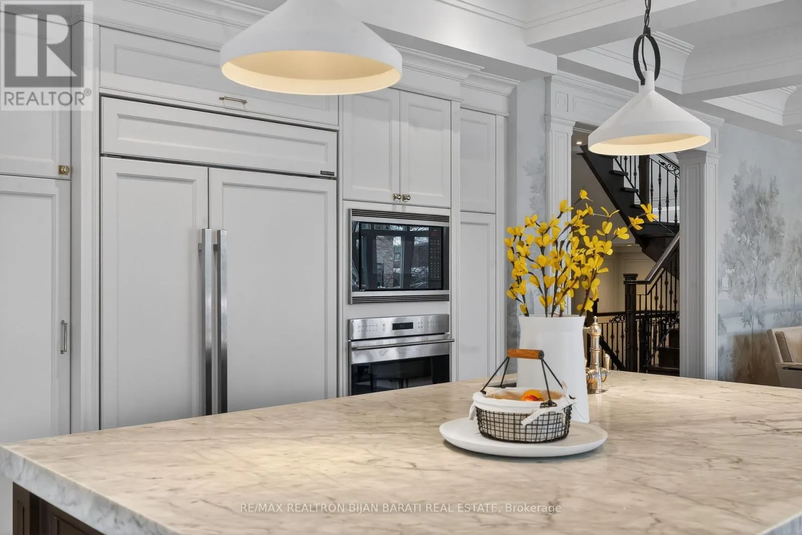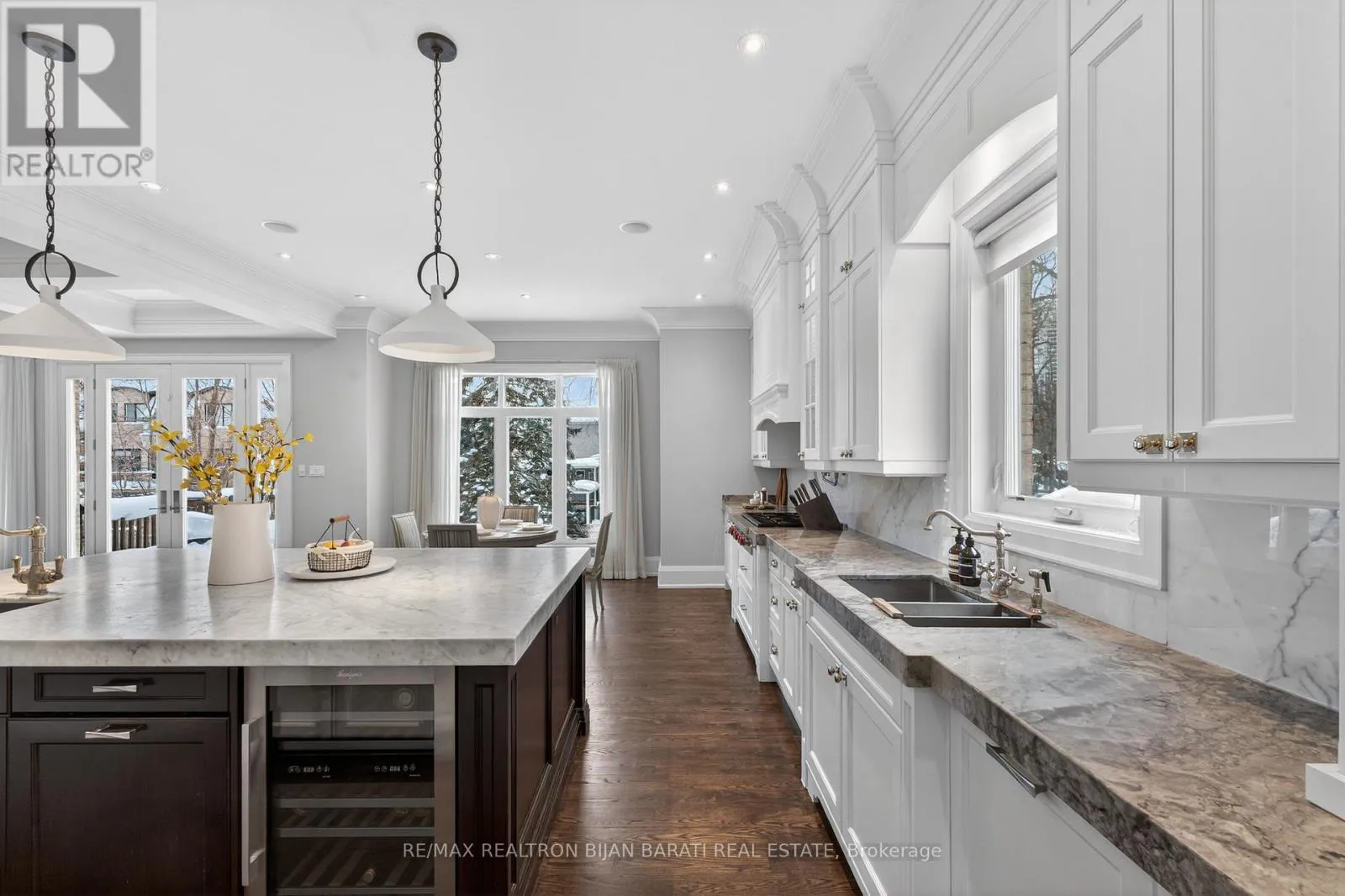 Yonge St/ Sheppard Ave Sophisticated Custom Home with Timeless Design and Over 6,070 Sq.Ft of Classic Elegance of Living Space 4,314 Sq.Ft (In Main&2nd Flr)+ 1,760 S.F(In Finished Basement)! Meticulously Maintained on a Southern Prime Lot (50' x 133')! Unbeatable Location 2 Minutes away from North York City Centre (Subway, Ttc, Loblaws, Restaurants, Cinema, Shops), Earl Haig S.S & Countless Other Amenities! Beautiful Country View of Lee-Lifeson Art Park from Kitchen, Family Rm& Master Bedrm!! Exquisitely Built &Tastefully Designed with a Functional Layout, Offering a Seamless Flow Ideal for Both Everyday Living & Entertaining. Exceptional Finishes Throughout, Including Extensive Use of Hardwood & Marble Flooring, Impressive Architectural Detailing with Coffered Soaring Ceilings Heights: Main Flr:10', 2nd Flr:9', Master:10', Foyer:14.5', Basement Rec Rm:11.5', Bsmnt Bdrms: 10'). Full Panelled Walls(Main Flr&Hallway), Elegant Full Oak Library with Built-In Bookcase. Luxury Mouldings, High End Millwork, and Designer's Wallpaper Accents. Quality Custom Cabinetry& Vanities Enhance the Homes Refined Ambiance. Huge Sun-filled Family Room, Breakfast Area & The Chef-Inspired Kitchen which Features Top-of-the-Line Appliances, Butler's Pantry& Servery, Over Sized Leathered Statuario Calacatta Slab On Countertop of Island, and Marble for other Countertops. Breathtaking Primary Bedrm with a Coffered Cling, Gas Fireplace, His & Hers Walk-In Closets& a Lavish 8-Pc Ensuite Heated Flr. 3Additional Family-Sized Bedrms with Own Ensuits and W/I Closets! Led & Halogen Pot Lights Throughout. The Professionally Finished Walk-Out Basement Includes Radiant Heated Flr in Recreation Rm with A Fantastic Rich Wet Bar, Gas Fireplace, Two Bedrms with their Own Ensuites & Full 2nd Laundry. Cedar Roof &Copper Baywindow & Eavestrough. Custom Marble Floor Foyer with A Centre Medallion, Mahogany Main Door& 3 Guest Closet. Limestone Facade with Copper Accent on Bay Window, Bricks on Side and Back. No Sidewalk in Front (id:27476)