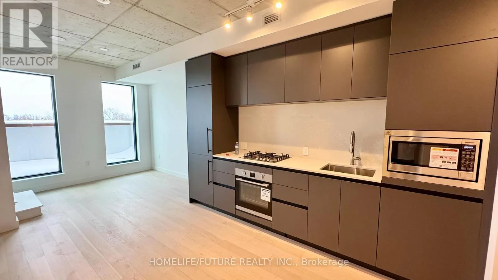Cross Streets: Bayview Ave/Eglinton. ** Directions: SW Corner Of Bayview/Eglinton. A Brand New Architectural Masterpiece In Bayview & Eglinton, Just Steps From The Leaside Lrt Station, Nestled In One Of Toronto's Most Sought-after Neighbourhoods - Leaside Common. This Exceptional Boutique-style Condominium Features A Functional Open-concept Layout With Floor-to-ceiling Windows And A Private Balcony, Flooding The Space With Abundant Natural Light. The Designer Kitchen Is Equipped With Premium built-in Appliances, A Gas Cooktop, And Stone Countertops, Backsplash, And Accents. Thoughtfully Finished With Elegant Hardwood Flooring, Under-cabinet Lighting, And High-quality Modern Finishes Throughout, This Unit Offers Both Style And Functionality. Enjoy Top-tier Amenities: 24-hr Concierge, Fitness Centre, Co-working Lounge, Outdoor Terrace, Pet Spa, And Kids' Play Area. Boasting A Perfect Walking Score And Transit Score, Residents Enjoy Seamless Connectivity, Steps To The Eglinton Crosstown LRT and TTC, Top Schools, Sunnybrook Hospital, Along With Close Proximity To Parks, Bayview's Shops & Cafes And Dining Along Bayview Avenue. Boutique Elegance, Community Spirit, And Urban Convenience All In One. Move-in Ready, This Is Modern Urban Living In One Of Leaside's Most Desirable Communities. A Rare Opportunity - Where Contemporary Design Meets Lifestyle And Convenience! (id:27476)