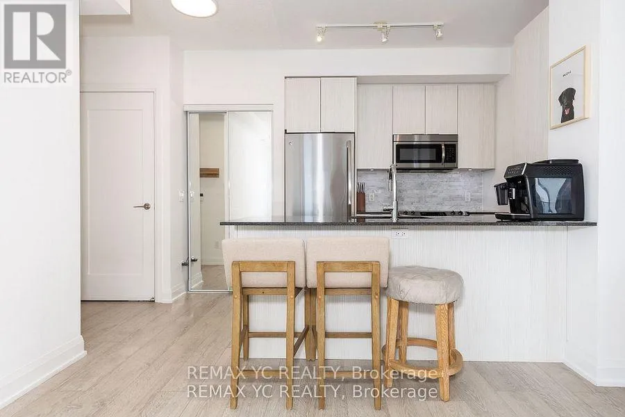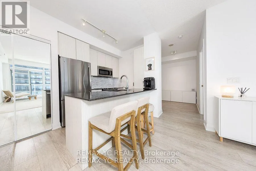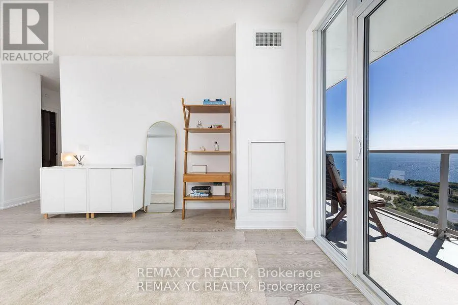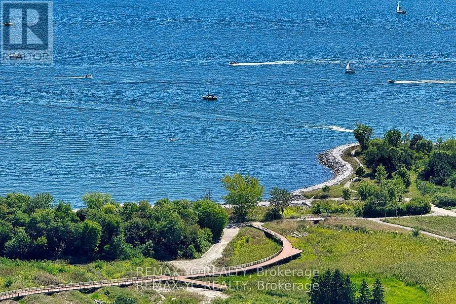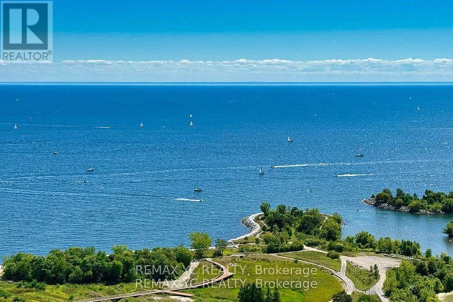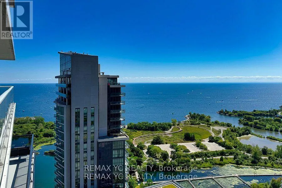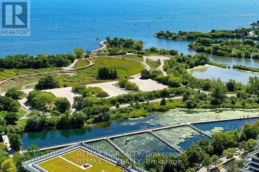 South of Lakeshore & East of Parklawn Welcome to waterfront living in the heart of Mimico! This well-maintained southeast-facing residence offers stunning lake views, 9-foot ceilings, and hardwood flooring throughout. Both the primary bedroom and living room provide direct access to the balcony, allowing abundant natural light to fill the home all day. The thoughtfully designed layout features a separate dining and living area, while the kitchen boasts a large island and a dedicated appliance space. The primary bedroom includes a spacious closet and an oversized window with lake views. The versatile den can be used as a home office or open flex space. Proudly owned and never rented, this home has been meticulously cared for by the original owner. Just steps from Lake Ontario and surrounded by all amenities-grocery stores, banks, shops, and more-with quick access to the Gardiner Expressway. This unit includes one conveniently located parking space (directly in front of the P4 elevator) and one private locker. Move-in ready and waiting for you! (id:27476)