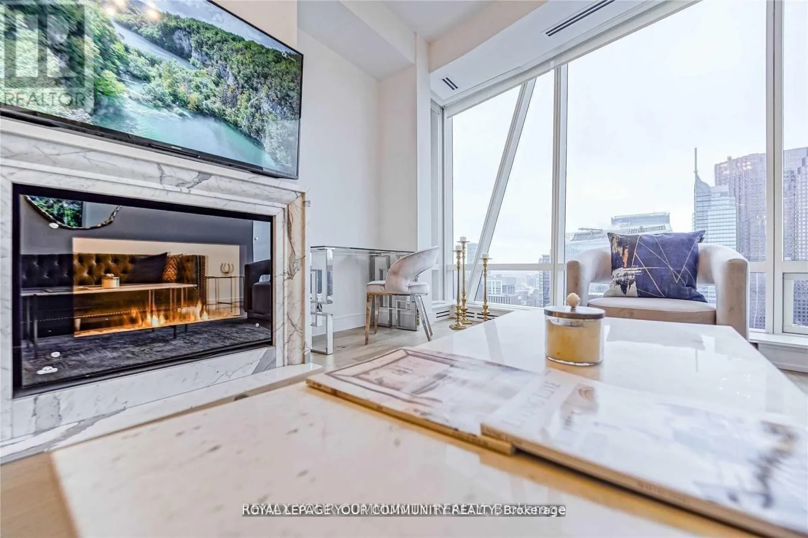 University Ave & Adelaide st Welcome to Shangri-La Hotel Residences, Private Estate suite(Exquisite 50th Floor & Above),Experience breathtaking Views Of Downtown Toronto's Skyline & the Lake Ontario, 10'Ft.Ceilings and a spacious/open concept layout. This residence has been tastefully renovated with high Quality finishes through out.(wood Flooring, Base boards, Paint, custom Lighting. etc.)The modern Open Concept Kitchen features Granite Tops, Breakfast bar & top of the line "Miele" Appliance. The elegant bathroom is finished with Marble walls and floors .Enjoy the added comfort of Automatic Window Shades and Fireplace. Free Valet Parking Included, Guest Parking, Hotel Room Service/ House Keeping , Use of Hotel Amenities: Spa, Gym, Indoor Pool, Hot Tub, Steam Rm. Near Theaters, Restaurants, Shopping. Spacious Floor Plan. New hallway carpets & wallpapers , electric fireplace, marble bathroom walls & floors. Large storage locker behind the Parking spot. This a great value! (id:27476)
