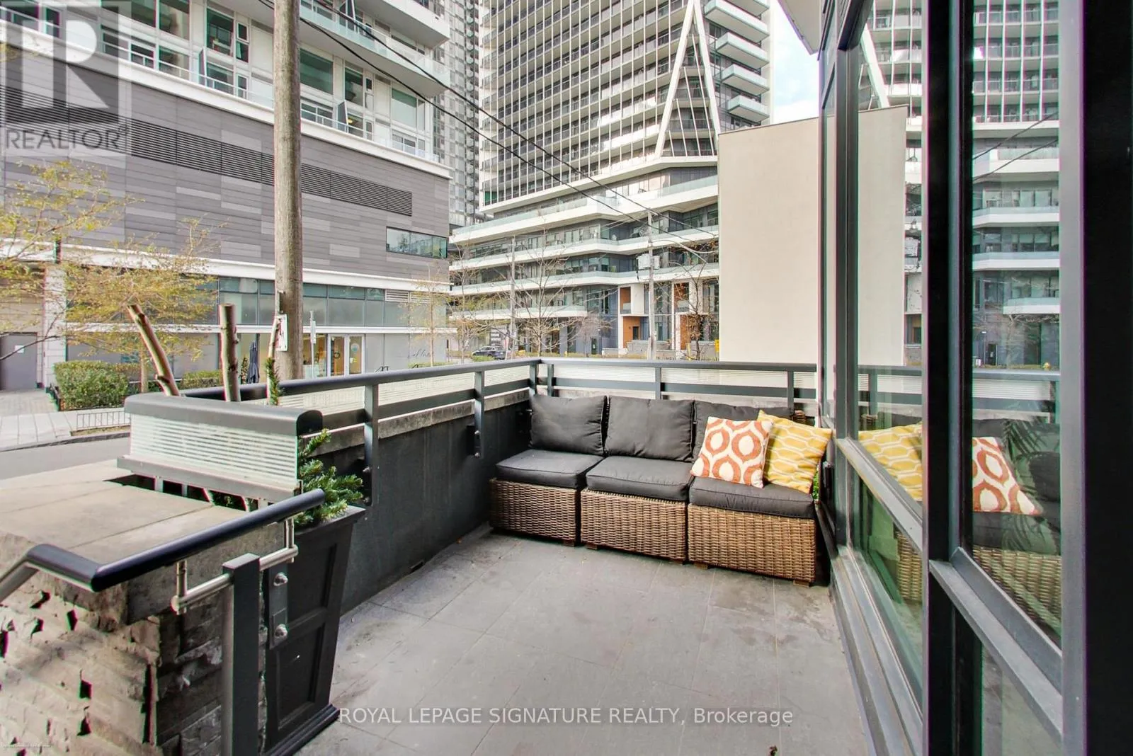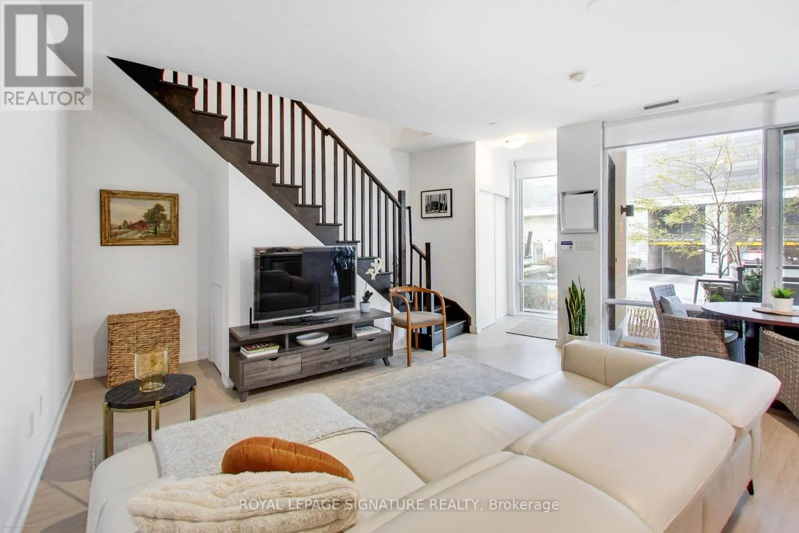 Cross Streets: Strachan/East Liberty. ** Directions: Use Waze. Stunning 2-storey, 2-bedroom plus den, 2-bath townhouse-style condo offering nearly 1,300sqft of bright, modern living in the heart of Liberty Village. This rare multi-level layout features a private street-level entrance, a spacious front terrace ideal for outdoor dining, and an additional upper-level balcony off the loft. The open-concept main floor boasts soaring ~10ft ceilings, wide-plank flooring, floor-to-ceiling windows, and a sleek contemporary kitchen with full-size stainless steel appliances, quartz counters, subway tile backsplash, and excellent storage. The second level includes an expansive open loft-perfect for a home office-plus two generous split-plan bedrooms. The primary suite impresses with floor-to-ceiling windows, a walk-in closet and second full closet, and easy access to a beautifully finished 4-piece bathroom with deep soaker tub. The second bedroom, enclosed with sliding glass doors, offers great privacy and storage. A second modern bathroom features a glass-enclosed walk-in shower. Full-size in-suite laundry, upgraded flooring, modern lighting, and abundant natural light throughout. 30 Ordnance Street is uniquely tucked beside acres of connected parkland, giving residents a rare sense of openness and calm while still being just steps from the vibrant heart of Liberty Village. It feels like its own private enclave, close to everything, yet pleasantly set apart. With direct access to some of the city's best walking and biking paths, it's ideal for anyone who values nature and lifestyle in equal measure. Great walking and bike path access. Steps to parks, Garrison Crossing, King West, groceries, cafes, TTC, GO Transit, and the waterfront. A rare opportunity to own a stylish multi-level home in one of Toronto's most vibrant neighbourhoods. A 91 Walk Score means 30 Ordnance is a walker's paradise where daily errands do not require a car. (id:27476)