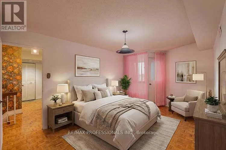 Burnhamthorpe/ Mill Rd. Rarely offered in prestigious "The Masters" condo complex. Opportunity knocks to own one of the largest units in the complex boasting approx. 1800 sq ft with huge potential to make your own. This 3 bdrm + 3 wshrm unit overlooks the Markland Wood Golf Course with fabulous views of the beautifully landscaped 11 acres of property with breathtaking sunsets. Large bdrm with walk-in closet and 4 piece ensuite, ensuite locker for excellent storage. This unit could be fabulous with your personal touch. "The Masters" are currently undergoing renovations to the buildings' corridors, lobbies and doors to the individual units. Please see the renderings on display in the lobby. The unit boasts large principal rooms with a huge balcony off the living room offering tremendous light. Includes underground 2 parking spots (tandem) which are always sought after. Enjoy the resort-style living. The Masters are renowned for their amenities which include indoor + outdoor pools, walking trails, three outdoor tennis courts, squash court, exercise room, newly renovated club house, party room and sundeck. Minutes to airport, highway and Shopping. Walking distance to TTC, and sought after schools. Photos have been virtually staged. (id:27476)