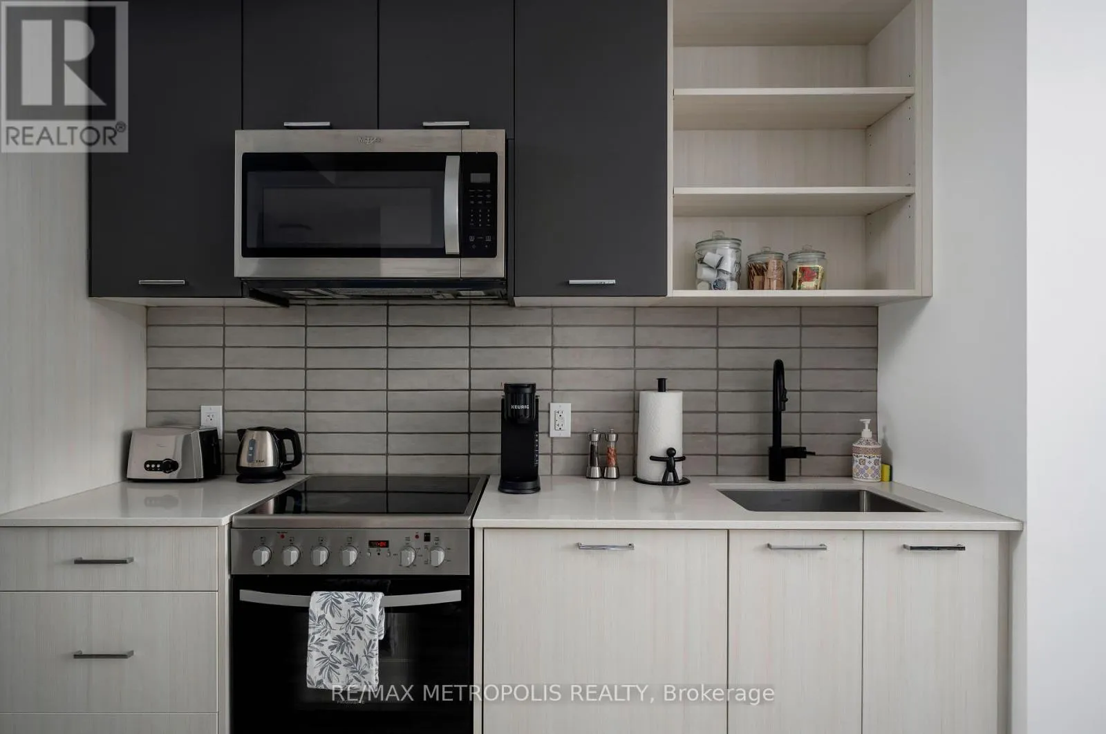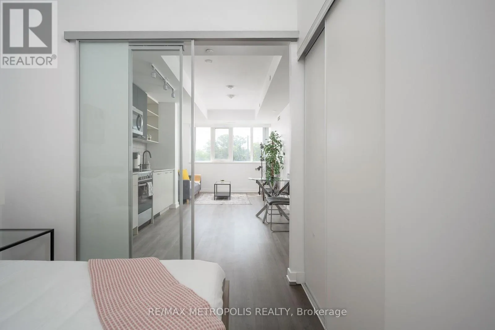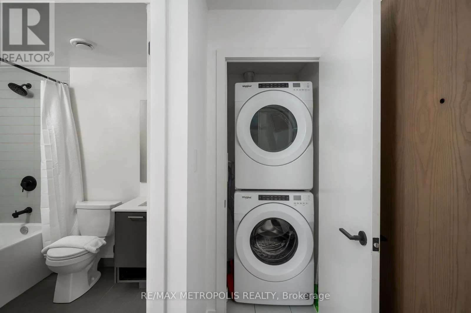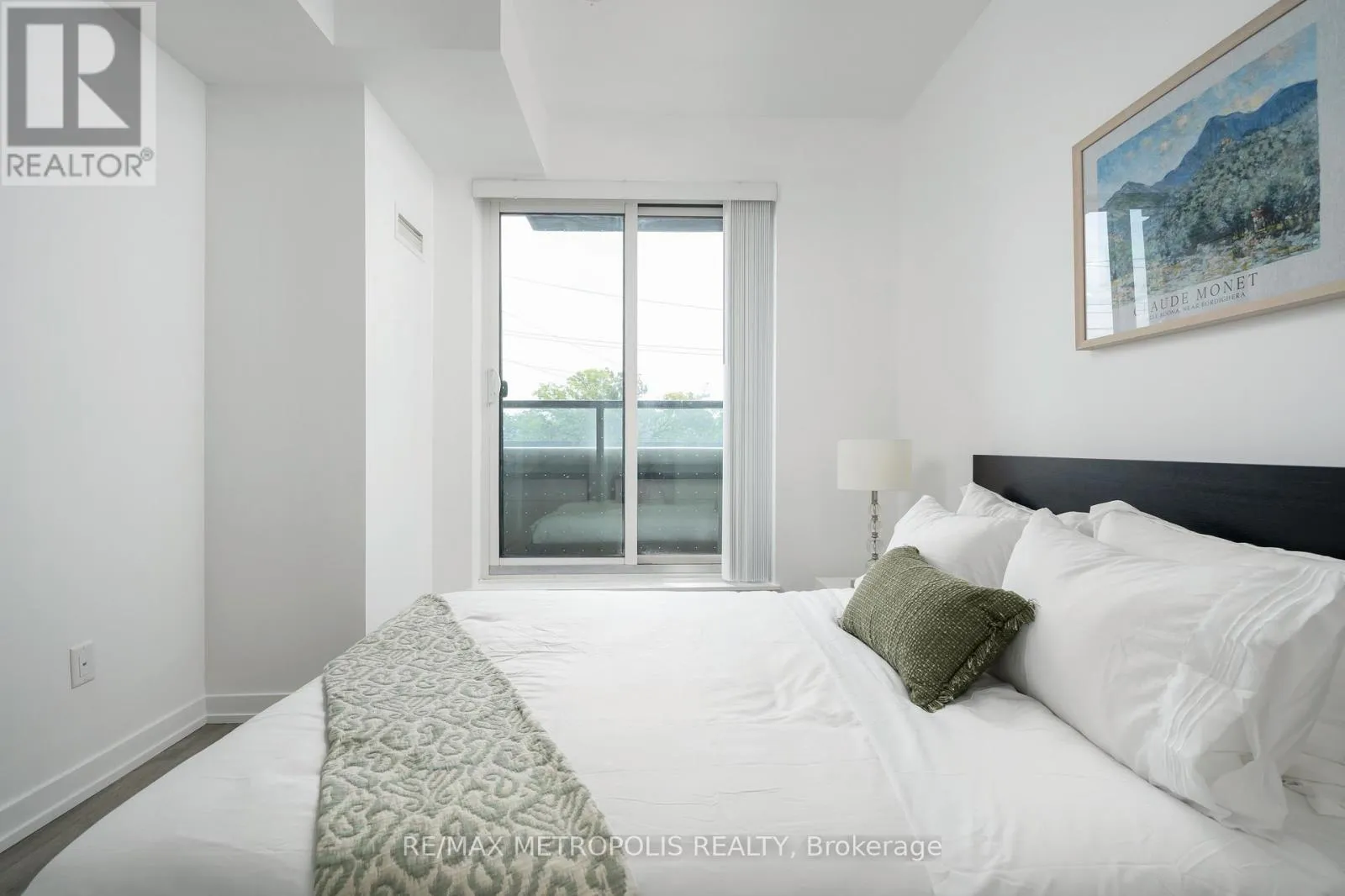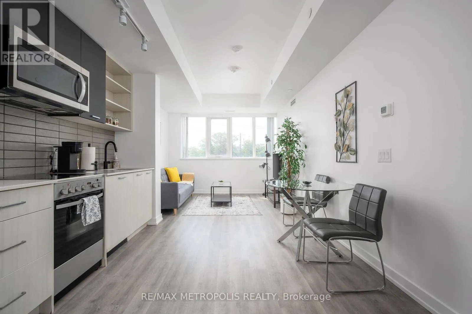 ST CLAIR W / WESTON RD (Open house every Sat/Sun 2-4pm by appointment only.) Welcome to Stockyard Condos by Marlin Spring Developments nestled in the heart of The Junction a prestigious Toronto neighbourhood. Located on the 3rd floor with a South exposure, this spacious 2 bedroom suite offers 607 sq ft of living space, tons of natural light, modern finishes, laminate flooring throughout, ensuite laundry and an open concept balcony to unobstructed city views. The inviting open-concept living and dining areas are perfect for relaxation and entertainment. Enjoy the chef's kitchen that's equipped with contemporary stainless steel appliances, quartz countertops, and a stylish backsplash. The spacious bedroom features a sizeable closet and a walk out to balcony. The second bedroom features sliding doors and convenient closet space. The unit comes with 1 parking space and 1 locker. Building amenities include a 24-hr concierge, gym/exercise room, party/meeting room, outdoor terrace with BBQ area, visitors parking, electric car charging stations, games room and more. Conveniently located near TTC public transit, Stockyards Village, grocery & shopping plazas, restaurants, cafes, parks, banks & other local area amenities. Building allows short-term rentals. Vendor Take Back (VTB) is available. (id:27476)