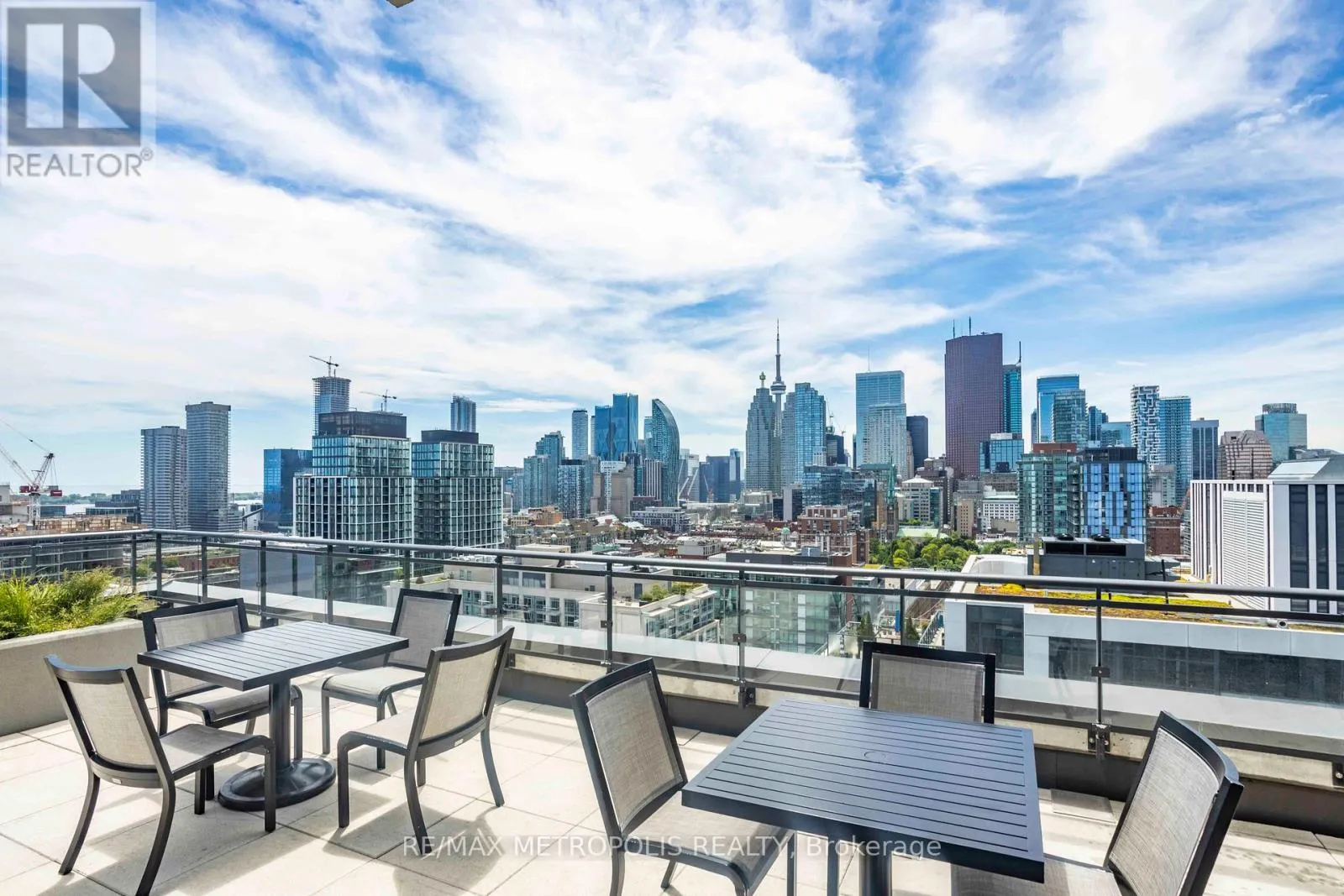 Adelaide St E/Sherbourne St Open House Sat/Sun 2-4 PM (By Appointment).Welcome to this bright and modern 1-bedroom suite at Axiom Condos by Greenpark Homes, ideally located in the heart of downtown Toronto. Situated on the 16th floor, the unit offers a north-facing exposure with city views and excellent natural light. Enjoy an oversized 115 sq ft balcony-perfect for taking in the downtown skyline.The modern kitchen features stainless steel appliances, quartz countertops, and a stylish backsplash, flowing seamlessly into spacious living and dining areas ideal for everyday living and entertaining. The bedroom includes a large closet, floor-to-ceiling window, and a convenient double-entry ensuite.Additional highlights include 9-ft ceilings, engineered hardwood flooring throughout, ensuite laundry, ample storage, and a functional open-concept layout with 609 sq ft of interior living space. One locker is included.Building amenities include 24-hour concierge, gym, sauna, yoga room, party and meeting rooms, outdoor terrace, theatre and games rooms, pet spa, guest suites, and more. Conveniently located near the DVP and Gardiner, with easy access to public transit, St. Lawrence Market, the Financial District, and the Distillery District. (id:27476)