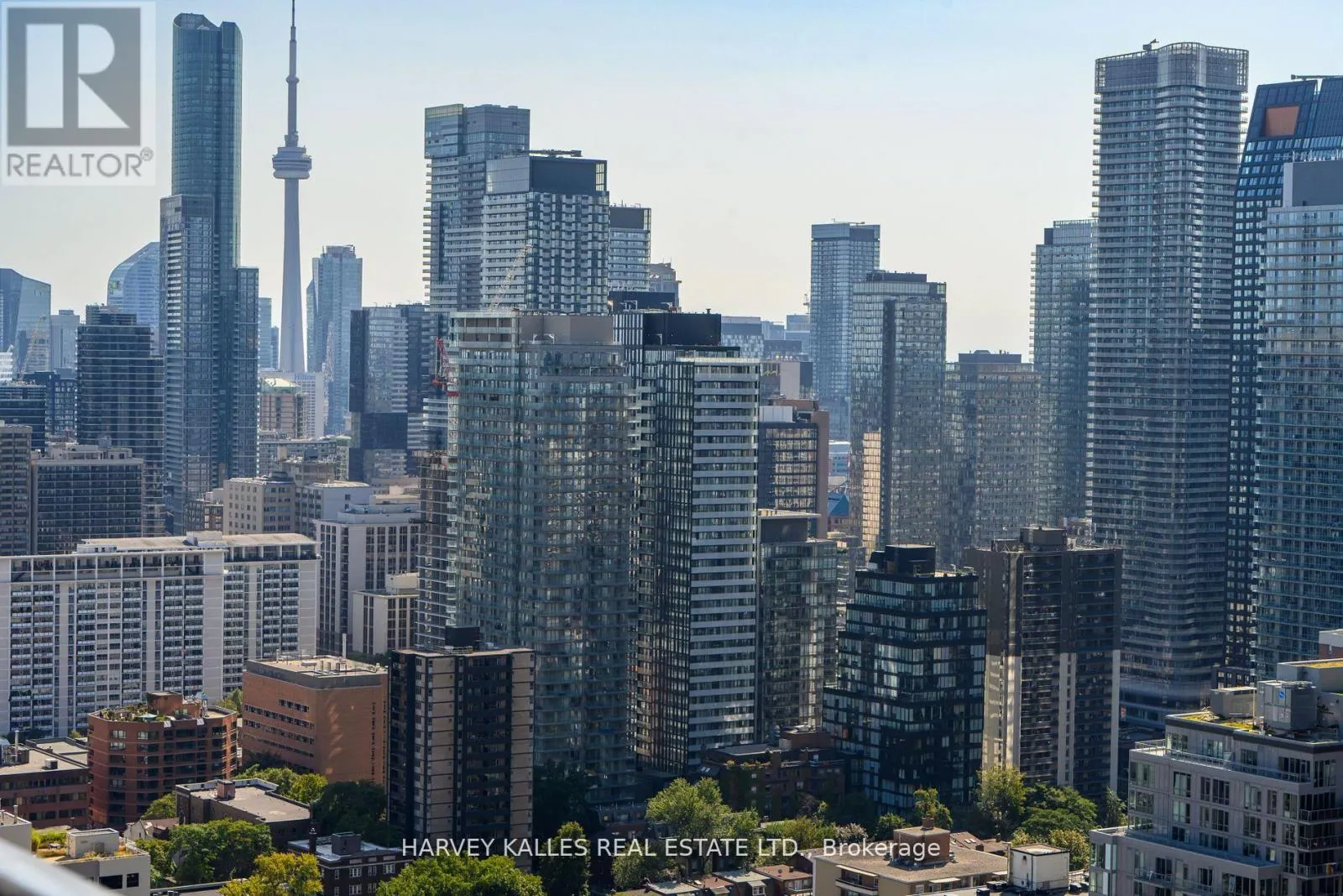 Bloor St E. & Ted Rogers Way Set within the iconic Couture Condominium is a rarely available 2-bedroom spectacular corner residence that offers a rare sense of calm and openness in the heart of Midtown. Sweeping northwest views of Toronto's skyline and the tranquil green canopy beyond provide a stunning daily backdrop, while 9-foot ceilings and dramatic floor-to-ceiling windows flood the home with natural light. As day turns to evening, the sky comes alive with golden sunsets and shimmering city lights. Inside, the thoughtfully designed open-concept floorplan feels airy, refined, and effortlessly livable, equally suited to quiet nights at home or lively gatherings with friends. The sleek kitchen, finished with stainless steel appliances, granite counters, and contemporary cabinetry, anchors the space and flows seamlessly into the inviting living and dining areas. Both bedrooms are generously proportioned, offering flexibility for guests, a home office, or a private retreat. A spa-inspired bath and in-suite laundry add comfort and everyday convenience. Steps from Yonge & Bloor, with fine dining, boutique shopping, transit, easy access to the DVP, and cultural landmarks at your doorstep, this residence balances vibrant city living with a peaceful sense of escape. With world-class amenities including a 24-hour concierge, fitness centre, indoor pool, media room, guest suites, elegant party lounge and visitor parking, Suite 3609 offers a lifestyle defined by views, design, and elevated urban living. (id:27476)