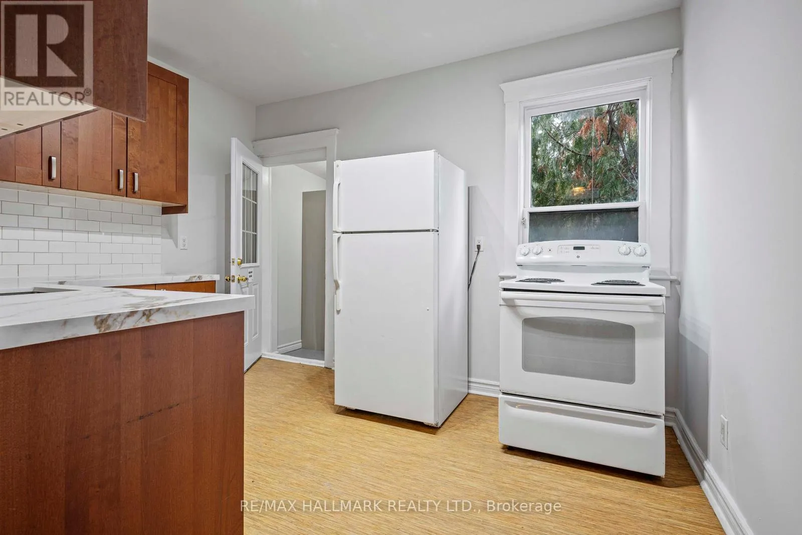 Cross Streets: Queen Street East & Pape Avenue. ** Directions: South Of Queen, West Of Pape. Welcome to this charming bi-level 1-bedroom suite in the heart of Leslieville, offering space, character, and exceptional outdoor living. Perfect for a professional or couple, this well-laid-out home spans the main and lower levels of a well-maintained property. The main floor living area features original hardwood floors and a decorative (non-working) fireplace, creating a warm and inviting atmosphere. A renovated kitchen with porcelain countertops and three appliances makes cooking and entertaining easy. The lower level offers an oversized primary bedroom with excellent storage, in-unit laundry, and a peaceful retreat from the day. Step outside to a generous 10' x 15' private deck-ideal for morning coffee, summer dinners, or relaxed evenings with friends. All utilities are included, and parking and additional storage add everyday convenience. Located just steps from Queen St. E., transit, parks, cafés, and some of Leslieville's most loved restaurants, this is a fantastic opportunity to enjoy one of Toronto's most vibrant neighbourhoods. Offered at $2,350/month all-inclusive. (id:27476)