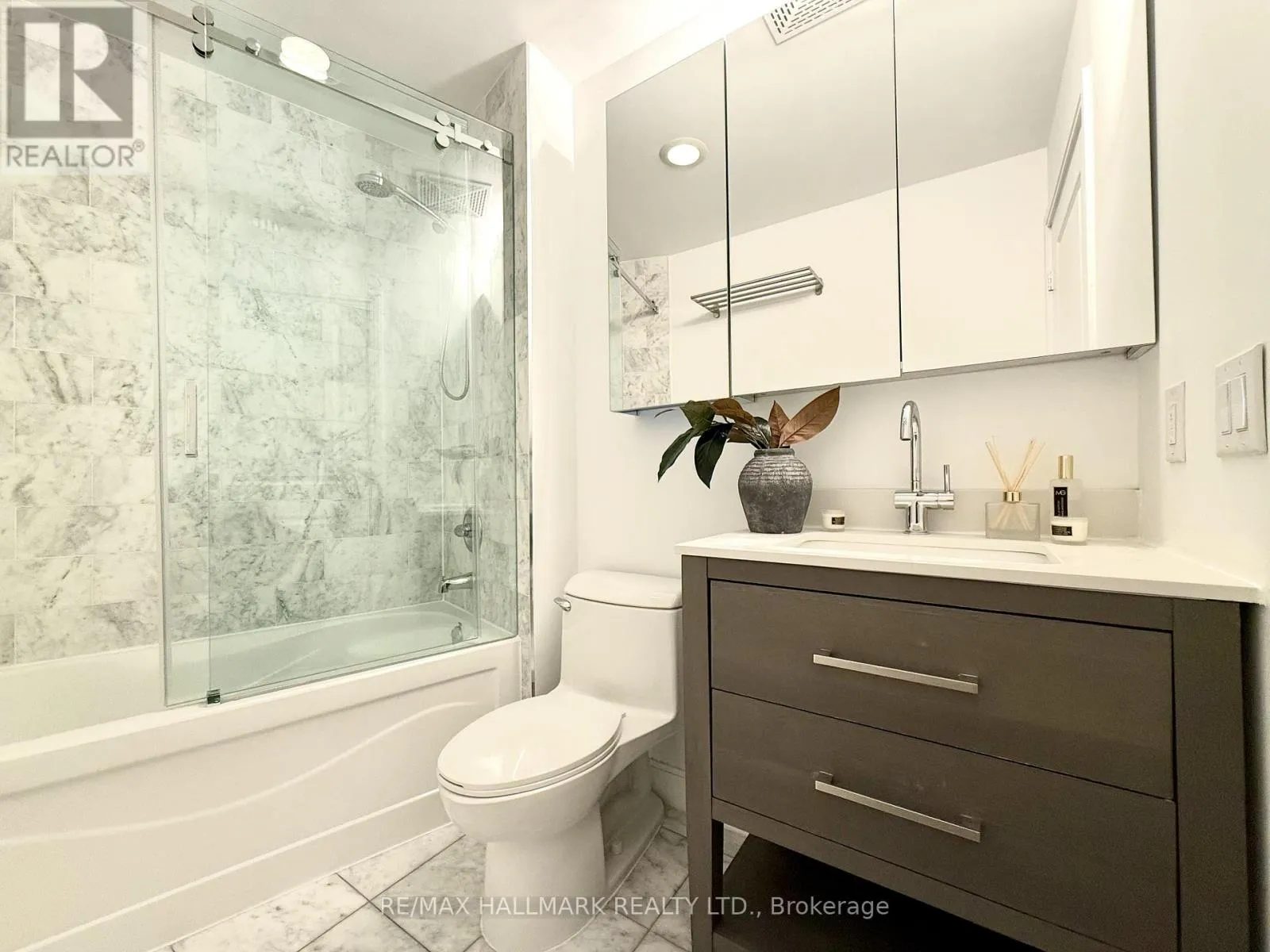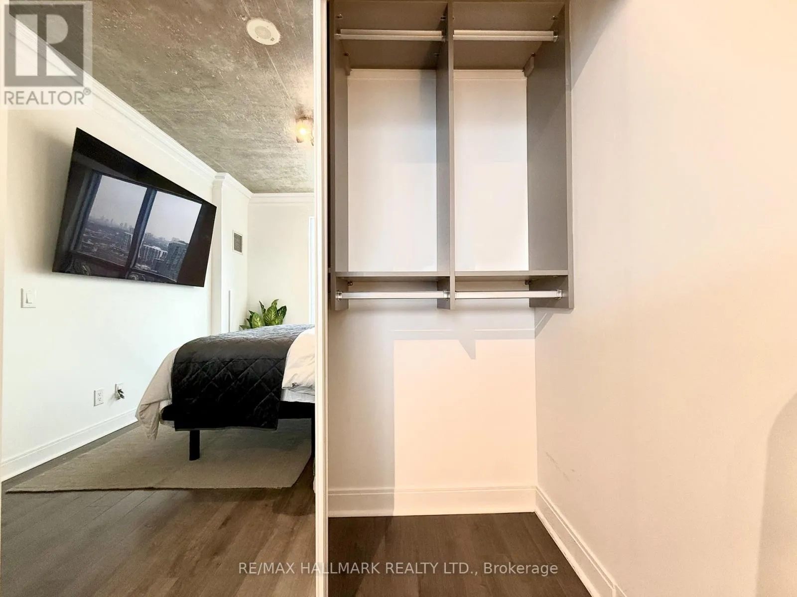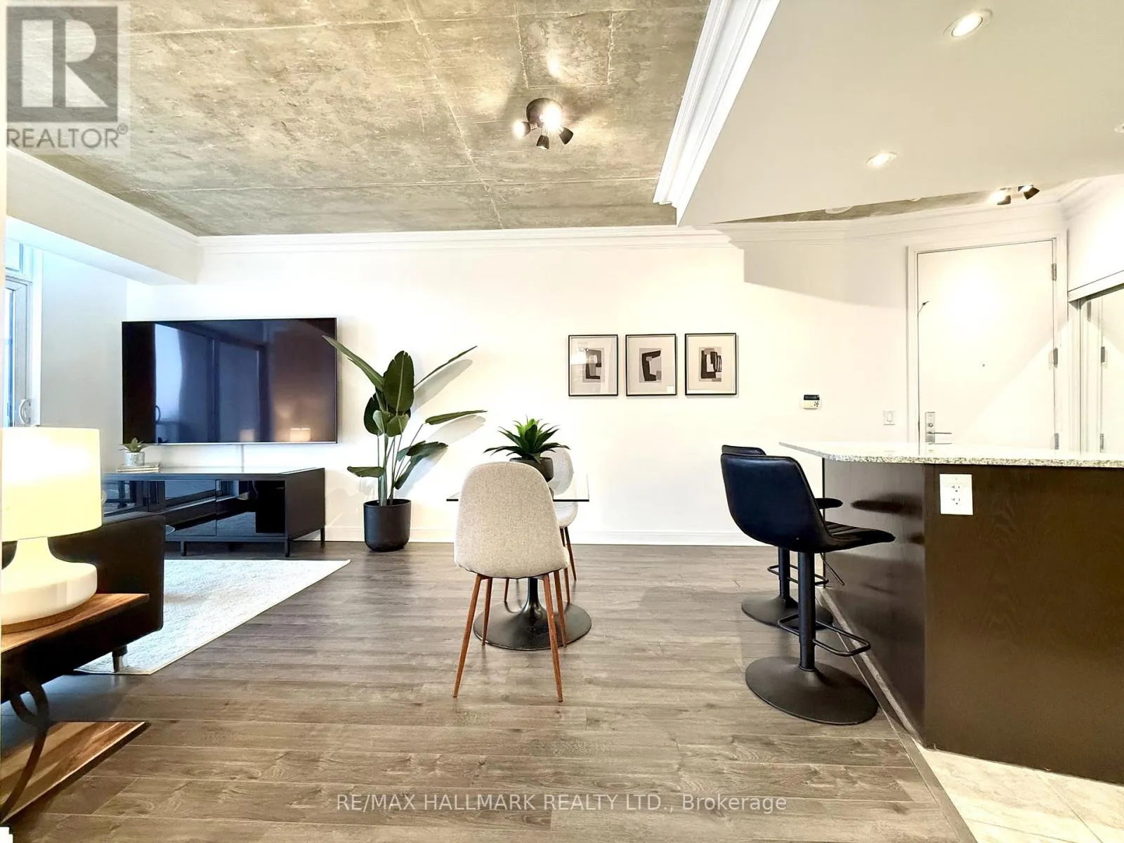 Cross Streets: Yonge/Front. ** Directions: https://share.google/ZOSGWDcMB87iiDPtP. Live on The Esplanade in this bright, high floor, corner 1 bedroom suite offering 615 sq ft of well designed space with beautiful east views of the city and lake. Featuring 9 ft smooth exposed concrete ceilings that add height and character, giving the space a subtle loft inspired feel, along with dark espresso hardwood flooring throughout the living and dining areas. The functional kitchen is equipped with stainless steel appliances, granite countertops, an undermount sink, and a center island that doubles as a breakfast bar. The spacious bedroom is filled with natural light and offers a large closet with California Closet organizers. Marble bathroom, in suite laundry, and thoughtful storage including a custom coat California Closet organizer add to the comfort of the space. All appliances were recently purchased in 2025. This suite is being offered fully furnished with two large LG TVs (75" & 85"), couch, motorized king bed, and an entertainment unit included. Just bring your pillow and sheets. Option to assume a premium rental parking spot located directly by the garage door and close to the elevators for $200 per month, prepaid until June, giving you time to decide if you need it. Located in the iconic London on the Esplanade, tucked between Front Street and the waterfront, steps to the Financial District, St. Lawrence Market, Union Station, The PATH, Sugar Beach, Metro, LCBO, restaurants, shopping, and transit. Walk Score 100. Building amenities include 24 hour concierge, rooftop outdoor pool, full fitness center and spa, party room, theatre room, library, and guest suites. (id:27476)