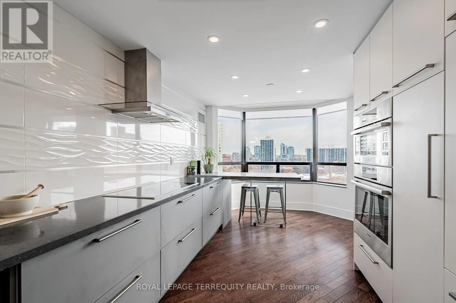 JARVIS ST/DUNDAS ST An exceptional downtown residence offering space, privacy, and finish rarely found in condo living. Welcome to Jarvis Gardens: a boutique building, known for long-term ownership and limited turnover in the heart of the city, featuring a fully renovated 2-bedroom, 2-bath home designed for long-term comfort and everyday ease.This suite offers 1,300+sq. ft. of interior space with a split-bedroom layout providing true separation of living areas. The open-concept living and dining space is filled with natural light and opens to a large southeast-facing balcony with open city views, ideal for entertaining in luxury or quiet evenings at home.Engineered hardwood flooring runs throughout, complemented by heated tile flooring at the entrance, and clean, contemporary finishes. The kitchen features quartz countertops, premium integrated appliances, a breakfast bar, and a custom laundry area offering quartz counter tops, additional prep space, large sink and storage, a highly functional upgrade.The primary bedroom includes balcony access, custom integrated closets, and a renovated ensuite with heated floors, double vanity, and oversized glass shower with multi-jet shower heads. The second bedroom is generously sized and located beside a full bathroom, suitable for guests, a roommate, or home office use.Jarvis Gardens is a quiet, well-managed pet friendly building with only 44 suites and just 4 units per floor. Amenities include rooftop terrace with garden plots, gym and yoga studio, sauna, party room with walk-out patio and BBQ, and on-site superintendent. Parking and large ensuite storage included.Steps to St. Lawrence Market, Financial District, TTC, parks, cafés, and daily essentials. This is downtown living without compromise, offering space, quality, and a layout designed to grow with you. (id:27476)