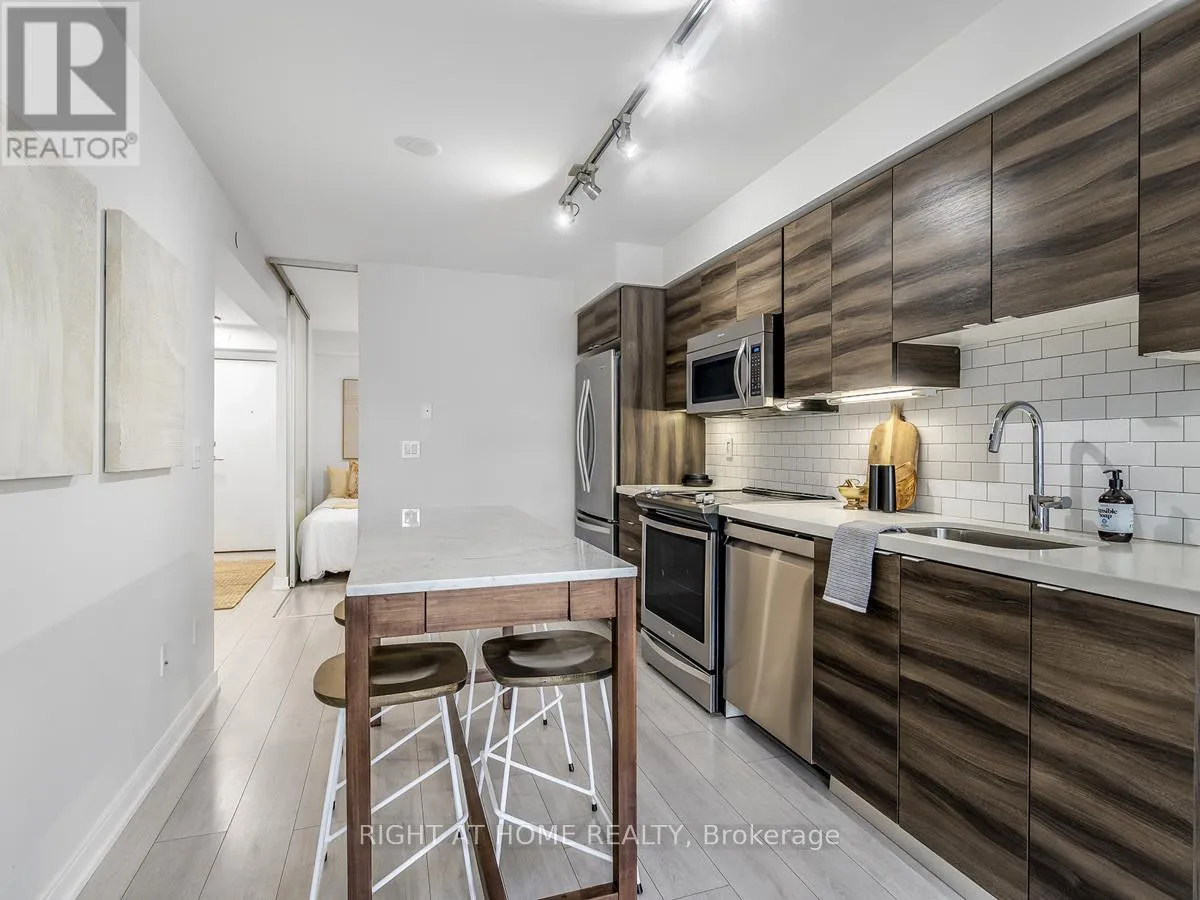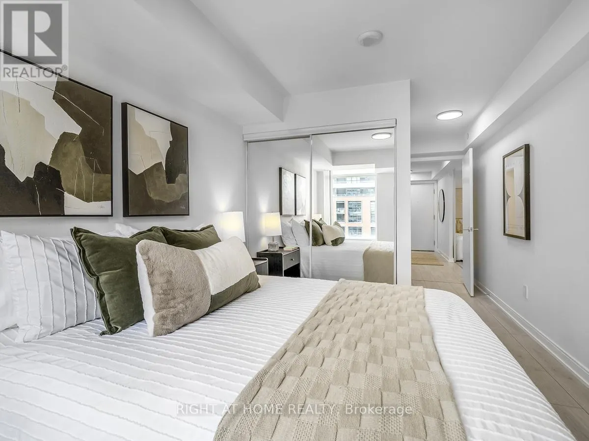 Bathurst/Adelaide W Love the energy of King West but want a quiet escape? This stunning 1+den, 2-bath condo in a well-managed building with low maintenance fees offers the best of both worlds. Tucked into a peaceful pocket with park views, yet steps to King Street's buzz, it features a smart, no-wasted-space layout perfect for entertaining. Enjoy an open-concept living area with quartz counters and full-size stainless steel appliances, a spacious primary bedroom with ensuite, and a fully enclosed den ideal as a second bedroom or home office. Thoughtful upgrades include a full-size washer/dryer, custom closet organizers, mirrored closet doors, updated lighting (2023), and a newer dishwasher (2024). Steps to the future Ontario Line, top restaurants, cafes, shops, Trinity Bellwoods, the waterfront, and more. Incredible amenities include a pool, gym, party rooms, media room, saunas, steam room, and rooftop terrace with BBQ. Parking & locker included. A true King West lifestyle opportunity. (id:27476)