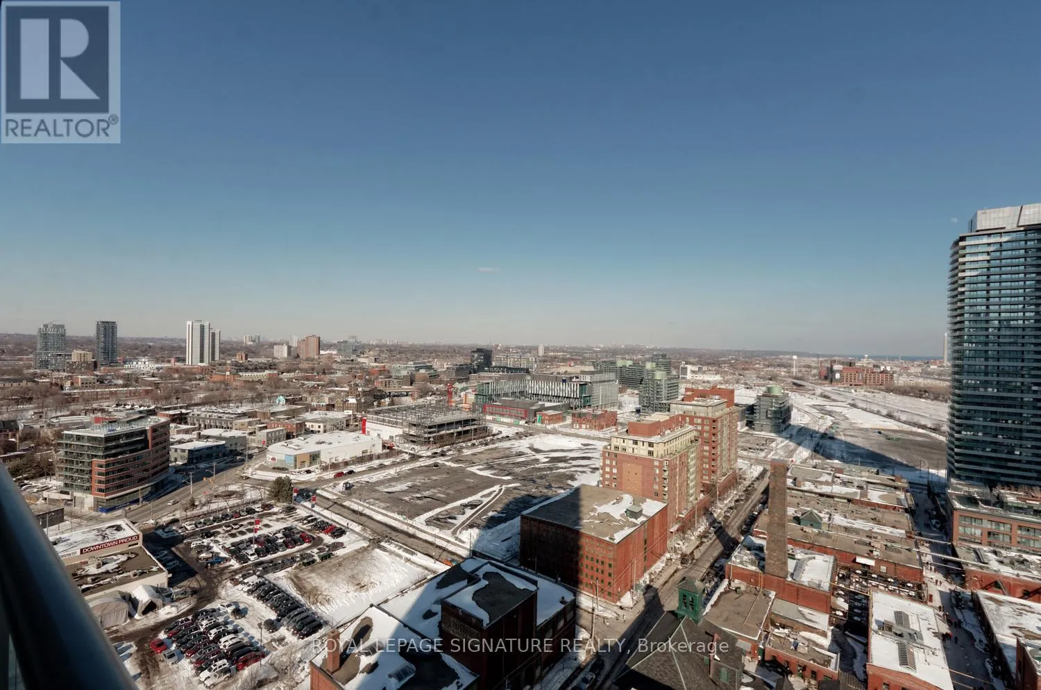 Cross Streets: Parliament & Mill. ** Directions: Note: Mill St is a one-way street running east to west. Welcome to this bright and spacious 2-bedroom, 2-bathroom corner suite in the heart of the Distillery District! Perched on the 25th floor, this sun-filled unit offers sweeping views of Lake Ontario and the historic cobblestone streets below. The open-concept living space features floor-to-ceiling windows, a modern kitchen with granite counters, and two walkouts to a private balcony where you can take in the city skyline. With an ideal split-bedroom layout and contemporary finishes throughout, this condo combines comfort and style in one of Toronto's most vibrant neighbourhoods. (id:27476)