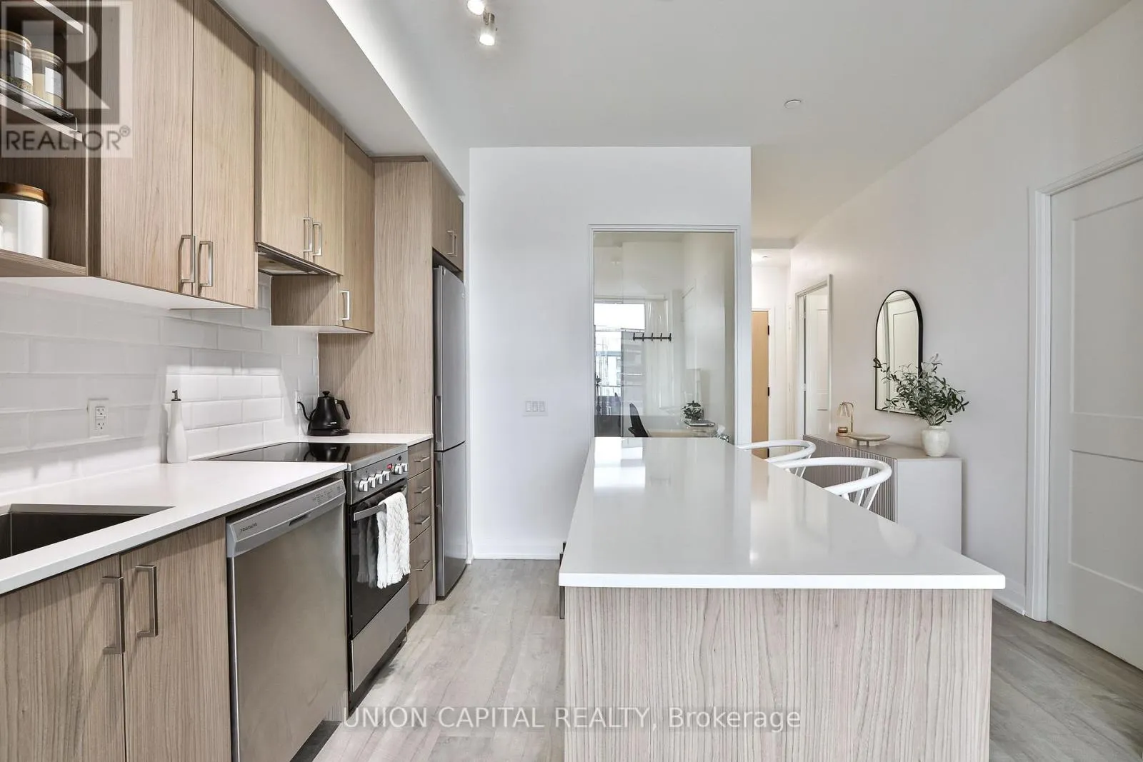 KEELE ST. IN DOWNSVIEW PARK One of the largest suites in Mattamy's luxury residence at Downsview Park, this beautifully upgraded home offers an exceptional blend of space, privacy, and refined design. Encompassing872 sq. ft. including balcony, the suite is perfectly positioned at an ideal height-high enough for privacy, yet low enough to feel immersed in the lush landscaping and mature trees of the thoughtfully designed courtyard. The oversized private balcony delivers a rare backyard-like feel, making it an ideal extension of your living space for relaxing, entertaining, or unwinding in a tranquil setting. Over $15,000 in curated upgrades were invested where they matter most, including enhanced doors and trim, upgraded bathrooms, and a premium kitchen package. The gourmet kitchen is anchored by a centre island, offering both style and functionality-perfect for cooking, hosting, or casual dining. This stunning 2-bedroom, 2-bathroom suite features a highly practical and efficient layout, ideal for modern living. An added bonus is the extra-large parking space, a rare offering that comfortably fits two vehicles -- an exceptional convenience in condo living. Residents enjoy access to outstanding amenities, including a state-of-the-art fitness centre with yoga studio, indoor/outdoor party room, BBQ area, pet wash station, and 24-hour concierge service. All of this is set within one of Toronto's most vibrant green spaces, steps from Downsview Park. A rare opportunity to own a spacious, thoughtfully upgraded suite with premium features in a truly exceptional building (id:27476)