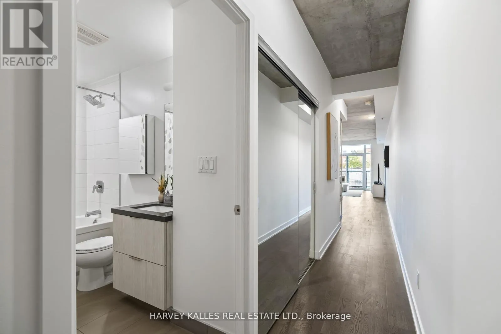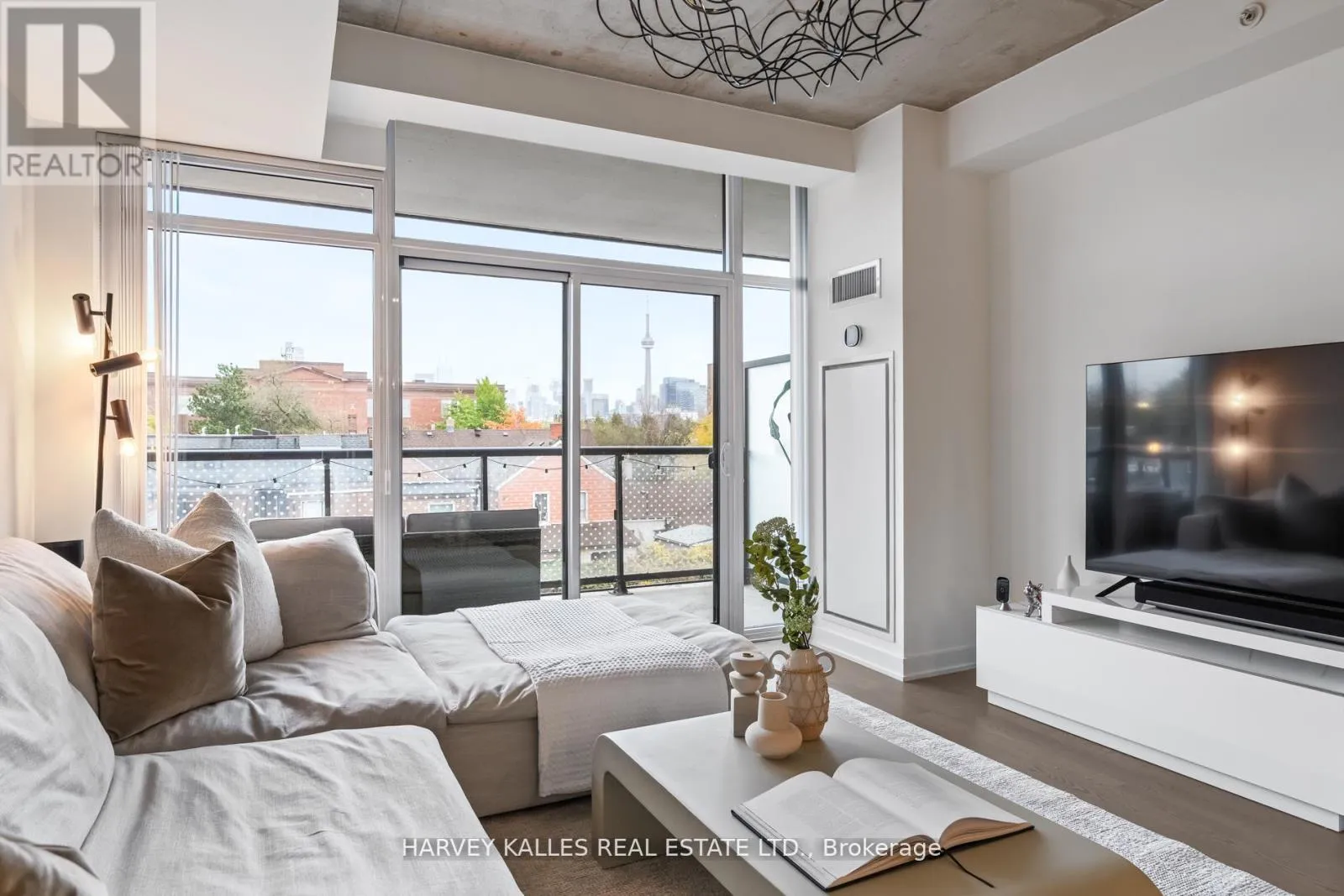 Queen St W/Ossington Ave 109 Ossington Avenue #318 - Boutique Loft Living at 109OZWelcome to 109OZ Lofts, where design, function, and lifestyle intersect in one of Toronto's most dynamic neighbourhoods. Suite #318 is abeautifully designed and functional one-bedroom + den loft offering 765 sq ft of refined living. The thoughtful layout maximizes space and flow - the den serves perfectly as a home office, nursery, or creative flex room, while the open living area is filled with natural light and framed by tranquil views of the surrounding treetops and neighbourhood skyline, including the CN Tower. Inside, you'll find high ceilings, a spa-inspired 4-piece bath, and elevated modern finishes that create a calm, stylish retreat from city life. Set within the renowned 109OZ, a rare boutique building celebrated for its design-forward architecture and intimate community, this residence also includes one parking space and a locker for added convenience. With Ossington Avenue right outside your door, you're steps from Toronto's best restaurants, cozy cafés, nightlife, and independent boutiques. Experience the city's most celebrated food and culture scene - then retreat peacefully to your boutique, serene home above it all. A residence that embodies style, comfort, and connection - bright, boutique, and distinctly Ossington. (id:27476)