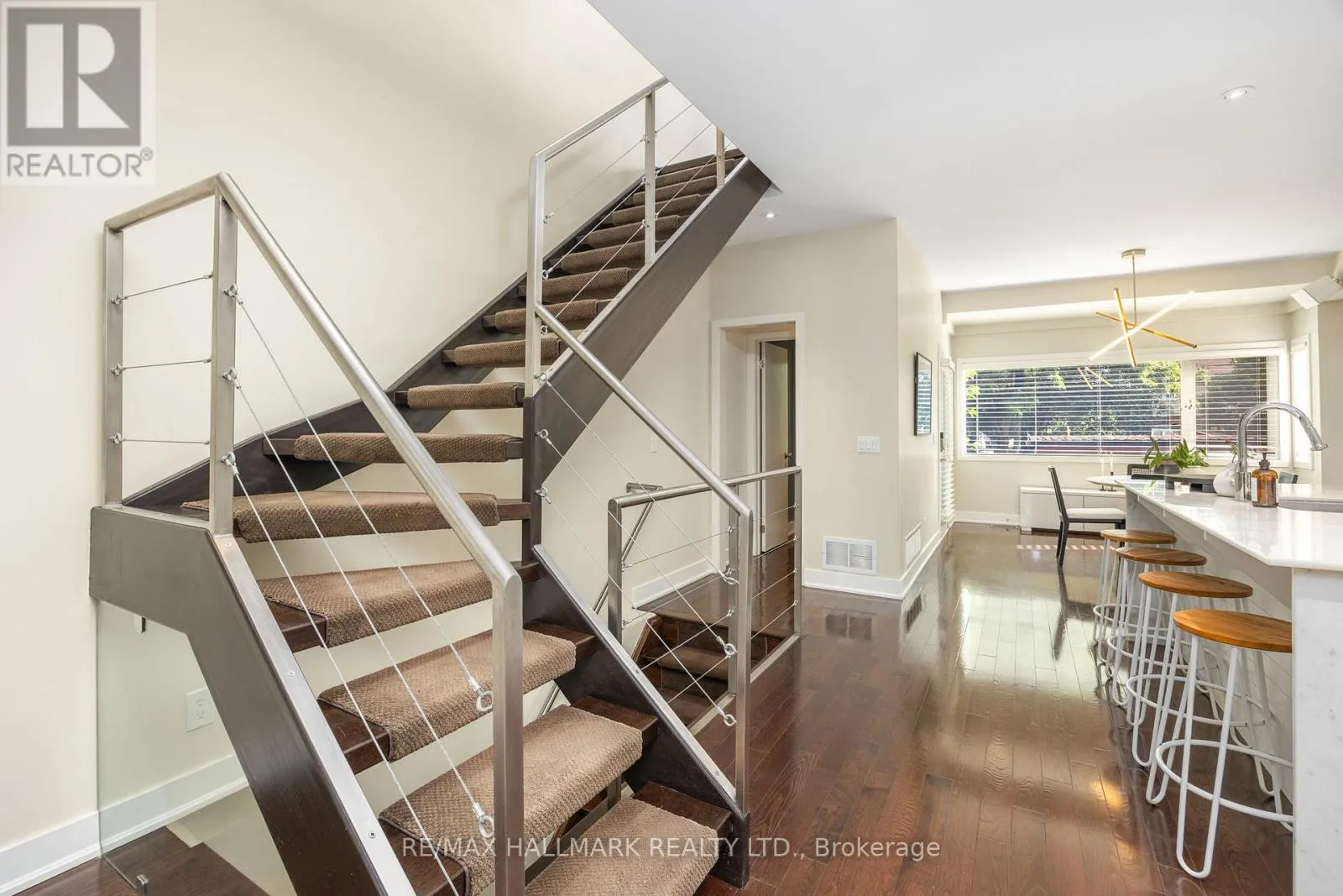 Cross Streets: Broadview Ave / O'Connor Dr. ** Directions: West of Pape Ave. Rarely available modern 2 + 1 bedroom home backing onto the Don Valley ravine. The open concept main floor is filled with natural light from expansive front windows overlooking the trails, creating a seamless connection to nature right outside your door. Upstairs, two spacious bedrooms lead to a private rooftop patio the ultimate spot for entertaining or quiet evenings under the stars. The fully finished basement offers a flexible bedroom/office space with a walkout to the rear laneway and convenient carport parking. A unique opportunity to enjoy urban living with direct access to the Don Valley trail system, parks, and transit, all in a quiet, tucked-away setting. (id:27476)