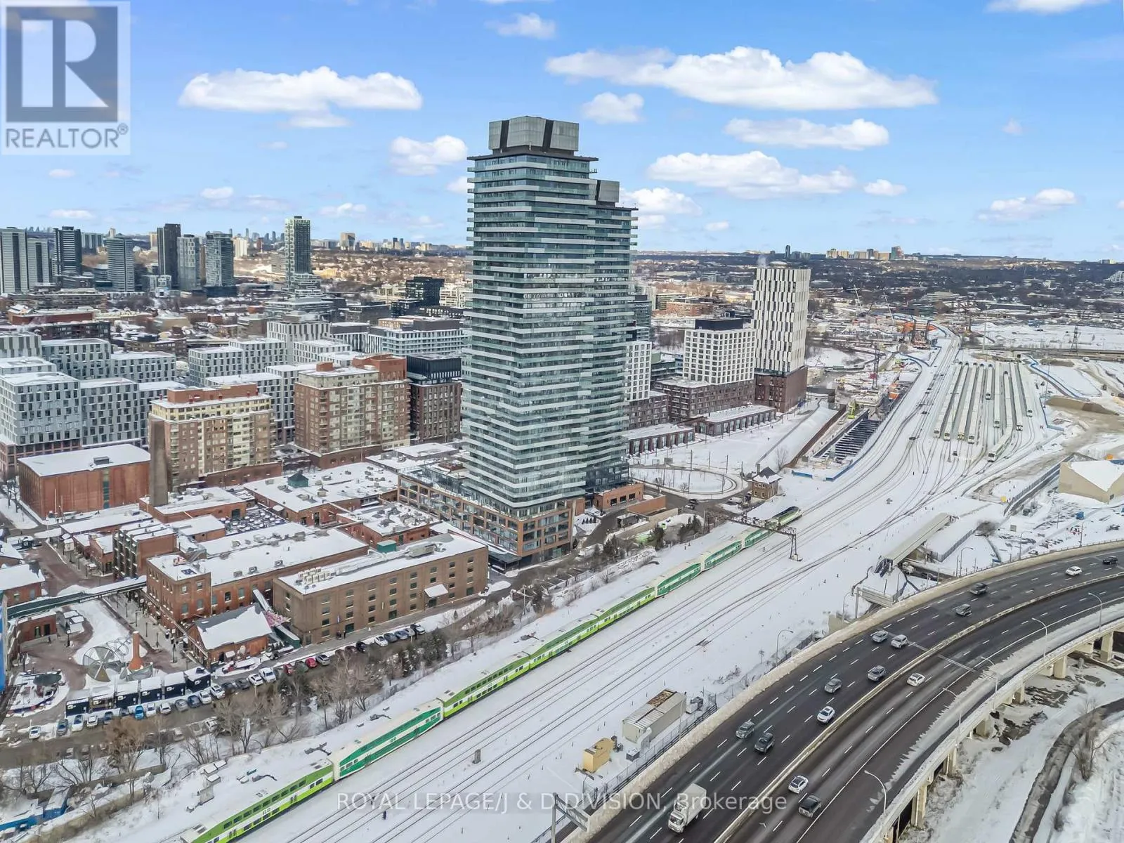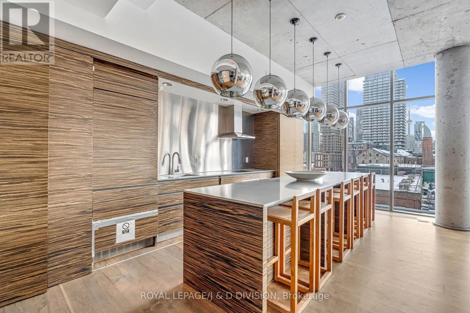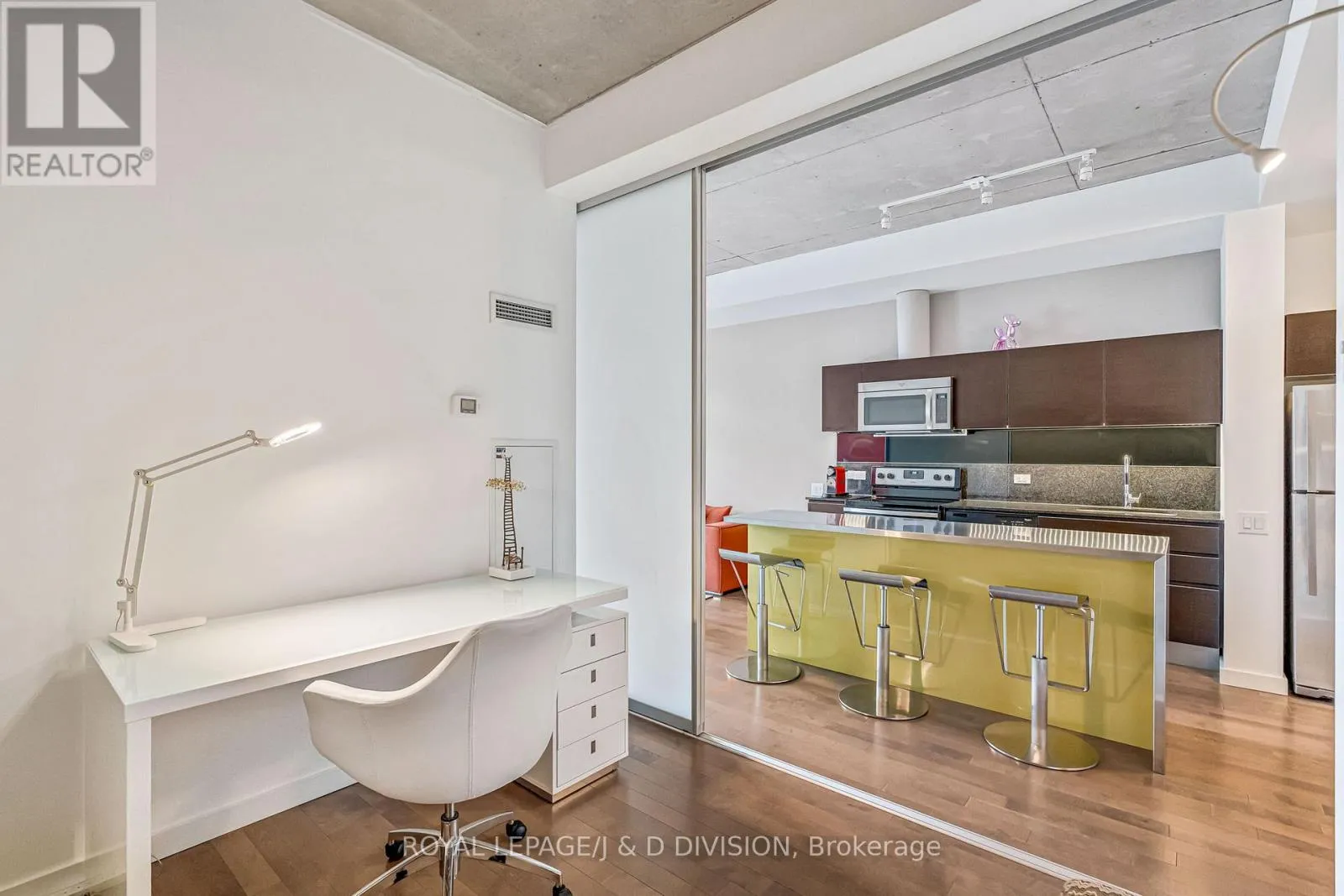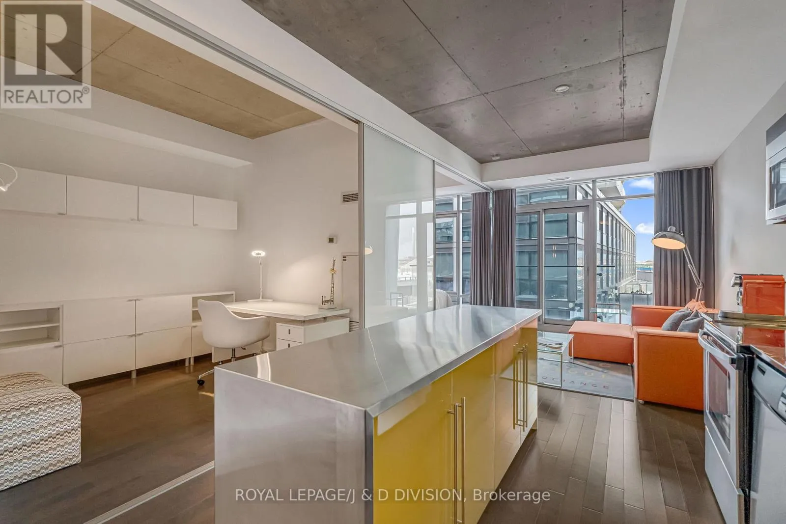 Cross Streets: Cherry Street & Mill St. ** Directions: Visitor Parking via GreenP off Cherry Street. Go direct to 70 Distillery Lobby via GreenP elevator across from ramp. Exceptional one-bedroom plus expansive den 9'4" x 9'1" (ideal as a second/guest bedroom or home office) featuring nearly 10-foot ceilings and pristine, owner-occupied finishes-lightly used as a pied-Ã -terre. Includes one parking space with EV charger and one locker. Thoughtfully designed with an elegant custom kitchen island and breakfast bar, full-size appliances, and a seamless open-concept layout ideal for both everyday living and entertaining. A dramatic wall of floor-to-ceiling windows captures coveted southeast exposure, filling the space with beautiful natural light and offering peaceful, unobstructed views. Generous storage, a large bathroom, and refined finishes throughout complete the home. Set within a prestigious LEED-certified building, residents enjoy an exceptional suite of amenities including an outdoor pool, BBQ pits, guest suite, visitor parking, fully equipped fitness centre, party room, yoga studio, library, and more. Transit at your doorstep and just minutes to downtown, this residence offers an unparalleled blend of sophistication, comfort, and convenience. Great value in the heart of the Distillery District! (id:27476)