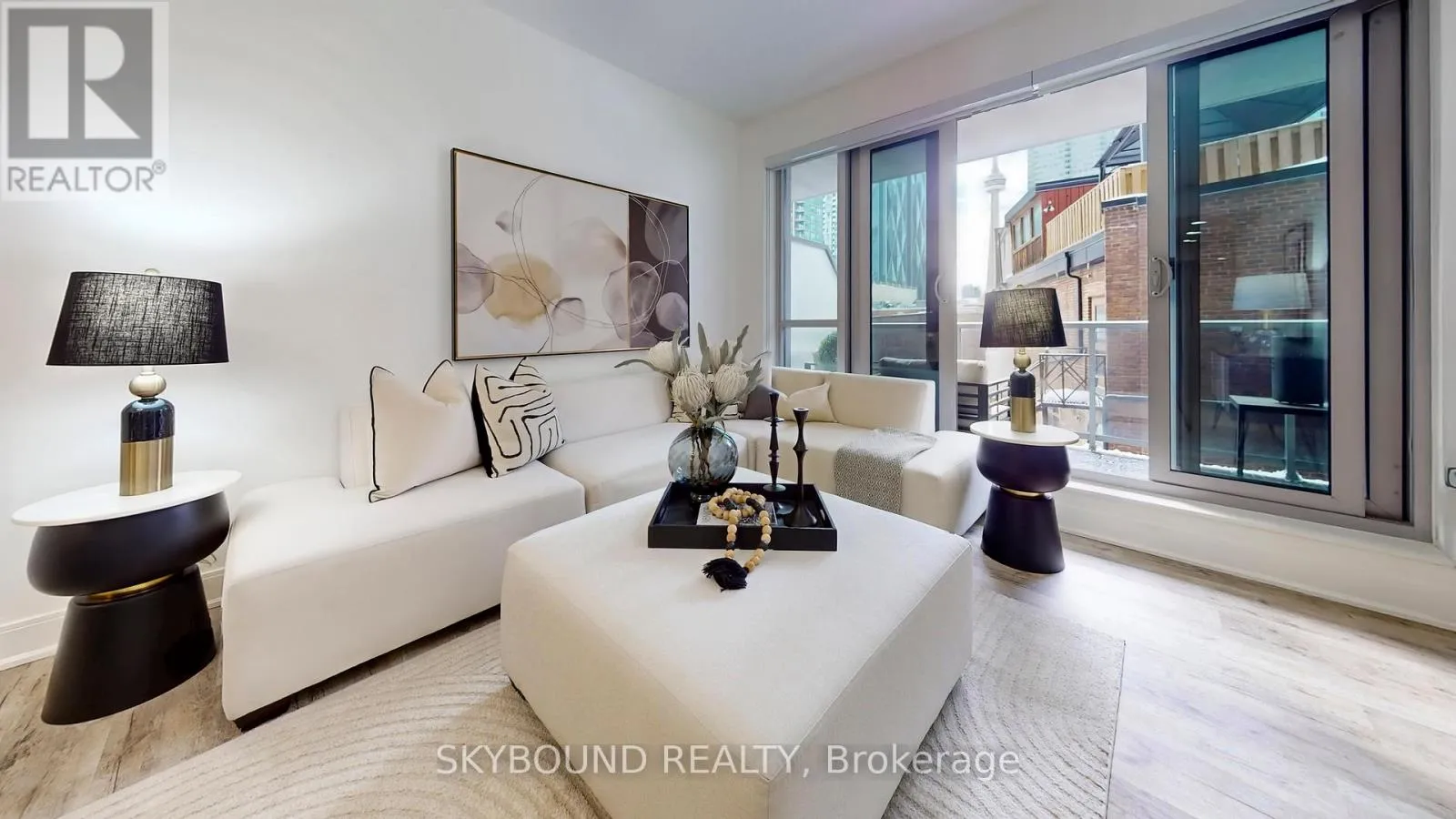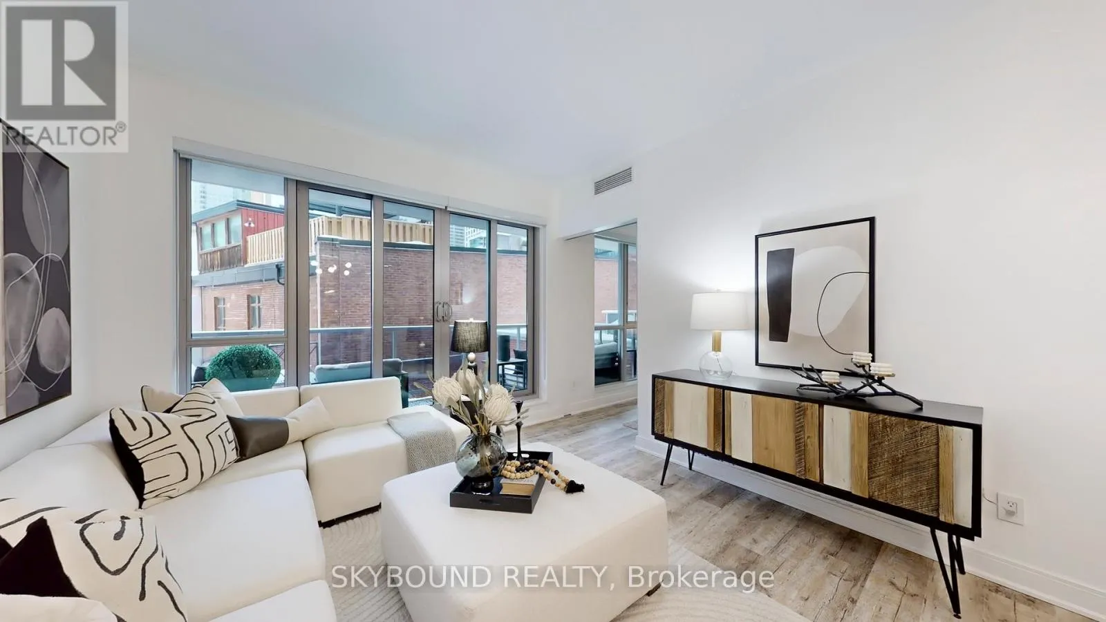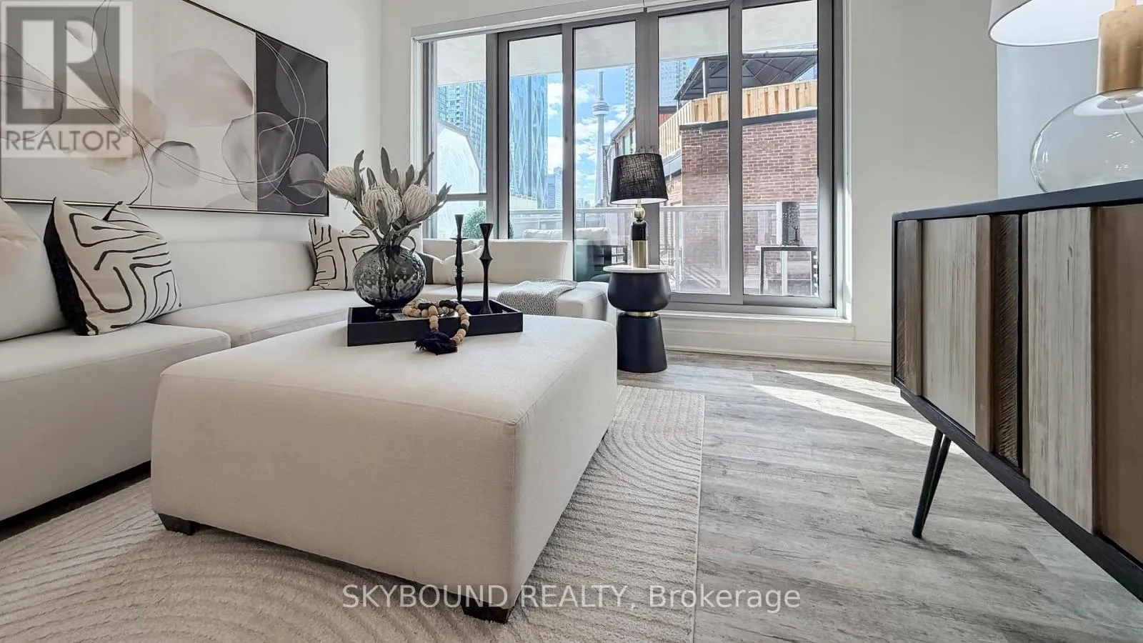 Cross Streets: Front St E and Church St. ** Directions: Hey Google... Welcome to The Berczy! Quintessential boutique luxury living in the heart of the St Lawrence Market neighbourhood. This elegant 2-bedroom/2-bathroom suite is well over 900 sq ft with 9' ceilings plus a deep, West-facing 100 sq ft balcony with city skyline views, situated above the building's private, peaceful courtyard. A serene sanctuary with no street or city noise that you'll forget you're in the heart of one of the most vibrant neighbourhoods in the city. Open concept living and dining perfect for entertaining, a European-inspired kitchen with integrated appliances (paneled Liebherr fridge/freezer, AEG glass cooktop, AEG built-in oven, paneled AEG dishwasher, and built-in microwave), quartz counters, and a large island allows for plenty of counter and storage space. The King-sized primary bedroom features a walk-in closet and a spa-like 5-piece ensuite bath with deep soaker tub and separate glass enclosed shower, plus a large guest bedroom, and an additional 3-piece guest bathroom. Extremely durable and waterproof LVT flooring throughout means your floors will withstand just about anything for years to come. Literally a block to St Lawrence Market, directly across from Berczy Park and the Flatiron building, and mere steps to the Financial District and Union Station, with countless dining and entertainment options at your doorstep. Fantastic building amenities: 24-hr concierge, gym, party room, media room, hot tub, sauna, steam room, roof deck with BBQs, private courtyard, pet wash station, visitor parking, and two guest suites. And very pet friendly! **Includes 1 owned parking space and 1 large storage locker**. Welcome home to one of the most coveted buildings in the city. (id:27476)