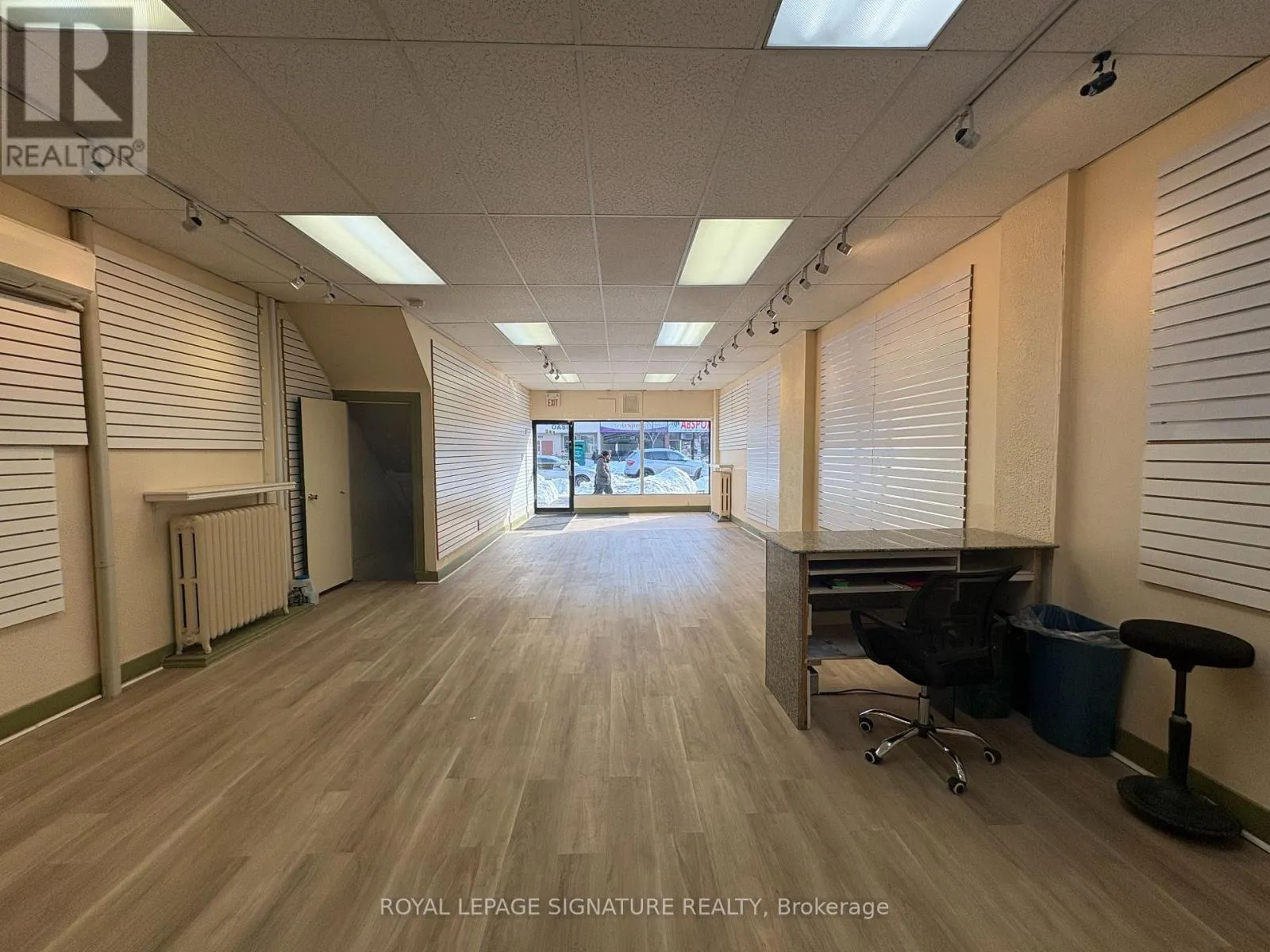 Danforth Ave. & Dewhurst Blvd. Perfect Location For Retail Storefront Business On The Danforth With High Foot Traffic Just Steps From Donlands Subway Station. 830 Square Feet Of Open Retail Space With 900 Sqft Basement Ideal For Storage. 9ft 5in Ceiling Height On Main Floors With Large Window & Generous Southern Natural Light. Upgraded Flooring & Built-In Office With Window Looking Onto The Retail Space. A Great Blank Canvas For You To Add Your Touch Within A Thriving Community. One Private Parking Space At The Back With Direct Access To Basement Or Store Level, Perfect To Unload Supplies With Ease. Away From Construction Of Pape Subway Which Brings More People To Use Donlands Station. Suitable For Many Uses (Studio, Clinic, Fashion Boutique, Furniture, Gallery, Artisanal Shops, Health & Wellness And Office Use, Retail, etc). Open To Food Prep, Selling Cooked Food or Baked Goods But No Vents Or Cooking On Site. No Marijuana, Mushroom or Vaping Businesses. No Pawn Shops or Payday Loans. (id:27476)
