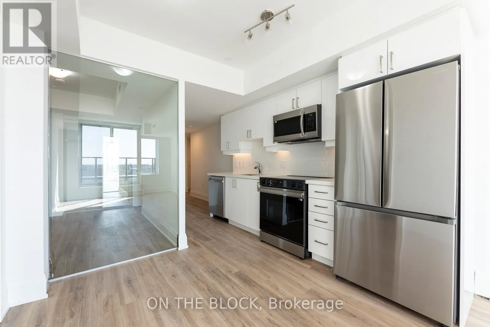 Marlee Ave/Glencarin Welcome home to this bright, modern residence featuring an open-concept layout, contemporary finishes, and abundant natural light throughout. The sleek kitchen offers stainless steel appliances, quartz countertops, white cabinetry, and a subway tile backsplash, seamlessly flowing into the airy living space. Enjoy in-suite laundry, a spa-inspired bathroom, and a spacious bedroom with mirrored closet. Step out onto your private balcony to relax and unwind. Move-in ready and ideal for stylish, low-maintenance urban living. (id:27476)